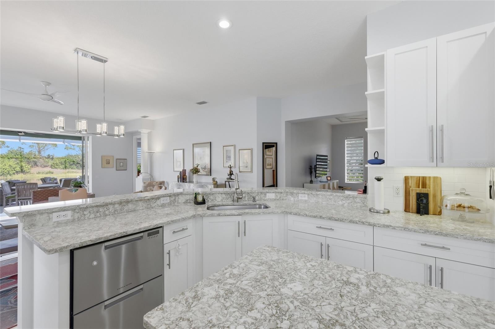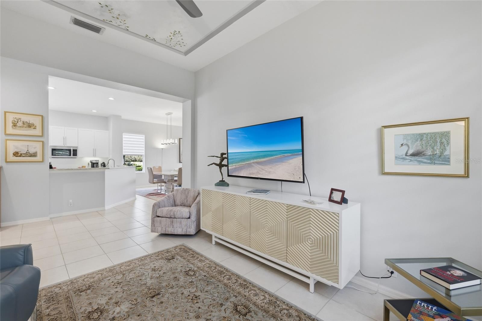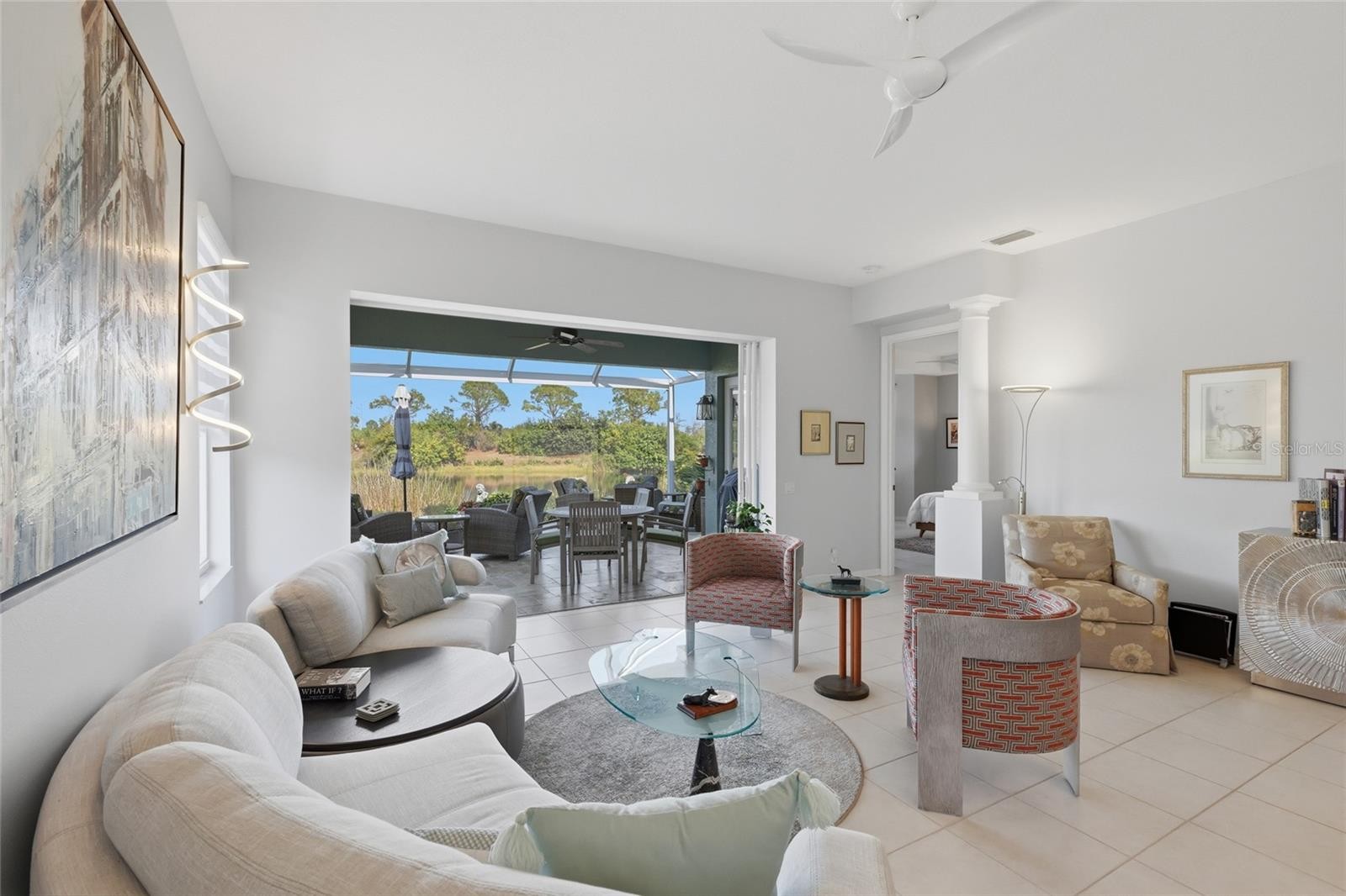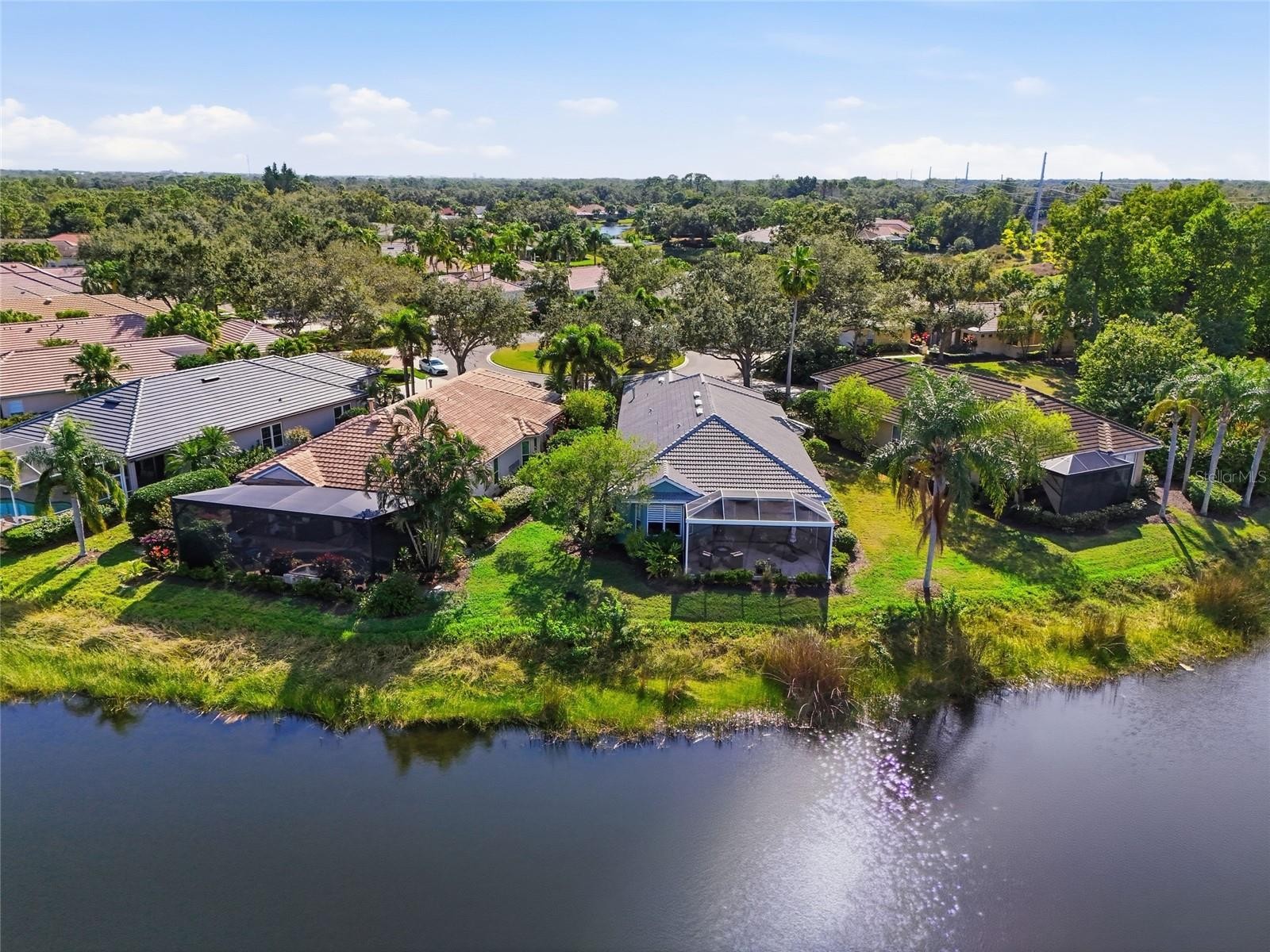 THIS IS A BEAUTIFULLY UPDATED HOME! POINT LAKEFRONT HOMESITE WITH A FABULOUS LAKE VIEW! Upon entering the impressive gates of University Park, with mature trees lining The Park Blvd., it’s clear this is a special community. Tucked away on the cul-de-sac in the Notting Hill neighborhood, this floor plan is designed to showcase sweeping lake views from the kitchen, great room, and primary bedroom. Professional landscaping and custom paver driveway enhance this homes front elevation! The 2-bedroom, 2-bath home includes a separate dining room, den with French doors, tile throughout. Upgraded high end light fixtures! The updated chef's kitchen features quartz countertops, new stainless steel appliances including a 6 burner natural gas range, double oven, Fisher Paykel double drawer dishwasher, high end cafe refrigerator, refreshed cabinetry, and a cozy breakfast nook. The spacious primary suite offers dual walk-in closets and a well-appointed bath with a walk in shower and very relaxing air soaking tub. An extended, screened lanai with picture windows screening overlooks the pond, creating an ideal space to relax or entertain. The lanai has beautiful travertine flooring. Two car garage with an epoxy coated floor. THE ROOF IS JUST 4 YEARS OLD! Notting Hill is a grounds maintenance free neighborhood. The community pool is conveniently located just a few minutes walk from this special home. Please note that there is a rear entrance to University Park Country Club close to the Notting Hill neighborhood giving its residents excellent driving access to UTC Mall, Whole Foods, and fabulous restaurants!