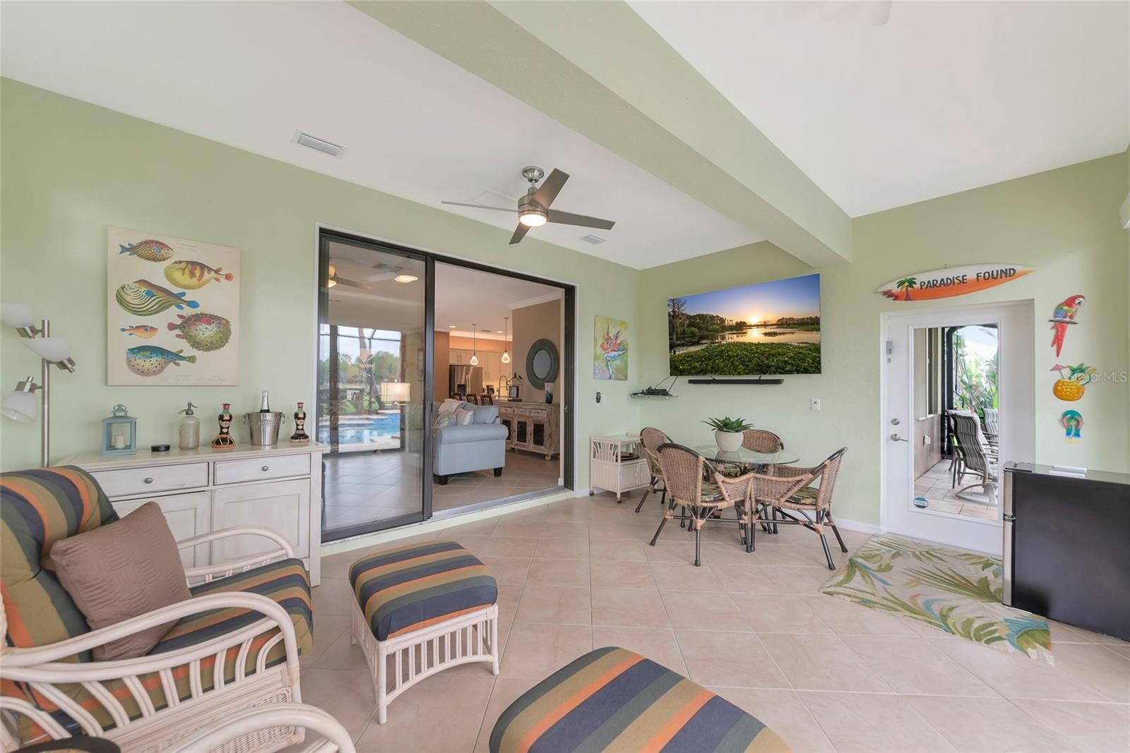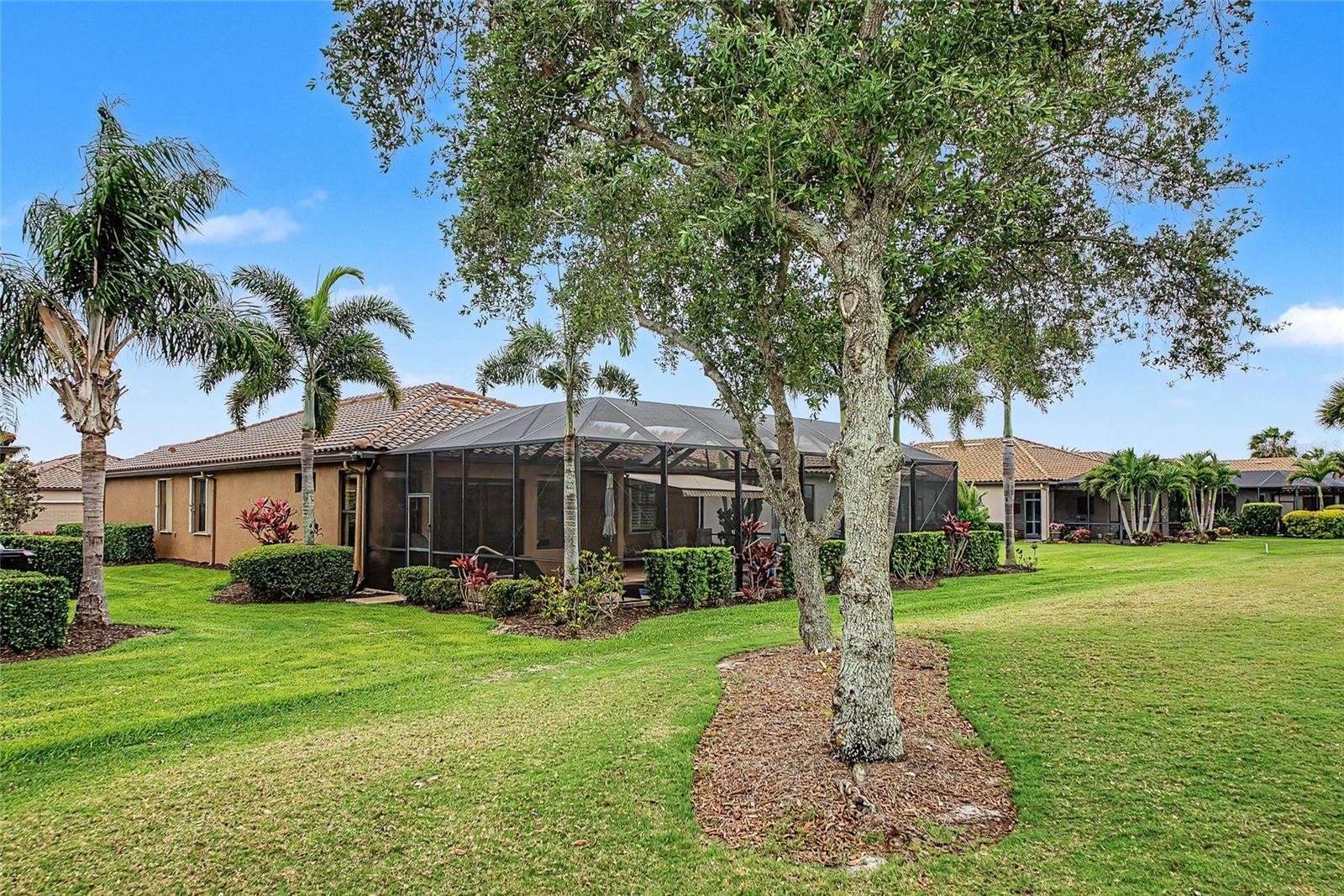 This updated and one of a kind TREVI model pool home offers 4 bedrooms, 3 bathrooms PLUS a glass enclosed Florida Room for a total of 2,272 SQ. FT. OF LIVING SPACE. Perfectly positioned on a premium homesite with tranquil pond & golf course views overlooking the Sanctuary 1st hole, this property delivers the ideal Florida lifestyle. The stunning 14’ x 19’ air-conditioned Florida Room with hurricane-resistant glass windows expands the living space and provides year-round enjoyment. The construction is seamlessly integrated, enhancing the natural design of the home creating a cohesive look throughout. The fully renovated kitchen (2022) features quartz countertops, white cabinetry, tile backsplash, pendant lighting, & stainless-steel appliances including a convection oven with air fryer. Thoughtful upgrades such as under & above cabinet lighting, a glass pantry door & newer ( 2023 ) appliances add both elegance and functionality. The primary & one guest bedroom are ensuites, with full baths that have been updated with quartz countertops, upgraded sinks, modern fixtures & white cabinetry. Step outside to your private heated saltwater pool and spa (2021) with water feature, oversized screened pool enclosure with upgraded No-See-Um screens, and patio lighting—perfect for entertaining or relaxing while enjoying peaceful golf course views. A SunPro electric retractable awning with integrated lighting and side screen provide additional comfort and shade and a warm, inviting ambiance for entertaining and outdoor dining. Additional upgrades buyers love include:• New HVAC system (2023) with 10-year parts and labor warranted to 2033• 50-gallon hot water heater (2025) parts warranted to 2033• Luxury vinyl plank flooring in 3 bedrooms (2022) and Wood Flooring in the 4th bedroom • Tile flooring throughout main living areas• Hurricane accordion shutters for ease of close and storm protection• Whole-house surge protector• Expanded paver driveway and entry walkway• Seven ceiling fans throughout the home4 Kitchen appliances are warranted to 2028Air Conditioner parts and labor warranted to 2033Hot Water Heater parts warranted to 2033. The home also offers excellent storage, including added shelving in closets, with a mount for jewelry hanging, laundry room storage cabinets, and overhead garage storage, features buyers consistently search for. Professionally landscaped with mature palm trees in the front of the house & surrounding the pool enclosure & widened gutters shows pride of ownership. River Strand is a guard gated community with 24-hour roving security detail. The Social Membership provides access to two resort pools and 6 satellite pools, 2 fitness centers, 9 tennis courts, 8 pickleball courts, the community room and an impressive library. The newly unveiled multi-million-dollar clubhouse & spectacular terrace pool & patio have been completely reimagined to deliver an experience that rivals private resorts. Enjoy two full-service kitchens, an expansive indoor bar and a vibrant outdoor bar with multiple TVs—perfect for game days and lively gatherings. The refreshed resort pool and lazy river create a true staycation atmosphere, where every day feels like a vacation. Social members can play golf on a pay per play basis when tee times are available. Move-in ready, upgraded, and perfectly located with golf course & water views, this exceptional home is ideal as a primary residence, seasonal retreat, or investment property.
