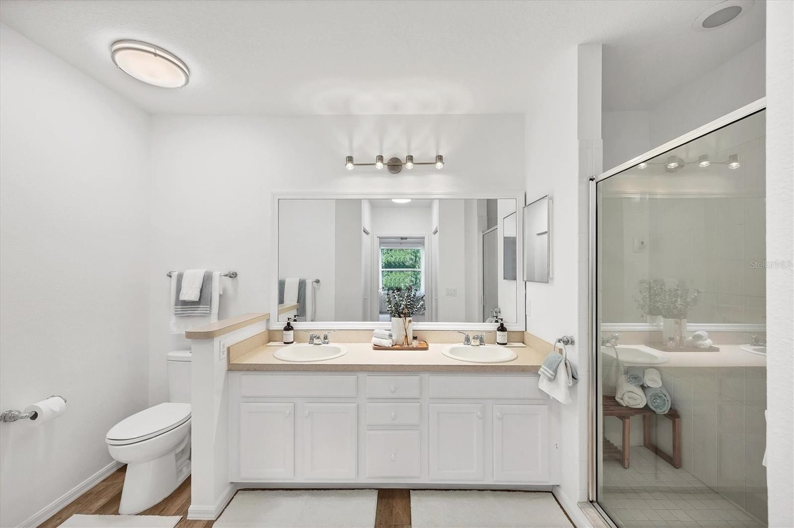 This beautiful condo delivers style and comfort at an unbeatable value! Enjoy your best Florida lifestyle in this beautifully updated 2 bed/2 bath second-floor condo in Boca Grove, located behind the gates of the Lakewood Ranch Golf & Country Club. This home offers a private wooded backdrop with peaceful glimpses of the Legacy Golf Course from the spacious lanai, where you can often spot native Florida birds and even the occasional deer family. Inside, the bright and airy open floor plan features vaulted ceilings and wood-look tile flooring throughout with no carpet. The remodeled kitchen is a chef’s delight with contemporary cabinetry, quartz counters, stainless appliances, a breakfast bar, and a cozy breakfast nook. The Master suite includes a tray ceiling, two walk-in closets with custom built-ins, and an updated en-suite bath with double vanities and a large walk-in shower. The guest bedroom at the front of the home offers its own private en-suite bath, ideal for visitors. A detached 1-car garage provides parking and excellent storage. Recent improvements include new A/C (2020) and hurricane-impact windows (2020). NEW ROOFS ARE BEING INSTALLED AT THIS TIME AND THE ASSESSMENT WILL BE PAID BY THE SELLER. A golf membership is not required, but social, athletic, and golf memberships are available through Lakewood Ranch Golf & Country Club. Boca Grove amenities include a heated pool and spa and a clubhouse just steps away. The location is exceptional—minutes from Lakewood Ranch Main Street, Waterside Place, Center Point, UTC, Benderson Park, and the brand-new Mote SEA Aquarium, with easy access to I-75, medical facilities, top-rated schools, and award-winning Gulf Coast beaches.