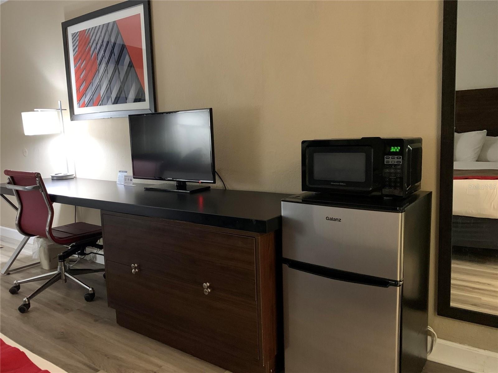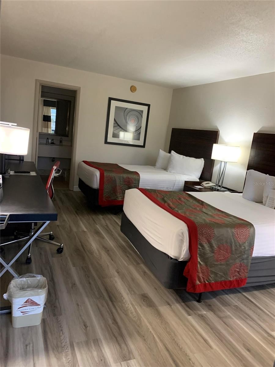 Top-floor unit in the waterfront condo-hotel at the Ramada by Wyndham Sarasota Waterfront, ideally positioned in a quieter area of the building away from pool, restaurant, and marina traffic. Enjoy added privacy, minimal foot traffic, and no upstairs noise to enhance increased long term appeal. This unit performed well during recent storms, offering added peace of mind compared to some lower-level units. Offered turn-key furnished with updated flooring and newer A/C-heat wall unit. While not recently remodeled, it is priced accordingly—providing an excellent opportunity for buyers or investors to customize and add value. Located just minutes from SRQ airport, downtown Sarasota, and Gulf beaches. Community amenities include waterfront setting, pool, on-site dining, fitness center, business center, and flexible rental options. Aggressively priced below renovated units—one of the lowest-priced opportunities currently available in the building. Strong value for investors or buyers seeking a low entry point into the Sarasota market.