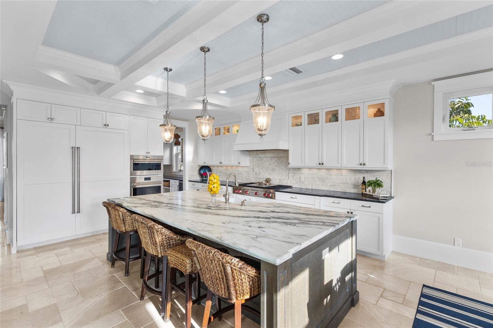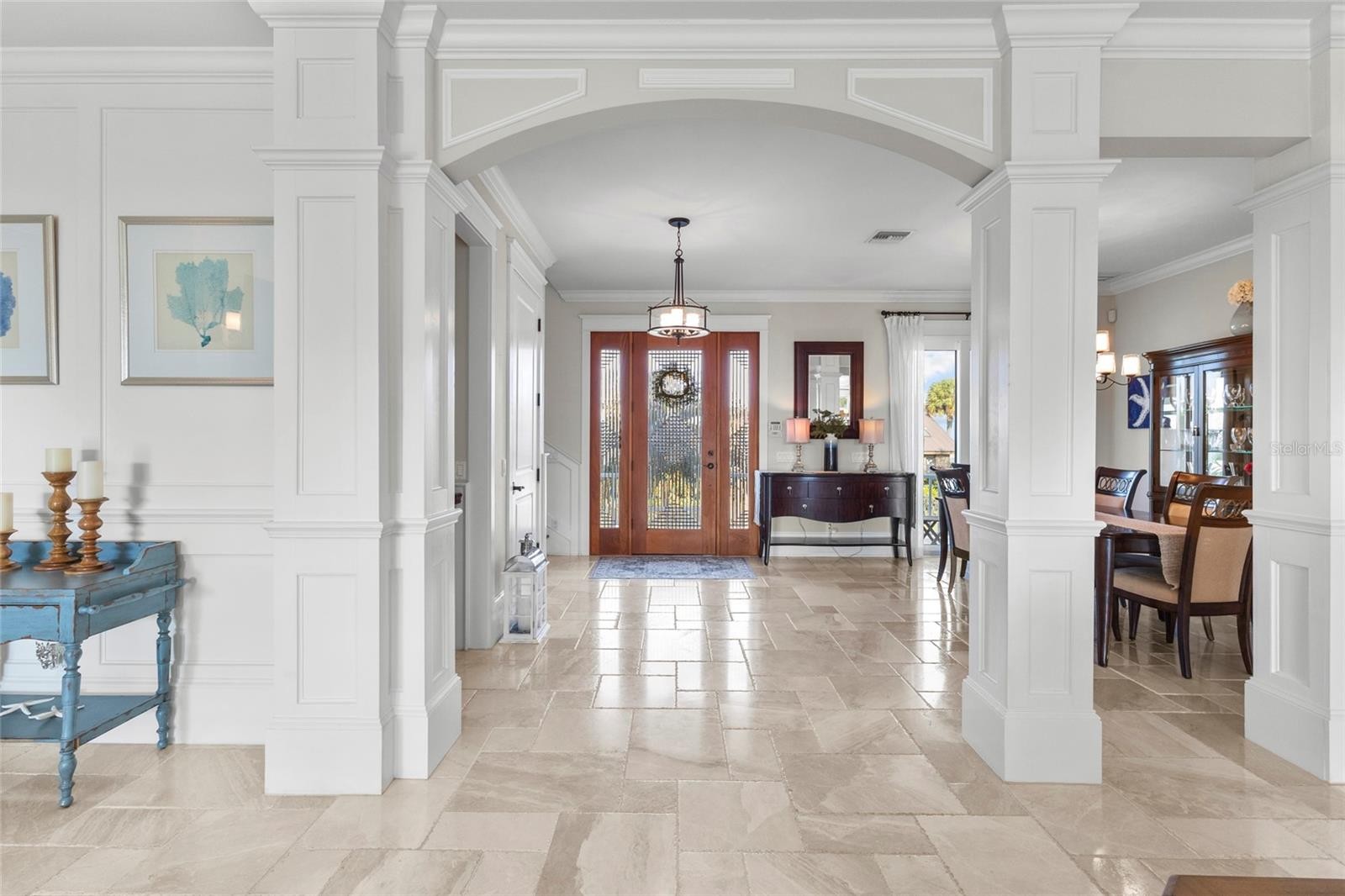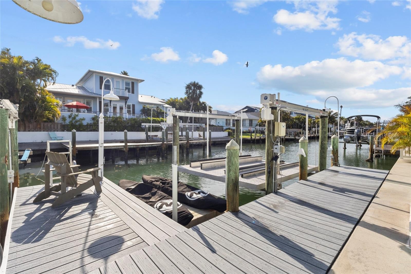 Elevated living, literally and figuratively. Over 6000 sq/ft of spacious indoor/outdoor accommodation, island breezes, top-notch finishes, nestled into a quiet neighborhood. It’s the best of everything on Anna Maria Island. The home, custom built by one of the island's most prominent builders, is loaded with options you’ll love. Travertine and high-end hardwood flooring in living areas and bedrooms, marble counters in the kitchen, and craftsman's trim catches the eye everywhere else. Like to cook? You’ll be doing it on Wolf and Thermador appliances. Like to cook outdoors? Exit the main living area of the home through hurricane impact sliders and onto the balcony where you’ll find a gas grill and pizza oven. There, you can watch manatees and other wildlife with big views of the backyard and canal. That canal, only a 3 minute boat ride to Tampa Bay and beyond. The dock and lift is plenty capable for any size vessel you have, or just a simple dip with kayaks or paddle boards. All 3 levels of the home, usable, spacious, private, aesthetically pleasing. The pool deck is resort-like, with sun-shelf, spa, fire pit, and covered entertaining space. More? You have a community pool and tennis/pickleball court as well. The landscaping is immaculate, the location is prime, and the home has ample storage on each level. An elegant fortress, high and dry, and battle tested. Furnished options available.