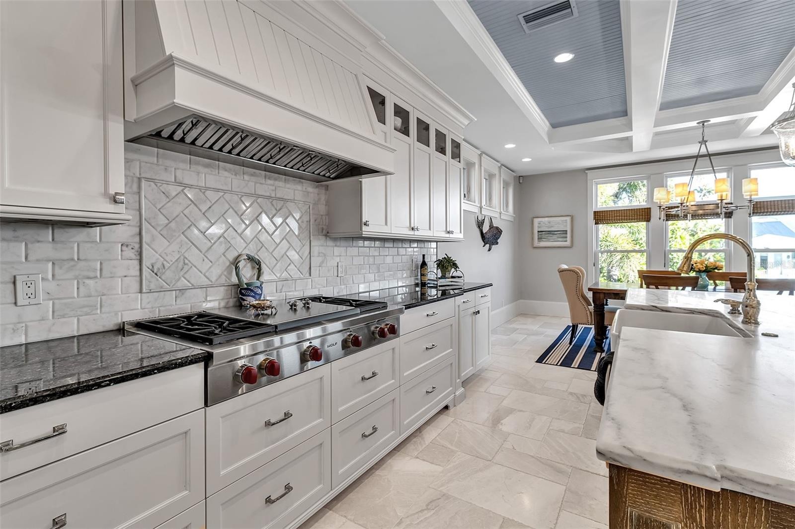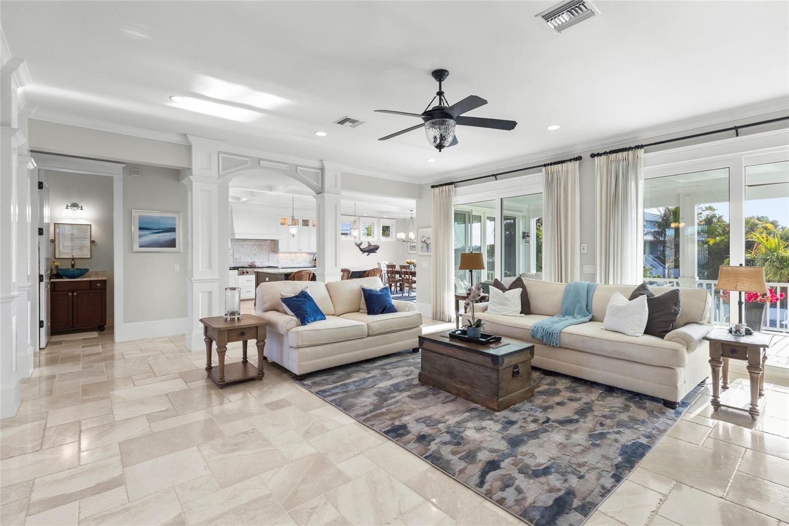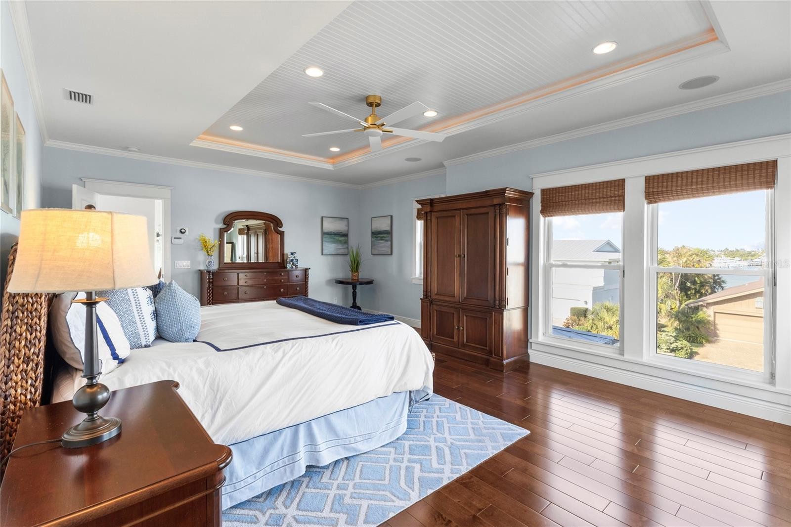 Elevated living, literally and figuratively. Over 6000 sq/ft of spacious indoor/outdoor accommodation, island breezes, top-notch finishes, nestled into a quiet neighborhood. It’s the best of everything on Anna Maria Island. The home, custom built by one of the island's most prominent builders, is loaded with options you’ll love. Travertine and high-end hardwood flooring in living areas and bedrooms, marble counters in the kitchen, and craftsman's trim catches the eye everywhere else. Like to cook? You’ll be doing it on Wolf and Thermador appliances. Like to cook outdoors? Exit the main living area of the home through hurricane impact sliders and onto the balcony where you’ll find a gas grill and pizza oven. There, you can watch manatees and other wildlife with big views of the backyard and canal. That canal, only a 3 minute boat ride to Tampa Bay and beyond. The dock and lift is plenty capable for any size vessel you have, or just a simple dip with kayaks or paddle boards. All 3 levels of the home, usable, spacious, private, aesthetically pleasing. The pool deck is resort-like, with sun-shelf, spa, fire pit, and covered entertaining space. More? You have a community pool and tennis/pickleball court as well. The landscaping is immaculate, the location is prime, and the home has ample storage on each level. An elegant fortress, high and dry, and battle tested. Furnished options available.