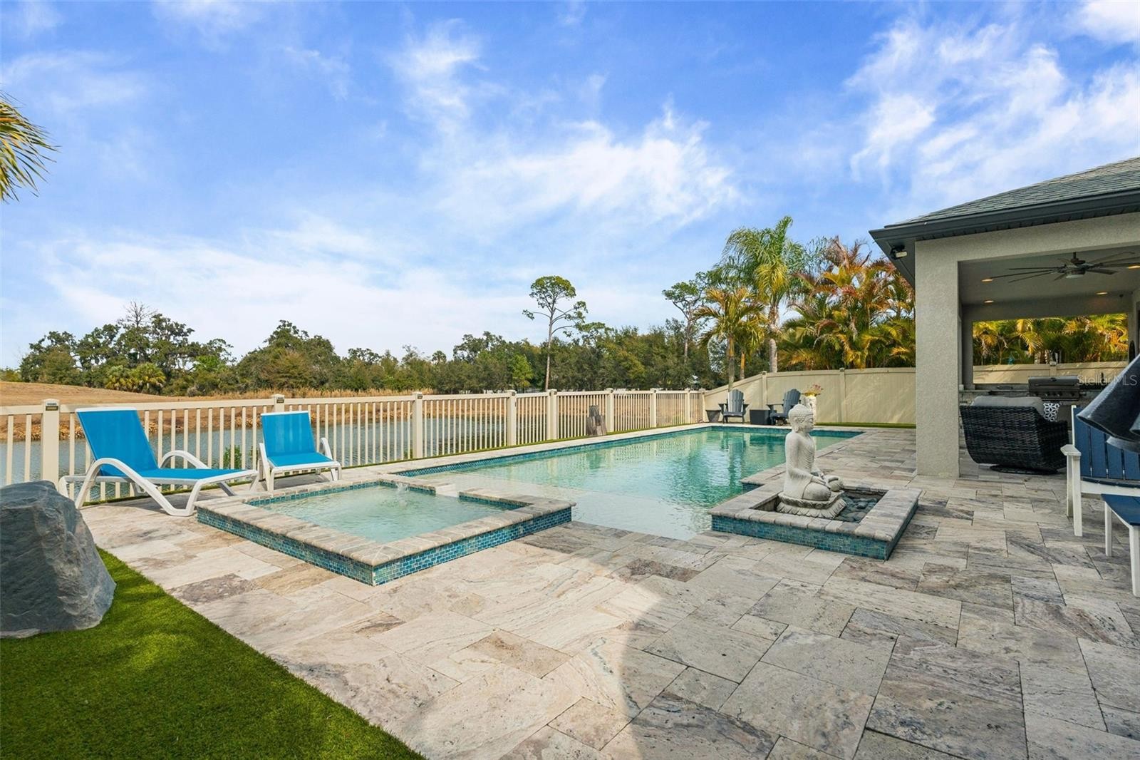 Welcome to 719 129th Street NE, a beautifully upgraded six-bedroom residence offering exceptional value in one of East Manatee’s most desirable and quaint neighborhoods. If you are considering new construction, this home delivers the finished product without the wait, the stress, or the added expense—most notably, there is no CDD fee, which represents a significant long-term savings advantage over many newly built communities. This thoughtfully designed home features luxury vinyl flooring in all bedrooms, with carpet only in the spacious bonus/game room, and custom upgraded closets throughout for optimal organization and storage. The den functions perfectly as a sixth bedroom, providing flexibility for guests, multigenerational living, or a private office. The gorgeous kitchen offers abundant cabinetry and storage, ideal for both daily living and entertaining, while the beautiful den and open living areas create a comfortable yet refined atmosphere. Outdoor living is elevated with a custom outdoor kitchen, backyard turf for low-maintenance enjoyment, and a heated saltwater pool and spa overlooking a scenic pond. While the pond is not private, the setting offers a tranquil backdrop and a sense of openness that enhances the overall appeal. The three-car garage is air-conditioned with insulated garage doors, creating an ideal space for hobbies, storage, or vehicle protection. Additional optional inclusions may include a four-person barrel sauna and a cold plunge, further enhancing the home’s lifestyle appeal. The property is equipped with a solar panel system through FPL that can be assumed by the new owners, with flexible options available. Located in a small, charming neighborhood known for its welcoming feel, this home represents a rare opportunity to enjoy a fully upgraded, move-in-ready property without the added costs and construction timelines associated with building new—especially without a CDD fee. Schedule your private tour today!