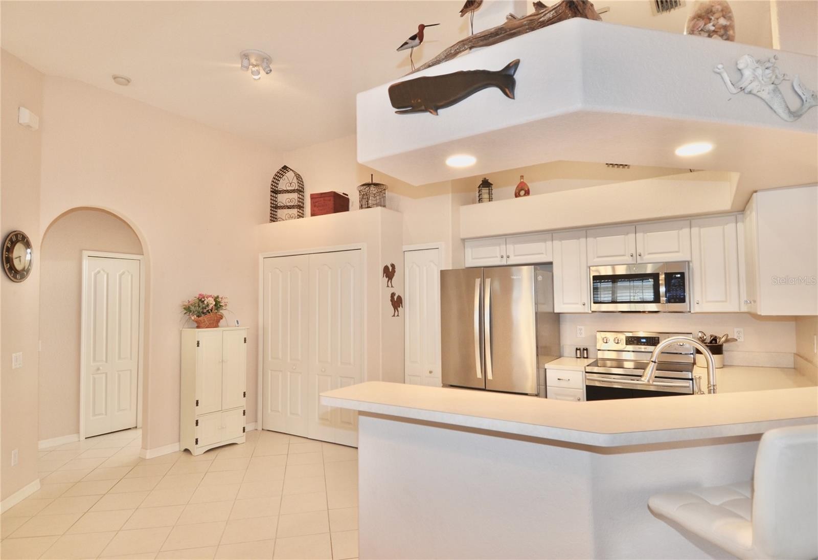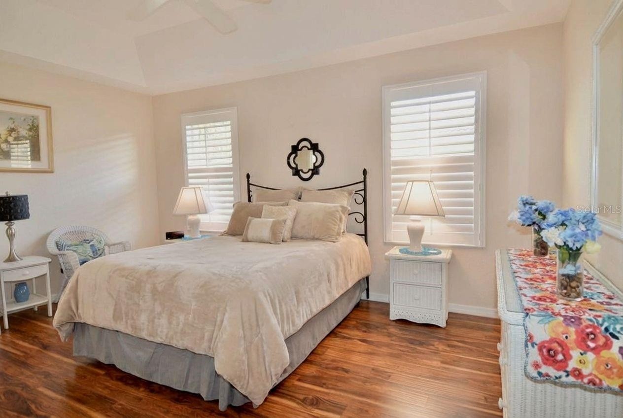 One or more photo(s) has been virtually staged. Welcome to this well-maintained 2 bed, 2 bath second floor condominium offering 1,148 square feet of open-concept living in a convenient Venice setting. From the moment you arrive, you’ll appreciate the covered front entry balcony porch, an inviting spot to enjoy fresh air before stepping inside. The living and dining spaces flow easily together under cathedral ceilings, creating an airy feel that lives larger than the square footage. Plantation shutters add a crisp, finished look while helping you dial in the natural light. The kitchen is designed for function and flow, featuring stainless steel appliances, recessed lighting, a pantry closet, ample cabinetry, and breakfast bar seating, ideal for casual dining and easy entertaining. The open layout supports a comfortable everyday lifestyle while keeping the main gathering areas connected. Both bedrooms are comfortably sized and feature walk-in closets, giving you the storage you want without sacrificing space. A convenient laundry closet keeps daily routines organized and out of sight. The layout offers two full baths, making it easy to share the space and keep mornings moving. This condo also comes with a separate single-space garage, a valuable bonus for parking, storage, or keeping beach and golf gear tucked away. As part of the L Pavia Condos, residents enjoy access to a community pool and clubhouse, great for relaxing, meeting neighbors, or cooling off on warm Florida days. The location is a major benefit, with close proximity to shopping, restaurants, grocery stores, golf courses, parks, I-75, Venice Island, Historic Downtown Venice, and Gulf beaches. This is an excellent opportunity to own a clean, well-appointed condo with practical upgrades, community amenities, and easy access to many of Venice’s most popular destinations.