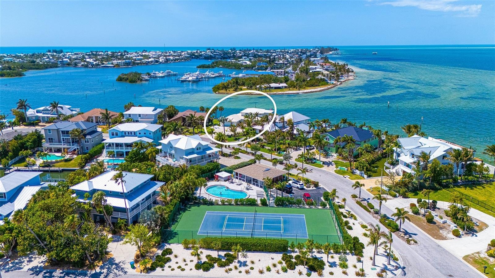 Set within the desirable North Point Harbour enclave of Key Royale in Holmes Beach, this impeccably reimagined waterfront residence captures the essence of coastal living, where clean architectural lines, curated interiors, and uninterrupted water vistas converge. From the moment you enter, every space is thoughtfully oriented to frame expansive views of Bimini Bay and Tampa Bay, creating a dynamic yet tranquil backdrop that evolves throughout the day, from soft morning reflections to vivid Gulf Coast sunsets. Updates include hurricane windows and sliding glass doors, new roof, wood look tile throughout, new composite dock and 20,000# lift. The floor plan is thoughtfully designed to balance privacy with hospitality, anchored by two primary suites, offering exceptional flexibility for hosting guests or extended stays. The main-level suite provides convenience and accessibility, while the upper-level primary and additional bedrooms create a quiet retreat with elevated water views. At the heart of the home, a statement kitchen serves as both a culinary showpiece and social hub. Outfitted with a Monogram refrigerator and gas range, the space is complemented by an expansive island with seating for six. Multiple wine refrigerators are thoughtfully integrated, elevating the entertaining experience and seamlessly connecting to the dining and living areas. Beyond the interiors, the home extends into an exceptional waterfront lifestyle. A newly constructed dock with a 20,000-pound lift caters to serious boating enthusiasts, while the property offers ample space to design a custom poolscape tailored to your vision. The oversized two-car garage offers generous additional storage, ideal for a golf cart, beach essentials, bicycles, and coastal lifestyle gear. Directly across the street, residents enjoy convenient access to North Point Harbour's heated pool, as well as a tennis and pickleball court adding an additional layer of resort-style living just steps from your front door. Residents enjoy the close proximity to the sugar-white sand beaches of Anna Maria Island, the restaurants, art galleries and shops in Holmes Beach. Other nearby amenities include dog park, public tennis/pickleball courts, basketball, skate park, library and soccer fields. Ideally positioned just moments from the fairways of Key Royale Golf Club’s private par-32, nine-hole course, optional membership provides access to golf, dining, and a vibrant social scene. Downtown Bradenton, Sarasota, SRQ Airport, Tampa Airport and St. Pete/Clearwater Airports are all within an hour drive away. Residents and visitors appreciate all the opportunities to enjoy the theatre, art fairs, farmers markets, concerts, boating, fishing and shopping that is convenient for the Florida lifestyle. This is more than a home. It is a lifestyle of relaxed coastal luxury, effortless entertaining, and a constant connection to the water on Anna Maria Island. BEAUTIFUL FURNISHINGS OF THIS HOME ARE NEGOTIABLE.