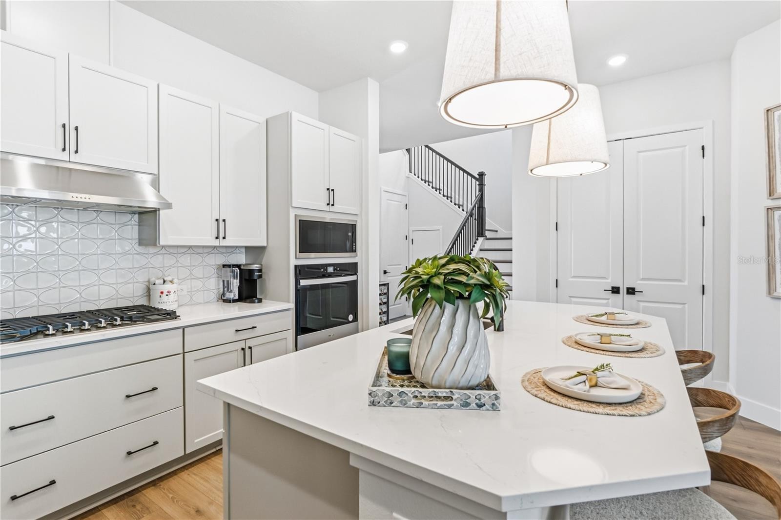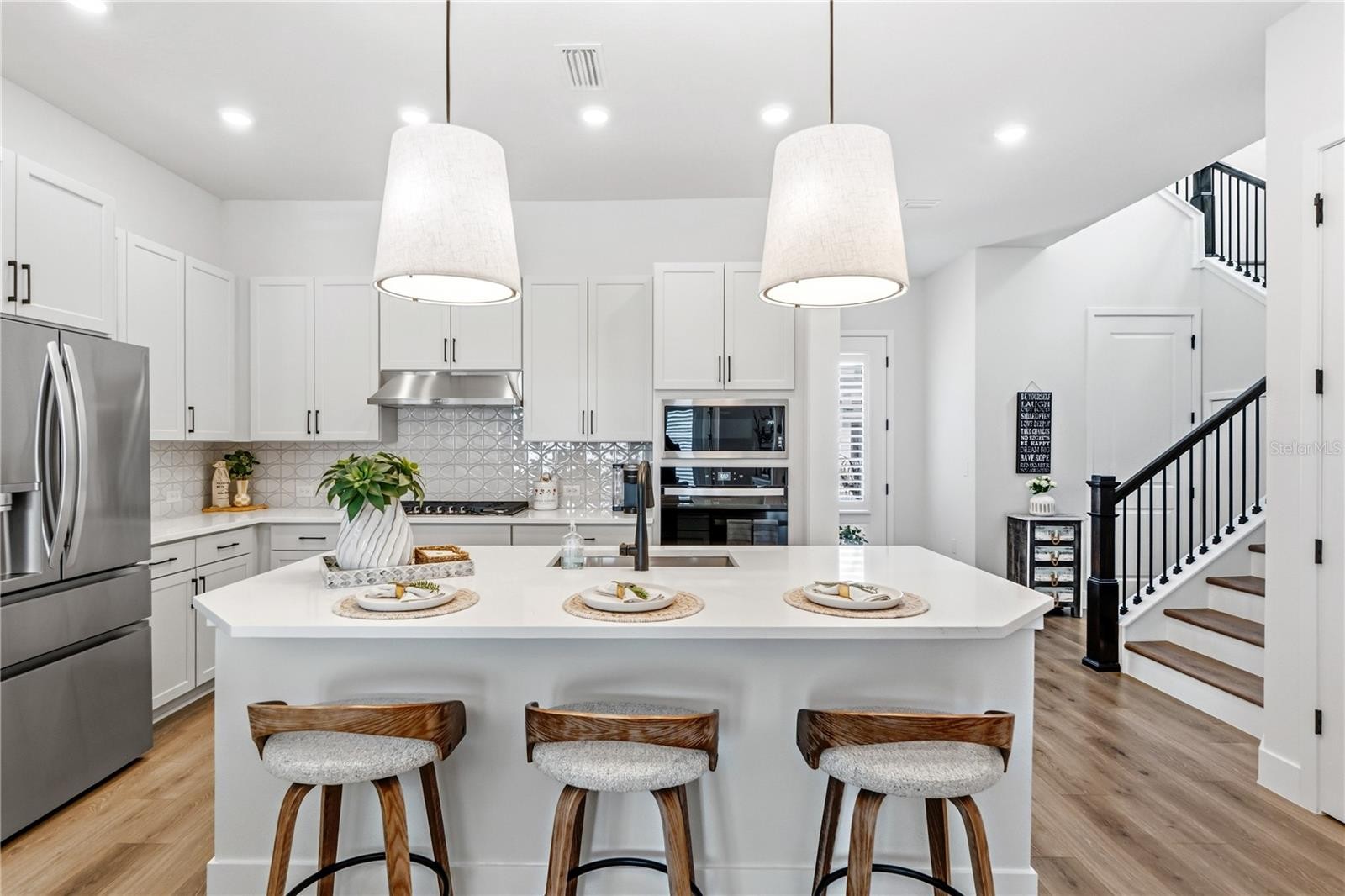 Located in the heart of the vibrant Waterside district of Lakewood Ranch, this stunning home in Emerald Landing at Waterside offers the perfect blend of luxury living and unbeatable access to everything happening nearby. Just moments from the shops, restaurants, events, and waterfront atmosphere of Waterside Place, this home is ideal for buyers who want to enjoy a walkable lifestyle while still retreating to a beautifully designed private residence. Built by David Weekley Homes, the popular Bullhead floor plan offers 3 bedrooms, 2.5 bathrooms, a dedicated study, and an expansive upstairs loft across more than 2,200 square feet of thoughtfully designed living space. The soaring 12-foot ceilings in the main living area create an open, airy feel filled with natural light. Just off the entry, a private study with French doors provides the perfect home office or library. At the center of the home, the designer kitchen shines with a gas cooktop, under-cabinet hood, built-in microwave and oven, and an open layout that flows seamlessly into the living and dining spaces—ideal for both entertaining and everyday living. The first-floor Owner’s Retreat offers a peaceful escape with a spa-like bathroom featuring a freestanding soaking tub and a custom-organized walk-in closet. Upstairs, two additional bedrooms share a full bath alongside a spacious loft that works beautifully as a second living area, workspace, or flexible bonus room. Outdoor living is just as inviting with a charming front porch and a rear paver patio perfect for relaxing or entertaining. A rear-loading oversized two-car garage includes epoxy flooring, built-in cabinetry, overhead storage racks, and ample organization. Throughout the home, thoughtful upgrades elevate the space, including designer lighting, plantation shutters, custom closet and pantry systems, and impact glass for added peace of mind. Residents of Emerald Landing enjoy exclusive community amenities, including a resort-style pool, clubhouse, pickleball courts, dog park, and a unique water taxi that departs from the community dock to Waterside Place—home to the renowned Waterside Place Farmers Market every Sunday. If you’re looking for a home that offers luxury finishes, low-maintenance living, and the ability to walk, bike, or boat to the best dining, shopping, and events in Waterside, this one is a must-see. Schedule your private showing today.
