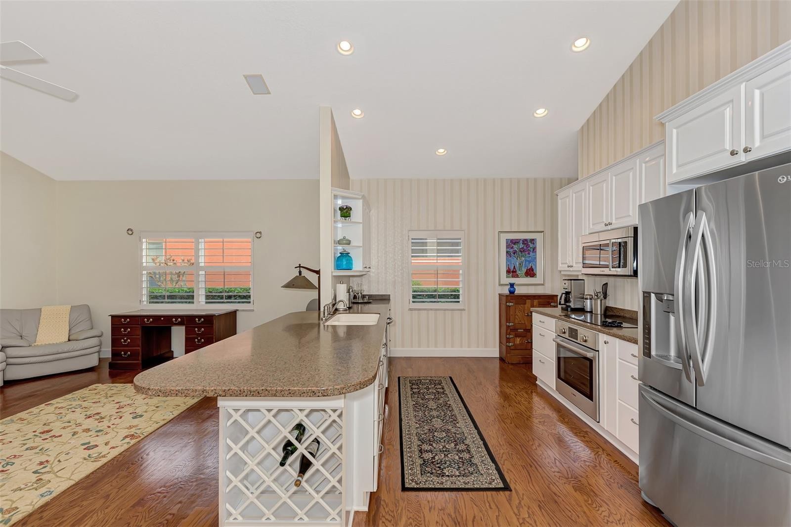 Welcome to your dream home, nestled within the exclusive, gated community of TPC Prestancia Golf and Social Club—a 565-acre oasis of luxury, world-class golf, and serene Florida living. Located in the highly coveted Valencia section, this charming, maintenance-free courtyard-style residence offers over 2,100 square feet of elegant living space, complete with a private pool featuring a soothing waterfall and lush, tropical landscaping. It’s the ideal setting for both tranquil relaxation and entertaining guests. This exceptional home includes a private casita, perfect for guests, family, or versatile use as an exercise studio or home office. With natural light pouring in, a full bathroom, and its own private entrance, the possibilities for this unique space are endless. As you enter the main home, you’re immediately greeted by a bright, welcoming courtyard that sets the tone for the meticulous attention to detail throughout. The open, airy living areas boast high ceilings, beautiful wood floors, and expansive windows that flood the home with natural light while framing peaceful views of the greenbelt and lake / creek. The spacious gourmet kitchen is a true chef’s delight, featuring top-of-the-line stainless steel appliances, generous counter space, and a breakfast bar, all overlooking the oversized family room and dining area. A cozy breakfast nook, highlighted by an aquarium window, provides the perfect spot to savor your morning coffee while enjoying nature’s beauty. The owner’s suite is a private retreat, offering panoramic views, plantation shutters, and a spa-like bath with double vanities, a soaking tub, a walk-in shower, and a generously sized walk-in closet. The split floor plan provides privacy for guests, with a spacious guest room and a full bathroom that conveniently doubles as a pool bath. Additional amenities include a two-car garage, laundry room, and abundant storage space, seamlessly blending practicality with luxury. TPC Prestancia offers optional memberships for golf and social activities, providing access to 36 holes of championship golf, fine dining, and a calendar of engaging social events. The home’s prime location offers unparalleled convenience, with the world-renowned Siesta Key beaches just minutes away, as well as downtown Sarasota, dining, shopping, and the newly extended Legacy Bike Trail. With easy access to I-75 and Sarasota’s airport, this is the perfect setting for both relaxation and adventure. This maintenance-free, luxurious courtyard home at TPC Prestancia is a rare find where comfort, style, and Florida living converge. Call today to schedule your private tour and experience the lifestyle you’ve always dreamed of!