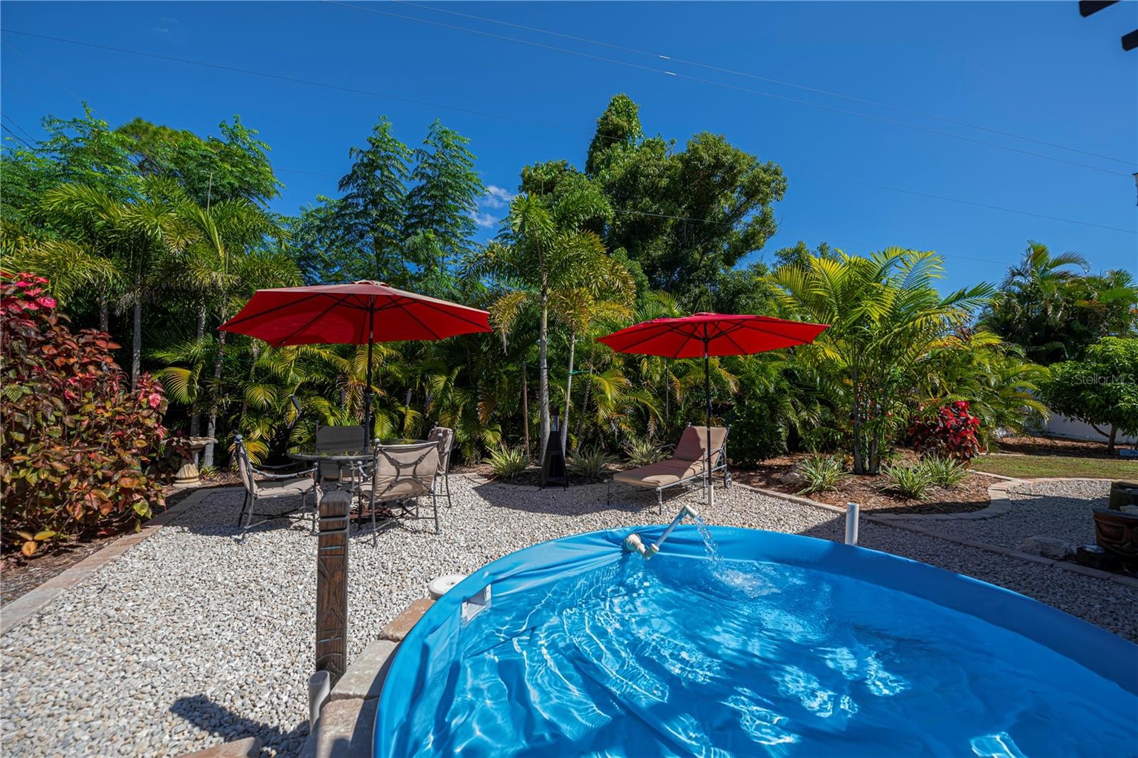 A Tropical Oasis in South Venice! Step inside to discover an inviting open floor plan featuring 2 bedrooms, 2 bathrooms, and a 2-car garage. The kitchen flows effortlessly into the dining and living areas, all highlighted by elegant terrazzo floors throughout. With an inviting eat-at bar, sleek granite countertops, modern cabinetry, and stainless-steel appliances, the kitchen is ideal for everyday living and entertaining. The spacious master suite offers a walk-in shower and dual sinks, while the generous guest bedroom is complemented by a bright guest bath with a tub-shower combination. Outdoor living is equally impressive. A screened lanai with hurricane-rated windows and a screened front porch provide inviting spaces to relax, while the large backyard offers ample privacy and parking with gravel areas perfect for RVs, campers, or outdoor toys. The oversized lot is fully fenced with reinforced aluminum posts, dual main gates, and 12-foot RV gates, plus a rocked RV area. Professional landscaping surrounds the property with privacy plants, raised vegetable beds, and mature fruit trees including mango, papaya, banana, citrus, and guava. A lined dipping pool, hard-piped with a sand filter and pump, adds a refreshing retreat. Recent upgrades include wind-rated windows installed in 2021, a roof 3.5 years old with lightning protection, gutters, and downspouts, plus a new well pump and pressure tank. The home is equipped with inline water filters, a softener, charcoal filtration, and reverse osmosis drinking water at the kitchen sink and refrigerator. For peace of mind, there is a 30/50 amp plug with generator interlock in the breaker box. Power & conduit available for future pool equipment. Additional highlights include attic storage with lighting, outdoor security lighting, ceiling fans in bedrooms, dog doors, and an outdoor shower. South Venice offers optional amenities including access to a private beach ferry, boat launch, kayak ramp, and pickleball courts at the civic center across the street. Located minutes from Gulf beaches, Venice Island, and the vibrant new Wellen Park community, this home delivers the very best of Florida coastal living with a pleasant blend of updates, functionality, and lifestyle.