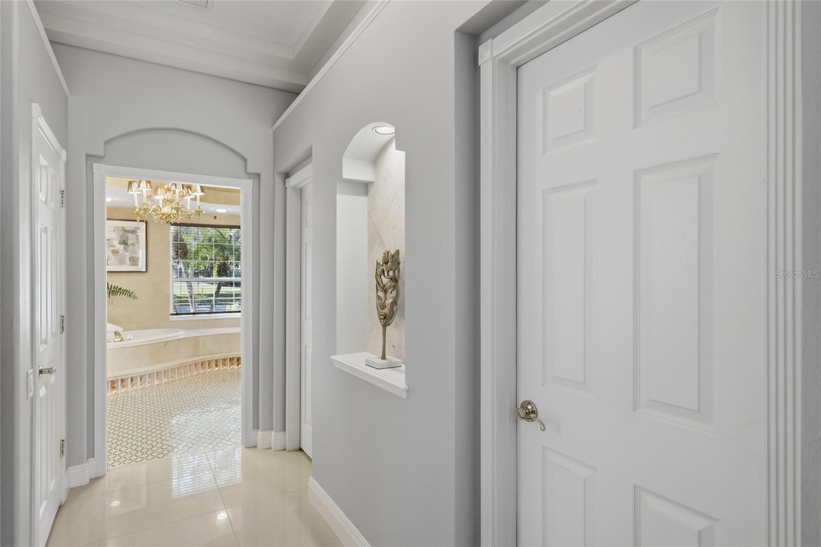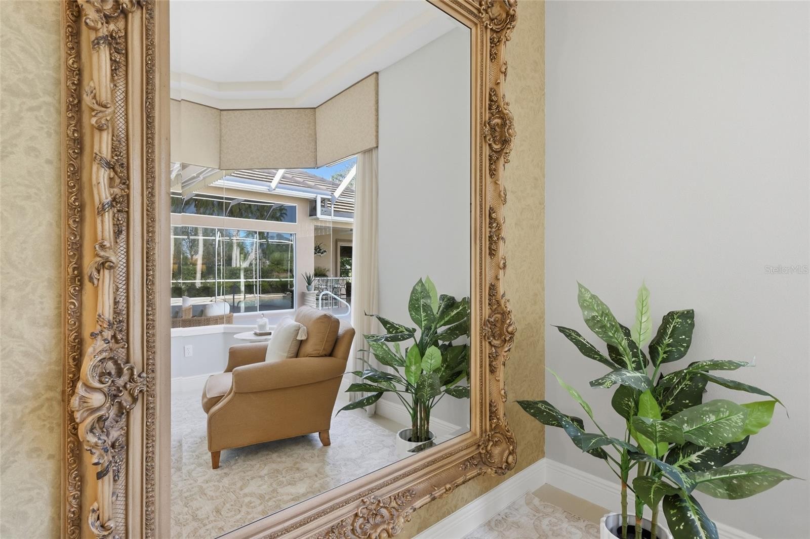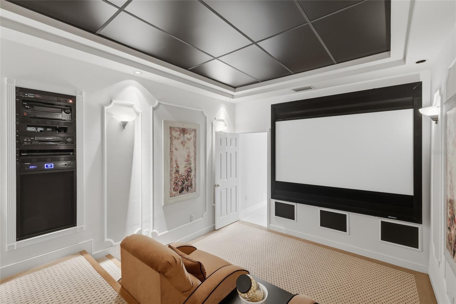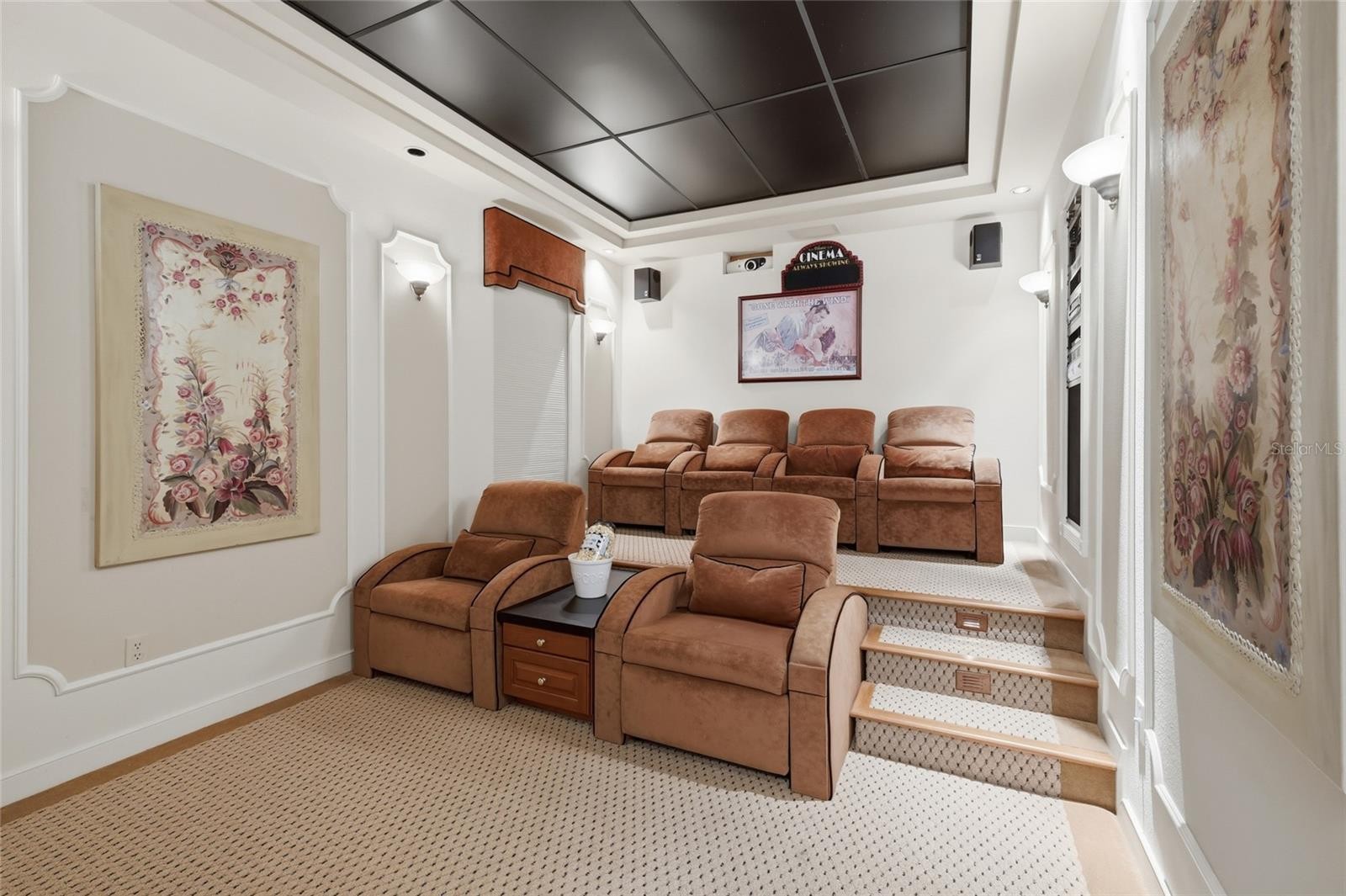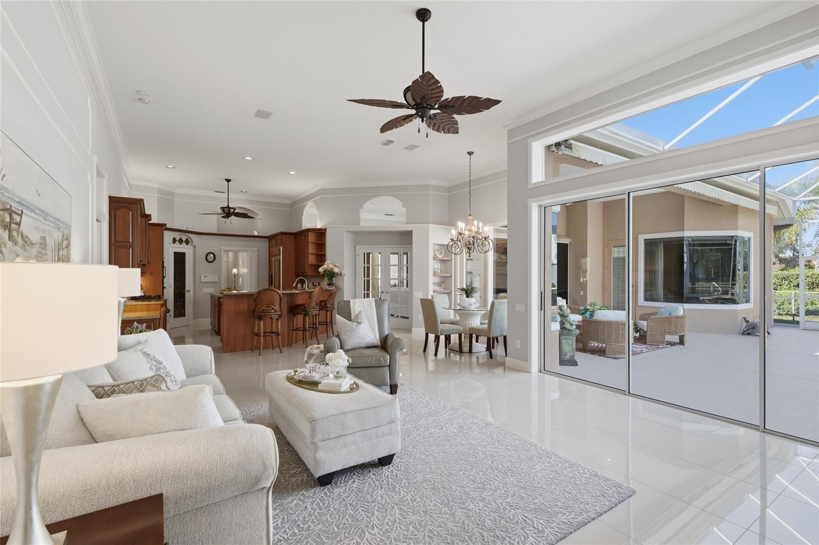 This custom Mediterranean style home in the Hyde Park village of University Park Country Club delivers refined elegance and luxury at every turn, showcasing breathtaking backyard views! With 3 bedrooms, 3.5 baths, a 3 car garage, & a private home theatre, this home sets the stage for unforgettable evenings, whether you’re settling in for an immersive movie night indoors or relaxing outdoors by the pool & spa. Striking curb appeal greets you with a semi-circular pavered driveway, lush tropical landscaping, & a welcoming front porch framed by stately columns, creating a grand first impression. Just off the entry, the formal living room features sliders to the lanai, a gas fireplace framed by illuminated built-ins, and a custom wet bar, creating a polished, sophisticated space ideal for entertaining. Just off the entry, a spacious dining room provides an elegant setting for formal meals. Beyond the living room is your expansive kitchen overlooking a large breakfast nook and the Great Room. Imagine sipping your morning coffee at your breakfast nook as you gaze through the panoramic bay window & marvel at the backyard views! Your gourmet kitchen includes wall oven & microwave, gas cooktop range atop a secondary oven, built-in refrigerator, center prep island w/beverage fridge, large corner pantry, & breakfast bar. A built-in wall unit in the Great Room provides storage, while triple sliders to the lanai reveal your outdoor oasis - the sparkling pool & elevated spa, complete w/bubbler & waterfall. The outdoor kitchen at the veranda is an entertainer's dream & includes wraparound bar seating, fridge, & sink. Your lanai is surrounded by lush, privacy-enhancing tropical landscaping, allowing you to enjoy stunning waterfront views that transform this space into a true sanctuary. Just off the living room, the expansive Primary Retreat invites you to unwind with its dramatic double tray ceiling & private access to the lanai. The Primary Bath exudes opulence with its soaring curved ceilings, chandelier, Roman tub, roomy walk-in shower & 2 large walk-in closets. On the opposite side of the home, a spacious bedroom is served by a full hall bath, while the larger Guest Retreat has its own en-suite pool bath w/hallway access to the veranda. Movie nights become extraordinary in your custom home theatre, featuring elevated seating, blackout ceiling, & full media tower for a truly immersive cinematic experience. A hallway beyond the Great Room opens to the elegant study/home office, beautifully appointed with gorgeous custom built-ins along w/a plush window bench overlooking the tranquil backyard. Sliders in the study open to the veranda, making this versatile room ideal to be used as a den, poolside club room, or even an attached guest casita. Other features include NEW AC (2023), NEWER roof (2019); NEW interior paint; Custom window treatments; Fenced dog run; Security system & more! Residents of the gated, maintenance-free University Park Country Club enjoy world-class amenities including a 27-hole championship course recognized as the #1 Golf Course in SW Florida, illuminated Har-Tru tennis courts, state-of-the-art pickleball courts, a fully equipped Fitness Centre, and the on-site Park Grille & Café bar & restaurant. Situated in Sarasota off University Pkwy, this home is just a short drive to shopping, dining, & entertainment including UTC Mall & SRQ International Airport; 30 minutes to award-winning Siesta Key Beach; and quick & easy access to I-75.
