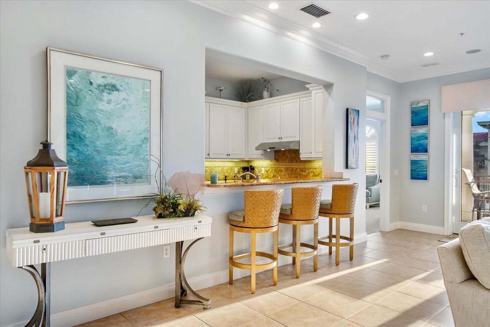 Step into effortless coastal luxury in this exquisite Gulf-front condominium, where soaring ceilings, an open floor plan, and refined finishes set the tone the moment you arrive. Sliders frame stunning partial Gulf views straight ahead, filling the living space with natural light and sea-kissed serenity. Designed for both comfort and entertaining, the living room features premium surround sound, a cozy fireplace, and an elegant wet bar—perfect for evenings with friends or quiet nights in after a day on the beach. This residence offers three beautifully appointed ensuite bedrooms, providing privacy and comfort for family and guests alike. Offered fully turnkey, the condo is dressed in sophisticated coastal furnishings and finishes that complement the relaxed elegance of island living. Additional conveniences include an in-unit laundry room, private elevator access, a two-car garage, and a large dedicated storage unit. Life here unfolds at a slower, sunnier pace. Spend your days lounging by the community pool, grilling fresh seafood in the poolside gazebo, or taking long walks along the sugar-sand beach as dolphins and manatees play in the surf. Each evening, Anna Maria Island’s world-famous sunsets pour a golden glow into your rooms, a daily reminder that you’ve found your own slice of paradise. Centrally located to the island’s many beloved restaurants and boutique shops, this elevated residence is built with concrete and rebar construction, hurricane-rated windows, and new roofs—offering lasting quality and peace of mind. With a minimum weekly rental period, the property presents an exceptional opportunity to generate substantial investment income, enjoy as a family retreat, or seamlessly blend both. This is beachfront living at its finest—luxurious, carefree, and undeniably Anna Maria.