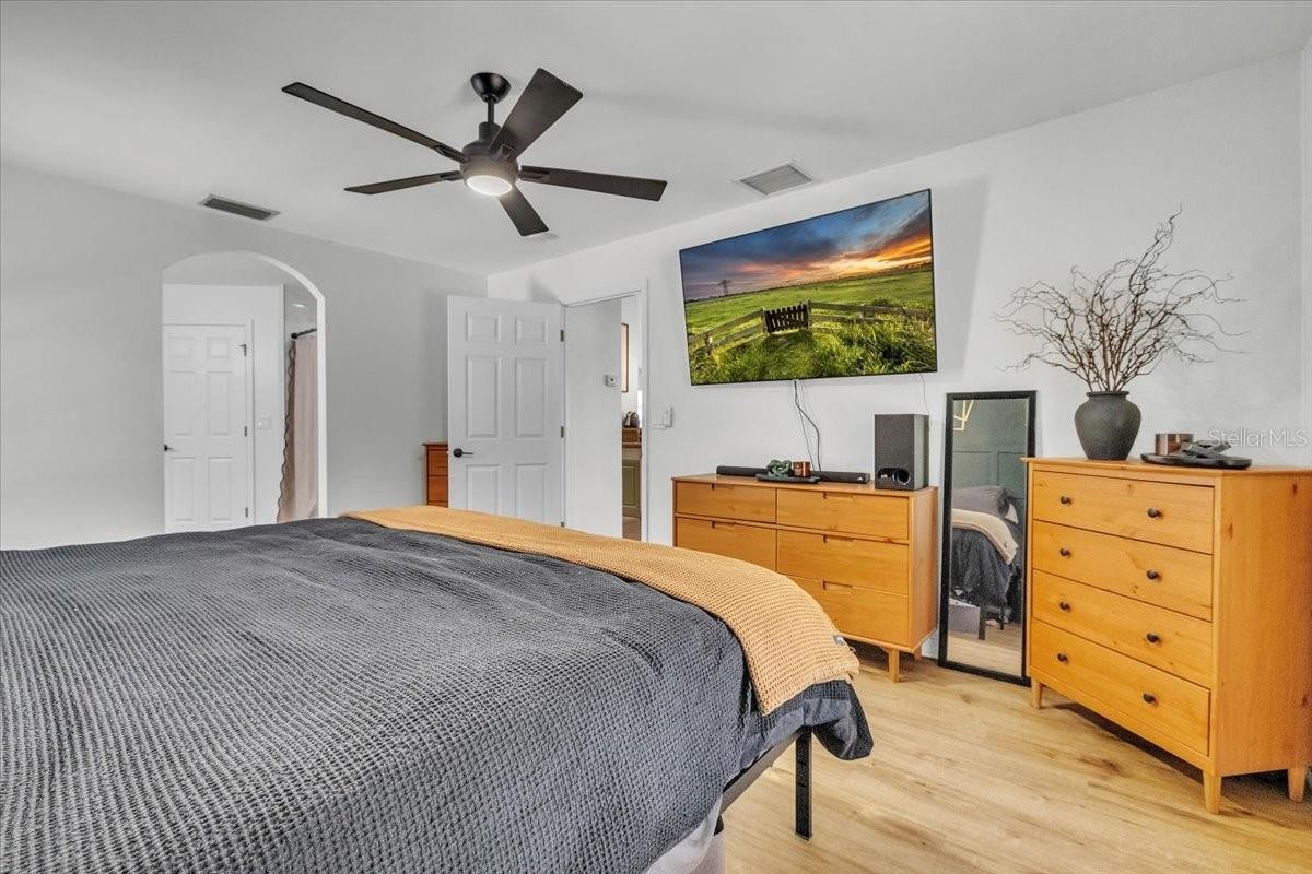 This beautifully updated move-in ready 3-bedroom, 2-bath contemporary home with a 2-car garage is ideally situated on an expansive .30-acre lot in a quiet, centrally located neighborhood. Offering 1,531 square feet under air, the home perfectly blends modern upgrades with comfort, privacy, and convenience. Built in 2006 and thoughtfully enhanced, it features a new roof installed in 2022 for added peace of mind. From the moment you step inside, you’re welcomed by a light-filled open-concept great room that immediately sets the tone for the home’s airy, inviting feel. Soaring vaulted ceilings and a neutral color palette create a bright, spacious atmosphere, while expansive sliding glass doors fill the space with natural light and provide seamless access to the outdoor living area. The generous living area easily accommodates larger furnishings and is anchored by a stylish entertainment wall. Just beyond, the dining area overlooks the main living space and flows effortlessly into the kitchen—an ideal layout for everyday living and entertaining. The kitchen showcases pendant lighting, ample cabinetry, a breakfast bar, a suite of stainless-steel appliances, and a functional design that keeps the cook connected to guests. A conveniently located laundry room just off the kitchen adds everyday practicality. This inviting primary suite features a modern, minimalist design with clean lines and warm touches. A bold accent wall behind the bed creates a striking focal point, complemented and contemporary sconces. The spacious layout includes light wood flooring, crisp white walls, and an elegant arched doorway leading to additional storage or ensuite spaces. A sleek ceiling fan adds comfort and style. The beautifully updated primary bath offers a clean, modern design with thoughtful functionality. A spacious vanity with dual sinks, sleek fixtures, and contemporary lighting is complemented by stylish framed mirrors and abundant cabinetry for storage. The walk-in shower features an impressive large-format tile wall, creating a sophisticated spa-like feel while offering easy maintenance. A separate, private water closet adds convenience and privacy. Completing the suite is a generous walk-in closet, providing ample space for organization and everyday ease. Two additional bedrooms are on the other side of the home and share a Jack-N-Jill bathroom. Outside, enjoy a covered lanai that extends to a pergola with a hot tub, perfect for relaxing or entertaining. The large backyard features shade trees and plenty of room to add a pool, creating your own private oasis. Located in vibrant Sarasota County on Florida’s Gulf Coast, North Port offers an appealing blend of natural beauty, outdoor recreation, and convenient living. The city features more than 80 miles of freshwater canals, the Myakka State Forest, abundant parks, trails, and waterways for kayaking, hiking, fishing, and nature-loving lifestyles. Residents enjoy warm year-round weather, easy access to some of Southwest Florida’s most beautiful beaches within a short drive, and community amenities like the North Port Aquatic Center, performing arts venues, and baseball at Cool Today Park, spring training home of the Atlanta Braves. With a growing population, strong community spirit, and proximity to shopping, dining, and major roadways, North Port delivers an outstanding Florida lifestyle. **PLEASE ENJOY THE 3D INTERACTIVE VIRTUAL TOUR ASSOCIATED WITH THIS LISTING**