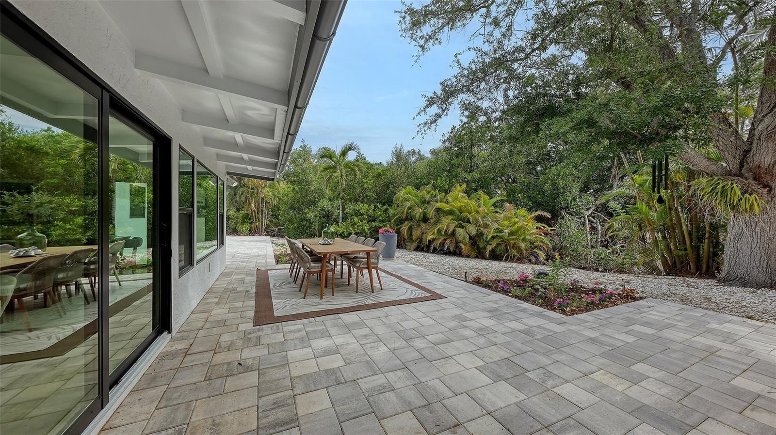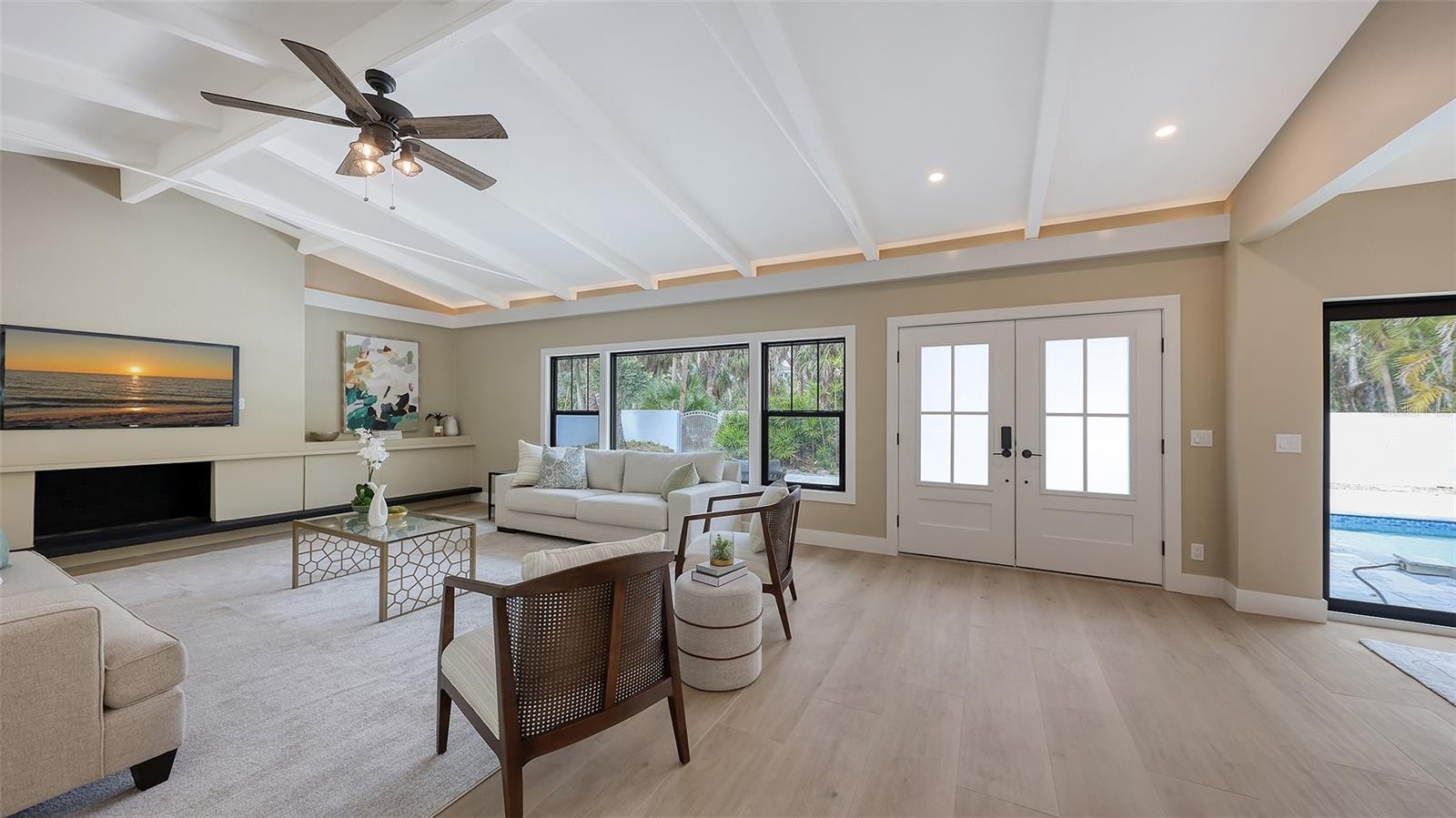 Beautifully renovated 4-bedroom, 4-bath pool home tucked behind the gates of the exclusive Sanderling Club. Surrounded by a grandfathered privacy wall and lush tropical foliage, the property is just steps from your own private beach. 2023 updates include - new roof, hurricane-impact windows/sliders and plumbing. Meticulously renovated in 2025–2026 with top-of-the-line finishes throughout the entire home. Luxury vinyl plank flooring flows through the open floor plan, complemented by granite countertops and a oversized granite island with lots of storage, Samsung appliances and an open-concept layout ideal for entertaining, with abundant indoor/outdoor living space with views of the oversized sparkling pool. The primary suite is a tranquil retreat with two walk-in closets and an en-suite bath featuring a double vanity and soaking tub. A thoughtful split plan offers two additional spacious bedrooms each with en-suite baths. A fully renovated pool house/mother-in-law suite with its own full bath adds flexible living options. Located in a waterfront community, residents of the Sanderling Club have exclusive beachfront access, tennis and pickleball courts, clubhouse and 24-hour security This home blends refined luxury with coastal lifestyle and privacy.