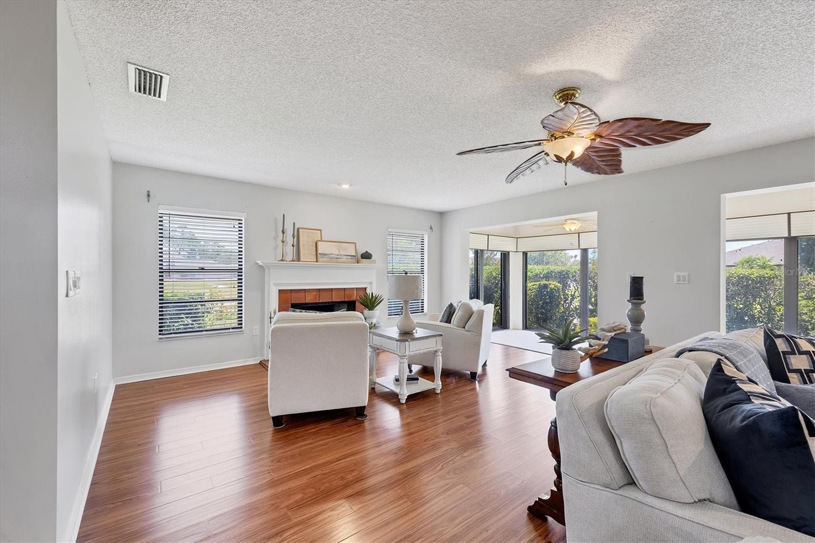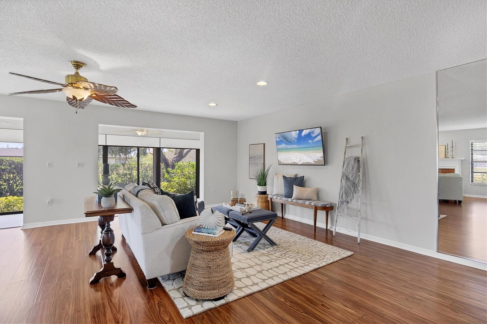Welcome to a serene slice of Sarasota living in this immaculate maintenance-free villa. Offering peace of mind while tucked away in the lush, 36-acre gated community in Ballantrae within Sarasota’s coveted Palmer Ranch area, this impeccably maintained villa redefines carefree Florida living. With 2,282 square feet of air-conditioned space (2,901 total), this true three-bedroom, two-bathroom end unit offers the privacy and comfort of a single-family home—without the upkeep. The villa’s spacious, open-concept design flows seamlessly from its renovated kitchen, featuring light cabinetry and a cozy eat-in area, into expansive living and family rooms adorned with new luxury vinyl plank flooring. An enclosed and vented lanai extends the living space, making it perfect for year-round enjoyment. Inside, the large primary suite boasts a sitting area or office nook, a spacious and well-organized closet, and serene views of the surrounding greenery. Two well-appointed guest rooms with organized wall closets ensure ample room for visitors or hobbies. This villa is move-in ready with numerous upgrades: replumbing, a 2019 HVAC system, a newer water heater, washer and dryer, hurricane shutters, and a brand-new roof in 2024. Easy-care luxury vinyl plank floors and sun shades add to the relaxed, low-maintenance appeal. Ballantrae is cherished for its privacy and tranquility, offering residents a serene, park-like setting. Behind the gates, the community is also well-managed, providing added peace of mind. Condo dues cover exterior maintenance so homeowners can focus on enjoying the lifestyle. A private walking path leads to the Sarasota Sports Club, where optional memberships offer access to tennis courts, a pool, and a fully equipped fitness center. Conveniently located near the Legacy Trail, shopping dining and entertainment, and just minutes from the award-winning white sands of Siesta Key Beach, this villa blends tranquility, quality, and convenience in one exceptional package.