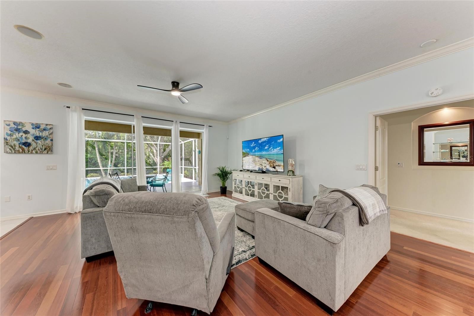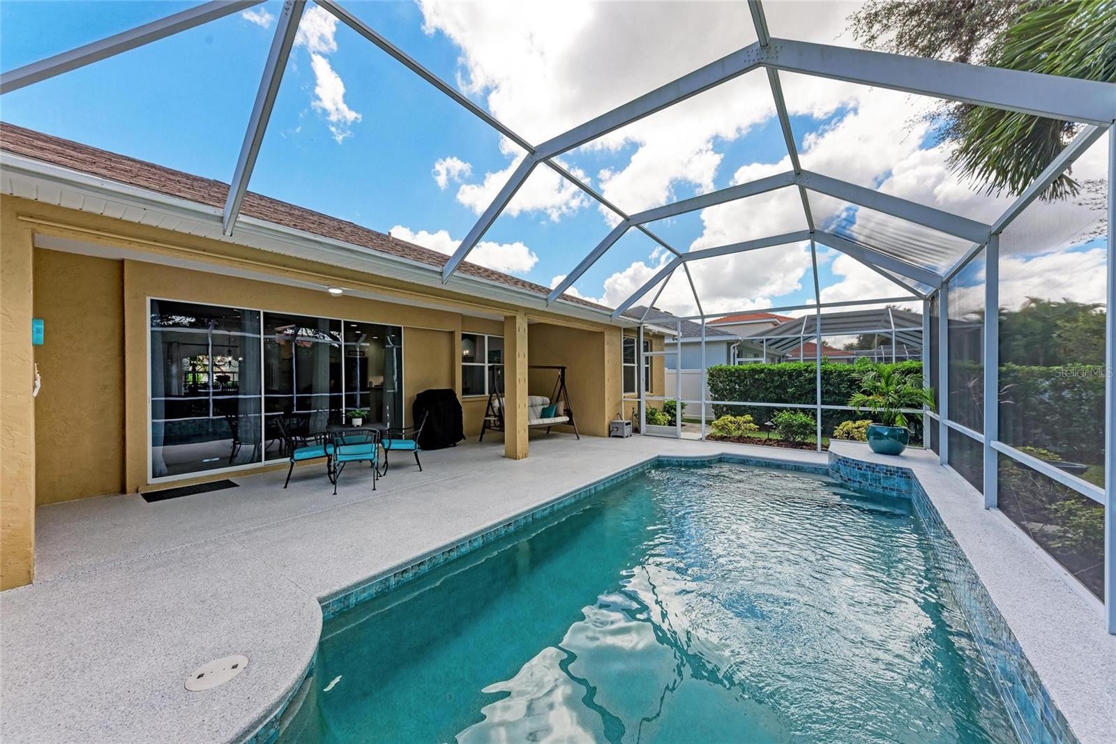 New Price! Charming home with heated pool in Riverwalk Village, Lakewood Ranch! This wow-location is directly across from Lakewood Ranch Golf & Country Club and close to everything — dining, shopping, parks, medical facilities, and more. Built by accredited Homes by Town this Norwood model features high ceilings and a bright, cheerful ambiance. The home has been beautifully updated and meticulously maintained, including a whole-house Generac generator, 2021 roof, new HVAC system, blown-in insulation, hot water heater, pool heater, pool pump, and cartridge filter. The sparkling pool has been newly resurfaced and tiled, with the pool deck also resurfaced for a fresh, modern look. A pool safety gate adds peace of mind. The home includes two new Lanai hurricane Storm Smart screens, a new refrigerator, and new smoke detectors throughout. The home features a Ring security system. It has 4 outside cameras plus a doorbell camera. Inside there is a base station, motion sensor in the living room area and two smoke detectors. Inside, you’ll find engineered hardwood flooring in the dining room and great room, crown molding, ceiling fans with lights. Triple glass sliders in the great room open fully to a large covered lanai with two ceiling fans, creating seamless indoor-outdoor living. The screened pool area is surrounded by mature trees and lush landscaping with accent lighting, offering a tranquil and truly private retreat. The spacious primary suite spans the entire right wing of the home and features a double-door entry, direct lanai and pool access, two closets — one walk-in and one double — and four windows that flood the space with natural light and serene views. The ensuite bath includes dual vanities, a separate tub, and a walk-in shower. The kitchen is thoughtfully designed with white cabinetry, black granite counters, a five-burner gas range, stainless steel appliances, recessed lighting, a breakfast bar, and a dinette area with pool views. Bedrooms two and three are located on the left side of the home, each with double closets and ceiling fans with lights, and they share a full hall bath. A linen closet adds convenience to the hallway layout. Laundry room with stacked Washer and Dryer, cabinets. The garage offers generous storage with newly installed ceiling-mounted racks. With a low $102/year HOA and low CDD included in the taxes. This home is a true treasure. Lakewood Ranch offers 150 miles of walking and biking trails, outdoor parks, two dog parks, an A-rated school system, and proximity to Main Street’s vibrant mix of casual and fine dining, boutique shopping, and community events. The Lakewood Ranch Medical Center is nearby, and the UTC Mall is just eight minutes away. Downtown Sarasota, with its entertainment, boating, and cultural attractions, is approximately 25 minutes from your doorstep. Live, work, and play in the #1 master-planned community in the U.S., where sunny days and starry nights define the Florida lifestyle. Easy to show — call today!