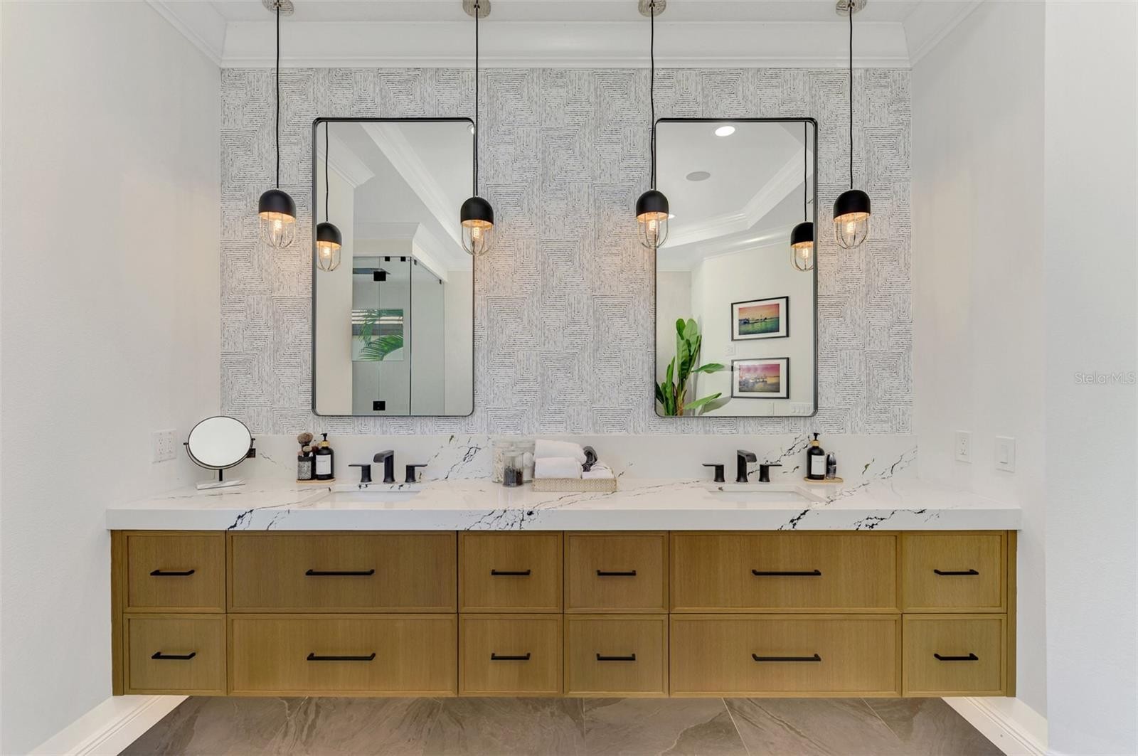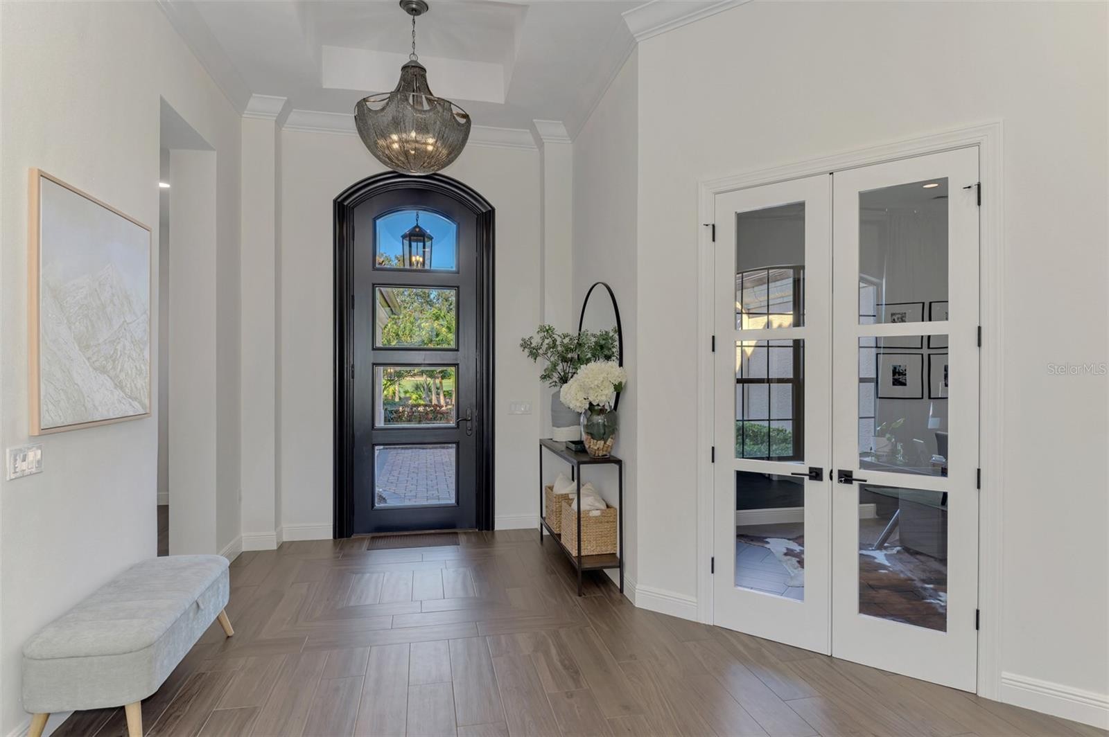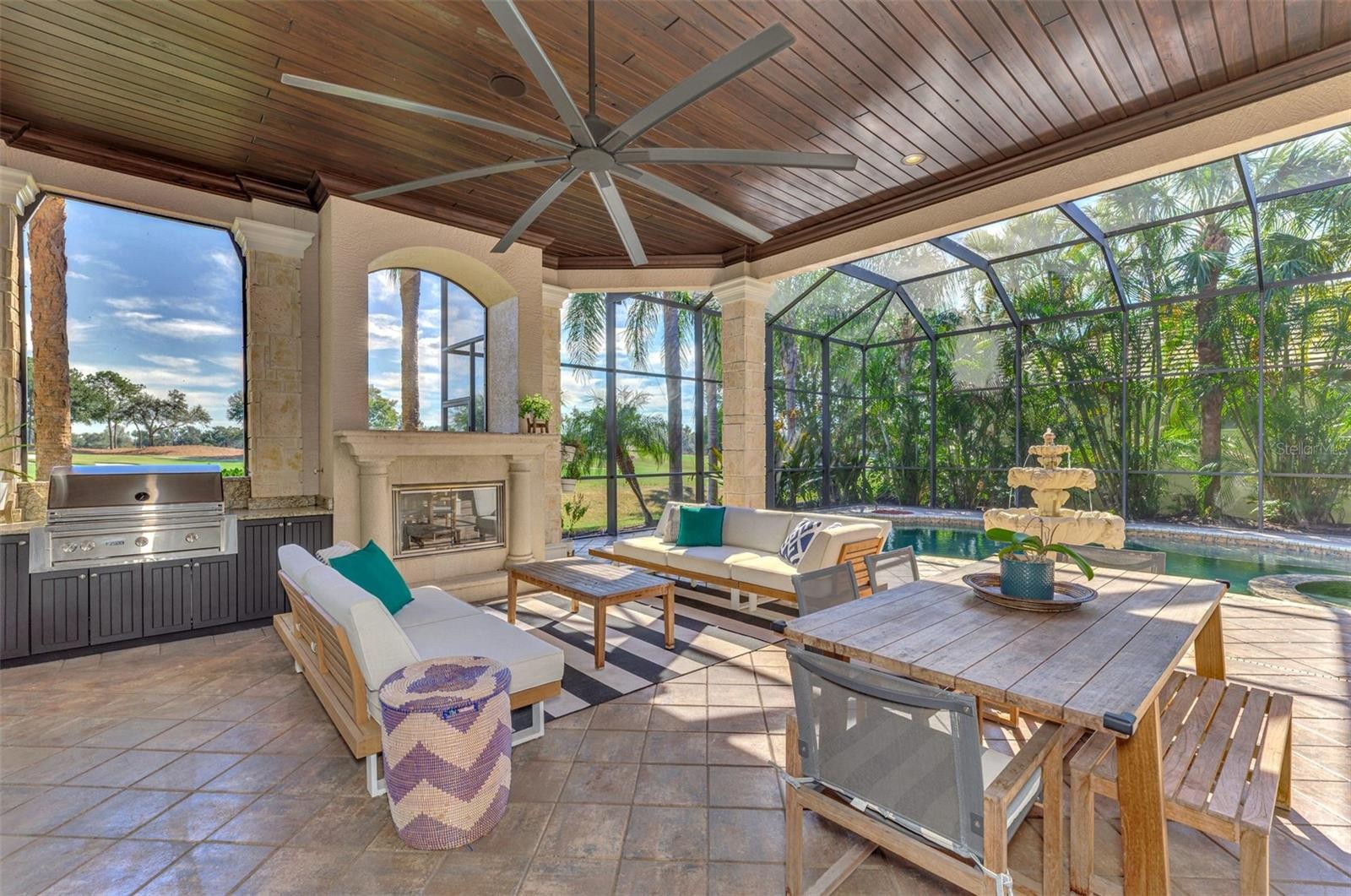 Exquisite, fully remodeled Neal Signature Home offering refined country club living on an expansive 1/3 acre homesite with sweeping views of the 2nd hole of the Kings Dune Golf Course and no neighboring homes either in front or behind, providing a rare sense of privacy. Thoughtfully reimagined from top to bottom, this residence seamlessly blends timeless architecture with today’s most sought-after luxury finishes. The home features 5 spacious bedrooms, a dedicated office, a loft, 4½ baths, and a rare oversized 4-car garage, with soaring ceilings and exceptional natural light throughout. Recent renovations include a completely redesigned kitchen, laundry room, and all bathrooms, showcasing custom cabinetry and premium Cambria quartz countertops throughout, with numerous additional enhancements throughout the home. The chef’s kitchen is a showpiece, outfitted with top-of-the-line Sub-Zero, Thermador, and Wolf appliances, a generous center island, wine and beverage refrigeration, and an iron-and-glass pantry—perfectly designed for both everyday living and entertaining. The family room impresses with dramatic wood-beam ceilings, a custom limestone feature wall, and pocketing sliders that open fully to the lanai, creating a true indoor-outdoor lifestyle. The owner’s suite is a private retreat with dual custom walk-in closets and a spa-inspired bath featuring upgraded finishes, custom cabinetry, and elegant stone surfaces. Outdoor living is extraordinary, with an expansive lanai featuring tongue-and-groove ceilings, fireplace, summer kitchen, custom pavers, and a heated pool and spa, all oriented for beautiful sunrises and sunsets over the golf course—ideal for entertaining or quiet relaxation. Additional highlights include a newly added private office, beautifully upgraded laundry room, central vacuum, Sonos surround sound throughout the home, electric Hunter Douglas blinds in the primary suite, lush landscaping, and refined architectural details throughout, among many other thoughtful enhancements. Situated inside the Lakewood Ranch Country Club, residents can enjoy optional membership access to 72 holes of private championship golf across four courses, three clubhouses with year-round dining and social events, two heated resort-style outdoor pools, a 20,000+ sq. ft. state-of-the-art fitness and racquet facility, tennis and pickleball courts, and a vibrant calendar of activities for all ages. Lakewood Ranch itself is one of the nation’s top-selling master-planned communities, just minutes from Sarasota’s cultural attractions, sandy beaches, and world-class dining and shopping. This is a rare opportunity to own a fully updated, move-in-ready luxury estate in one of Lakewood Ranch’s most coveted communities.