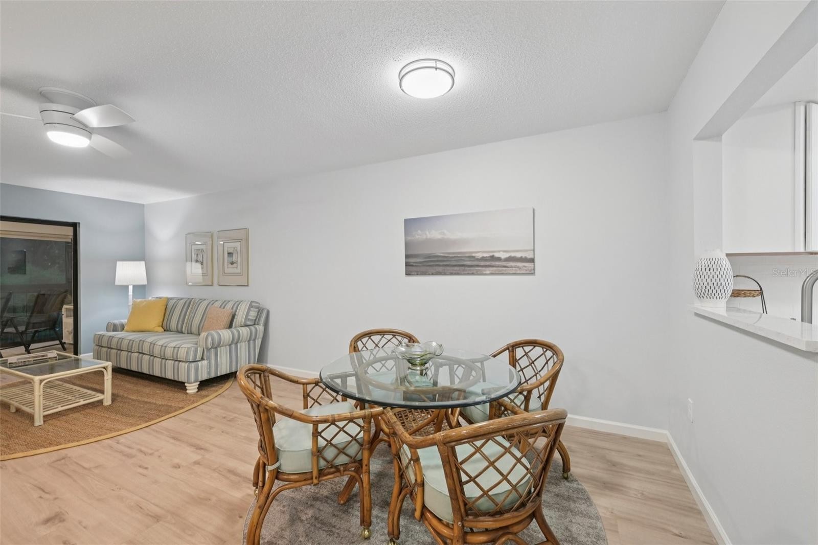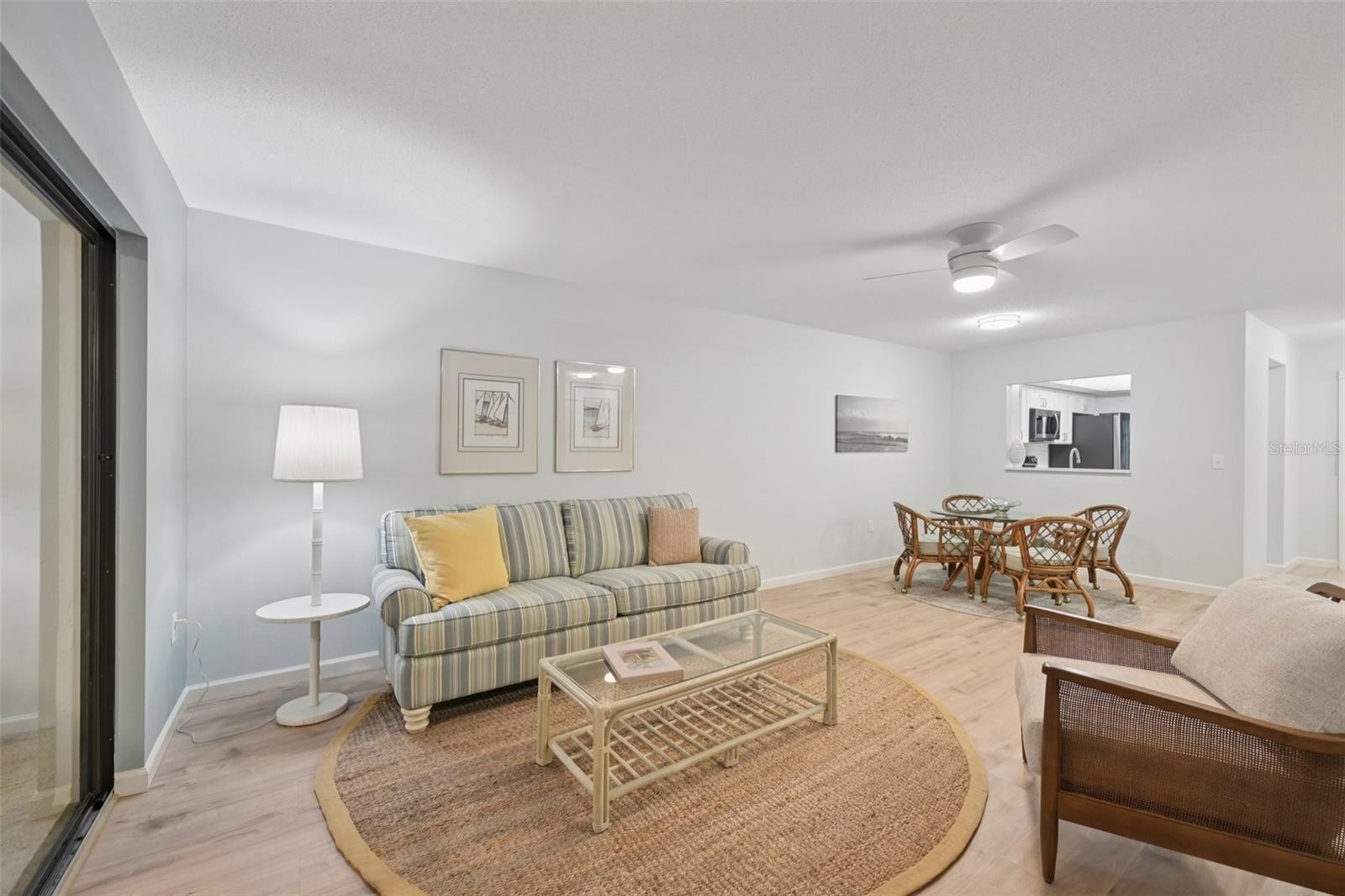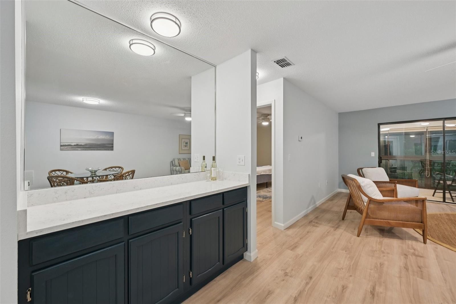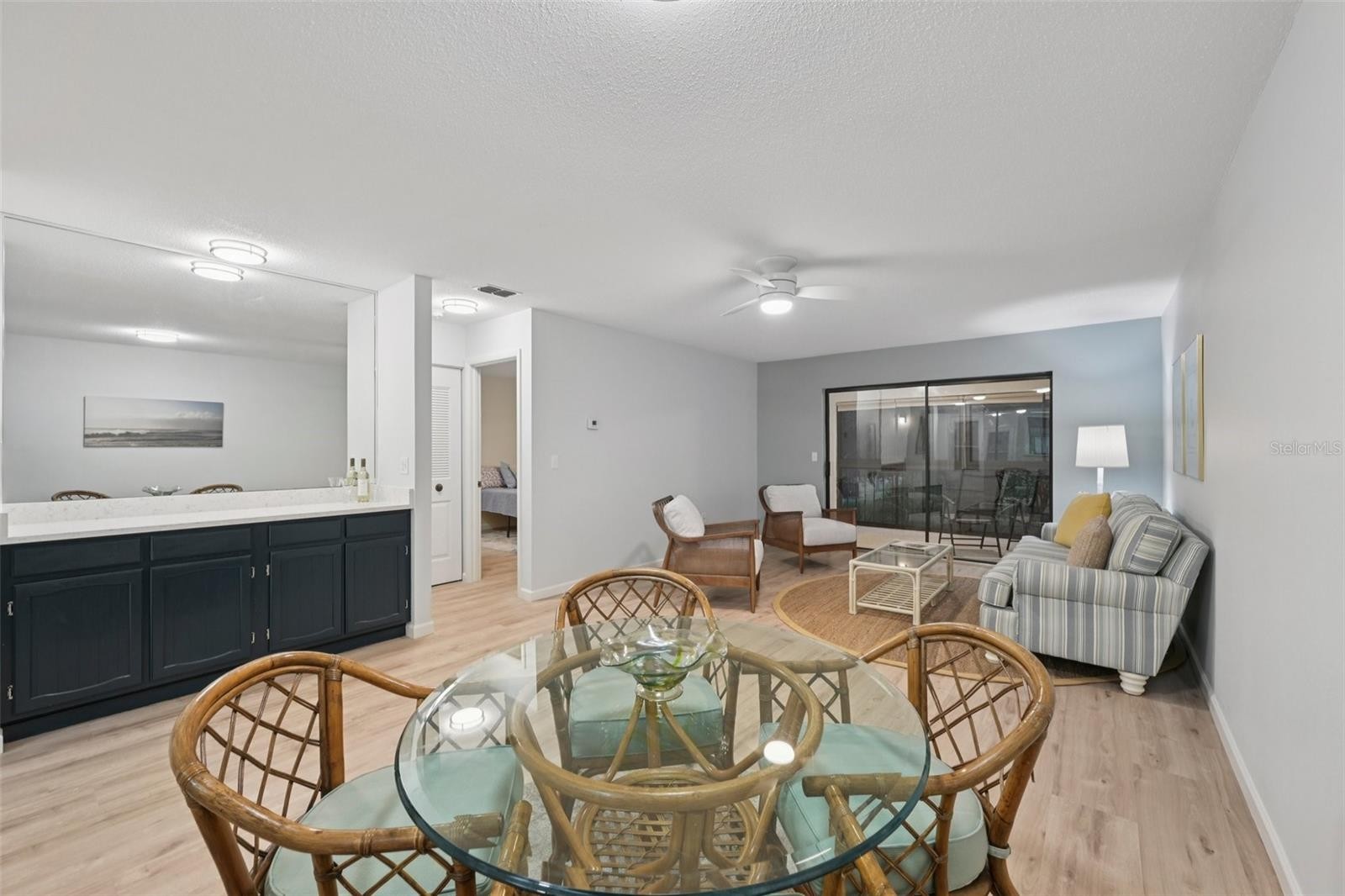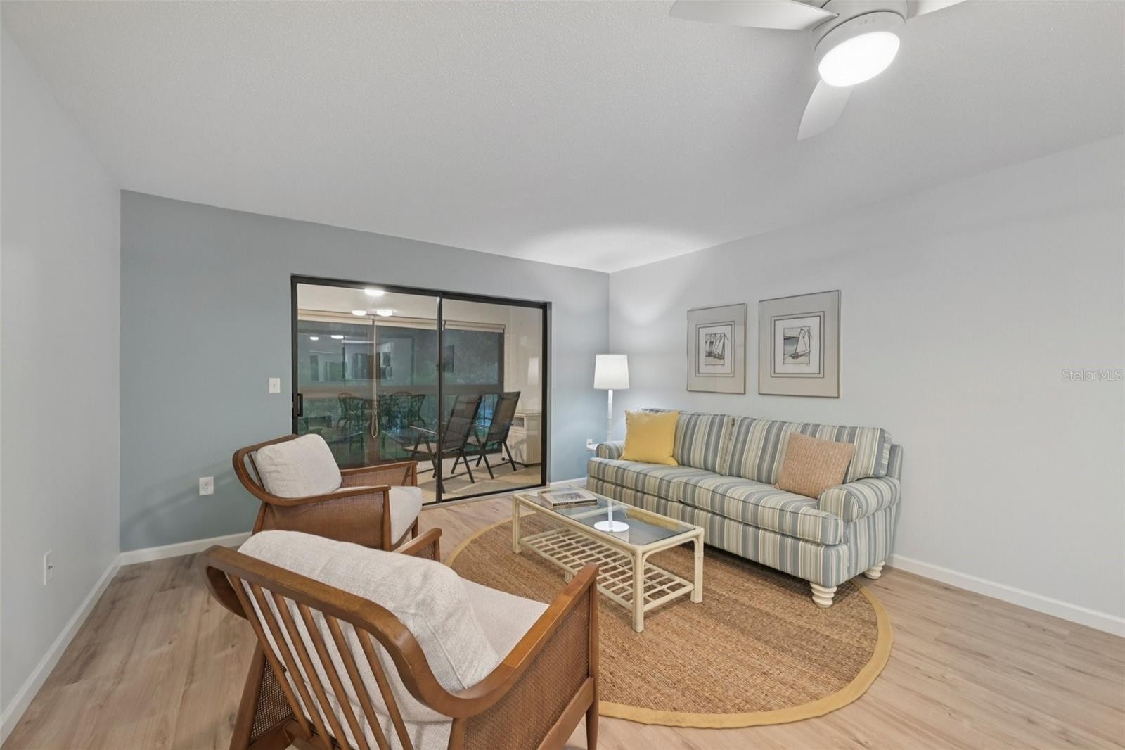 Incredible value at "Estancia of Capri Isles"! This furnished and completely remodeled second floor 2 BR, 2 BA condominium in this sought after Condominium community looks and smells like a brand-new home and is move-in ready. Filled with lots of natural light, painted in a soothing coastal color palette and featuring a fabulous lake view, this condo offers the ideal environment for the relaxed Florida lifestyle. Step into your home through the screened entry door and you will be impressed by the open floor plan, light-colored luxury vinyl wood plank flooring throughout and two generously sized bedrooms in a split layout that allows for privacy when family and friends come to visit. Everything in your kitchen is brand-new! From the stainless-steel appliances, to the white cabinetry with soft-close drawers and doors, to the gorgeous quartz countertops and subway tile backsplash. With natural lights from the adorable kitchen garden window (a great spot to grow fresh herbs!), it is the ideal space for cooking and entertaining. The spacious Primary Bedroom Suite offers lanai access and a great view of the lake and center fountain. Your En Suite Primary Bath has been updated with a quartz-topped dual vanity, new cabinetry and a new freshly tiled luxurious walk-in shower. There is also a large walk-in closet and a built-in closet with shelving. Your guest room, located in the front of the condo is generously sized as well and features a guest bathroom with a shower over tub. You will enjoy the convenience of an inside laundry closet with stackable washer & dryer. From your Great Room, sliding glass doors open to the large enclosed lanai that features both windows and screens and doubles as a Florida Room. It is the perfect space to enjoy your morning coffee and admire the beautiful views. There is an extra storage closet on the lanai and the condo has a one car covered carport and the option of uncovered tandem parking for a second car. Newer water heater and A/C. "Estancias of Capri Isles" is meticulously maintained with new tile roofs, fresh paint, lush tropical landscaping, recently paved roads and a lovely community pool with clubhouse. The well managed Condo Association just reduced the quarterly Condo fees to $1,600 per quarter, starting April 1, 2026 (down from $2,022/quarter). Just minutes from golf courses, the sandy Gulf beaches and quaint downtown Venice, this location cannot be beat. Whether you are searching for your winter getaway or looking to live in the Sunshine state permanently, schedule your showing today! Please note that "Estancia of Capri Isles" does not allow pets.