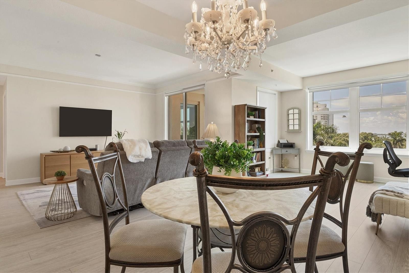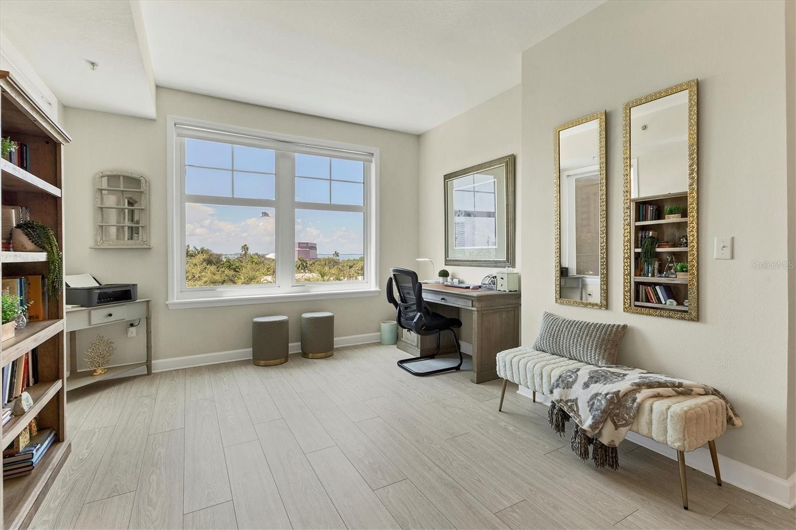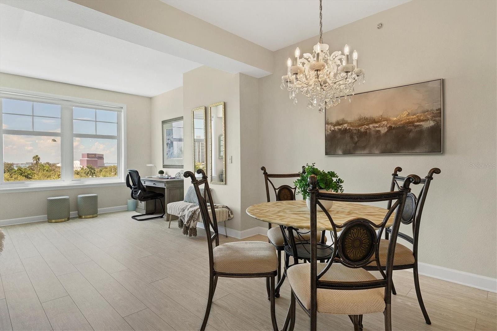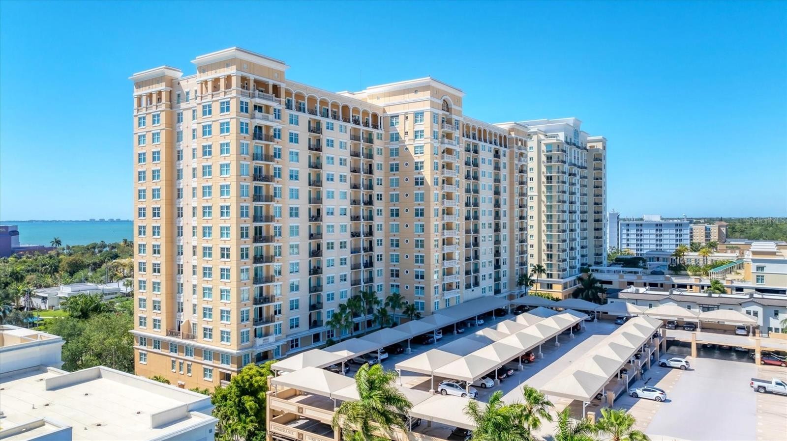 Experience the best of downtown Sarasota living from this beautifully positioned fourth-floor residence at Renaissance, where sweeping views of the turquoise Sarasota Bay and the newly developed Bay Sarasota Park, a resilient green space creating a daily backdrop of coastal beauty and vibrant city energy. Offering 1,020 square feet of heated living space and 1,072 total square feet, this thoughtfully designed one-bedroom, one-bath residence delivers an exceptional blend of comfort, functionality and timeless appeal, ideal for full-time living and seasonal enjoyment. Natural light fills the interior through expansive windows, enhancing the open and inviting layout. The primary living area flows seamlessly into a versatile den, providing valuable additional space for a home office, reading lounge or guest accommodations. The kitchen is well-appointed with new appliances and ample cabinetry, while the updated bath features clean, modern finishes. A large walk-in closet adds generous storage, and the residence has been tastefully maintained to support an effortless lock-and-leave lifestyle. Indoor and outdoor living converge beautifully as tranquil bay views become part of everyday living. There is a spacious balcony off the living area with westerly views. Beyond the residence, Renaissance offers a comprehensive suite of resort-style amenities within a secure, 16-story high-rise known for its enduring construction and thoughtful design. Residents enjoy landscaped plazas, fountains, a grand Italian villa-inspired entrance and a striking lobby with concierge services. The building features key-card access, a staffed front desk, overnight security, on-site management, a clubroom, business center, fitness center and a private resident theater. Renaissance was engineered with exceptional attention to structural integrity. Constructed with reinforced concrete beams, fireproofed materials and pilings drilled deep into the ground, the building was designed to perform like a fortress. The property is in Flood Zone X and outside the floodplain. The lobby and guest parking are elevated more than 15 feet above base sea level, providing additional peace of mind. This residence includes one assigned, secured parking space on the first floor of the garage, also elevated over 15 feet above sea level. Ideally in the heart of Sarasota’s cultural district, Renaissance places residents moments from world-class dining, performing arts, galleries, waterfront promenades and year-round social events. This is a rare opportunity to enjoy downtown Sarasota living with Sarasota Bay views, exceptional security and outstanding value. Schedule your private tour today before this updated residence is gone.