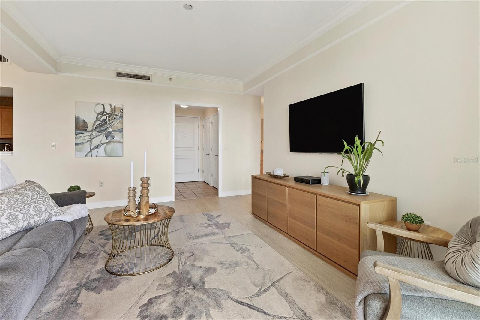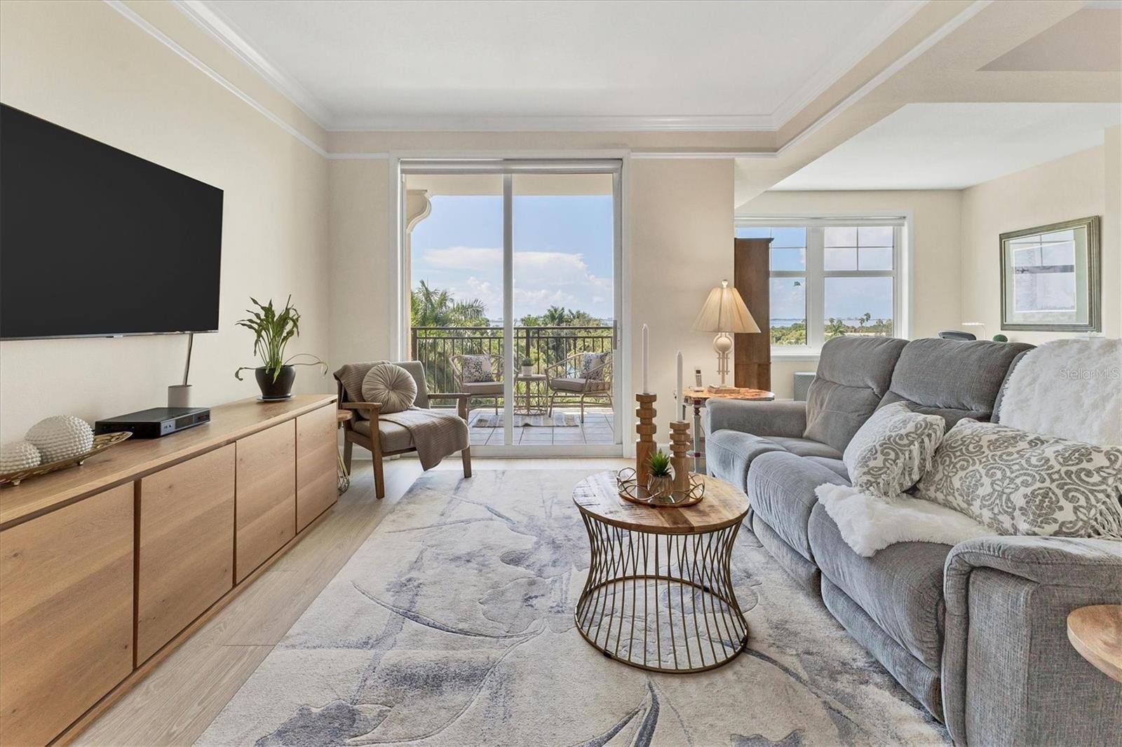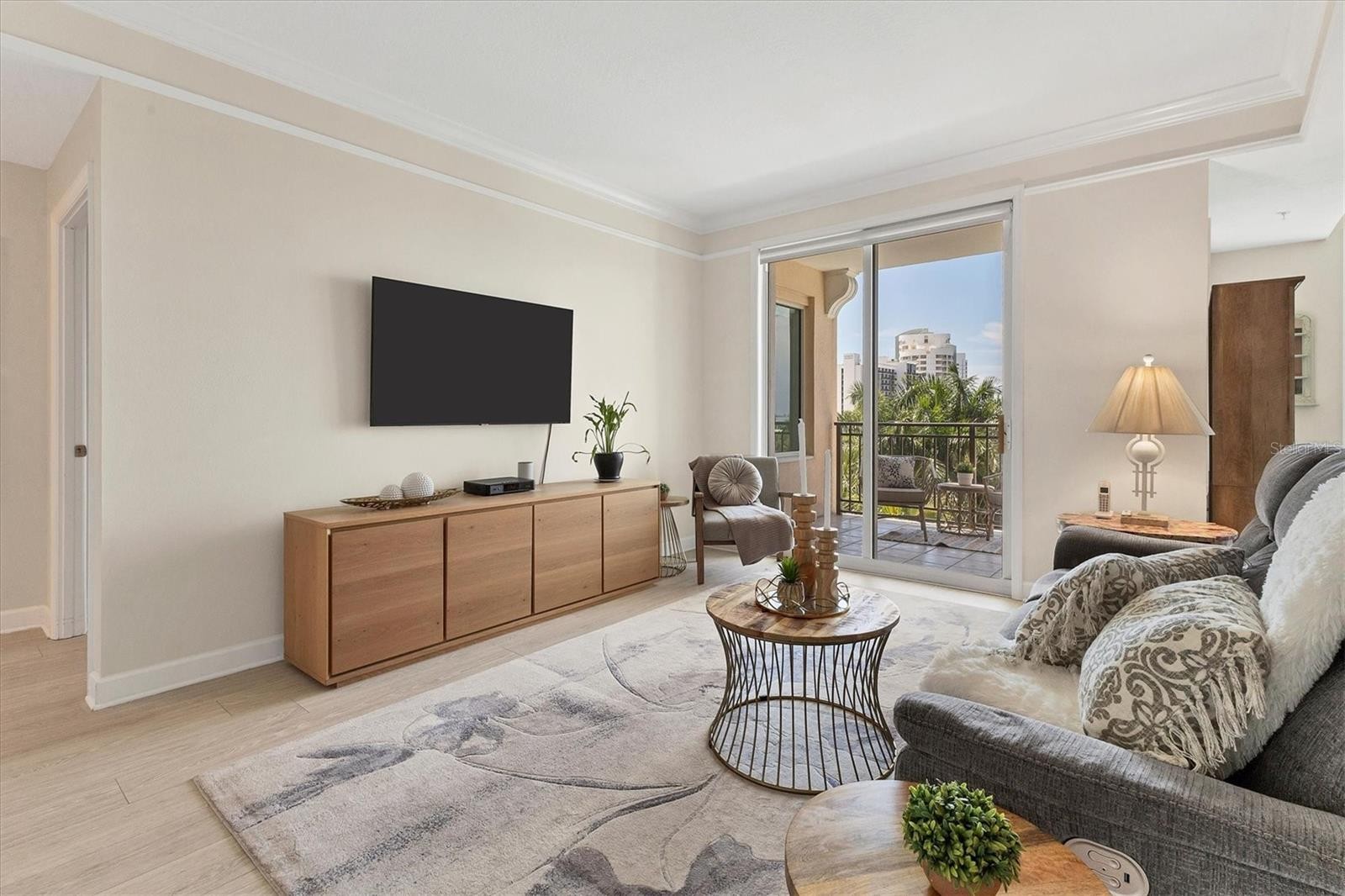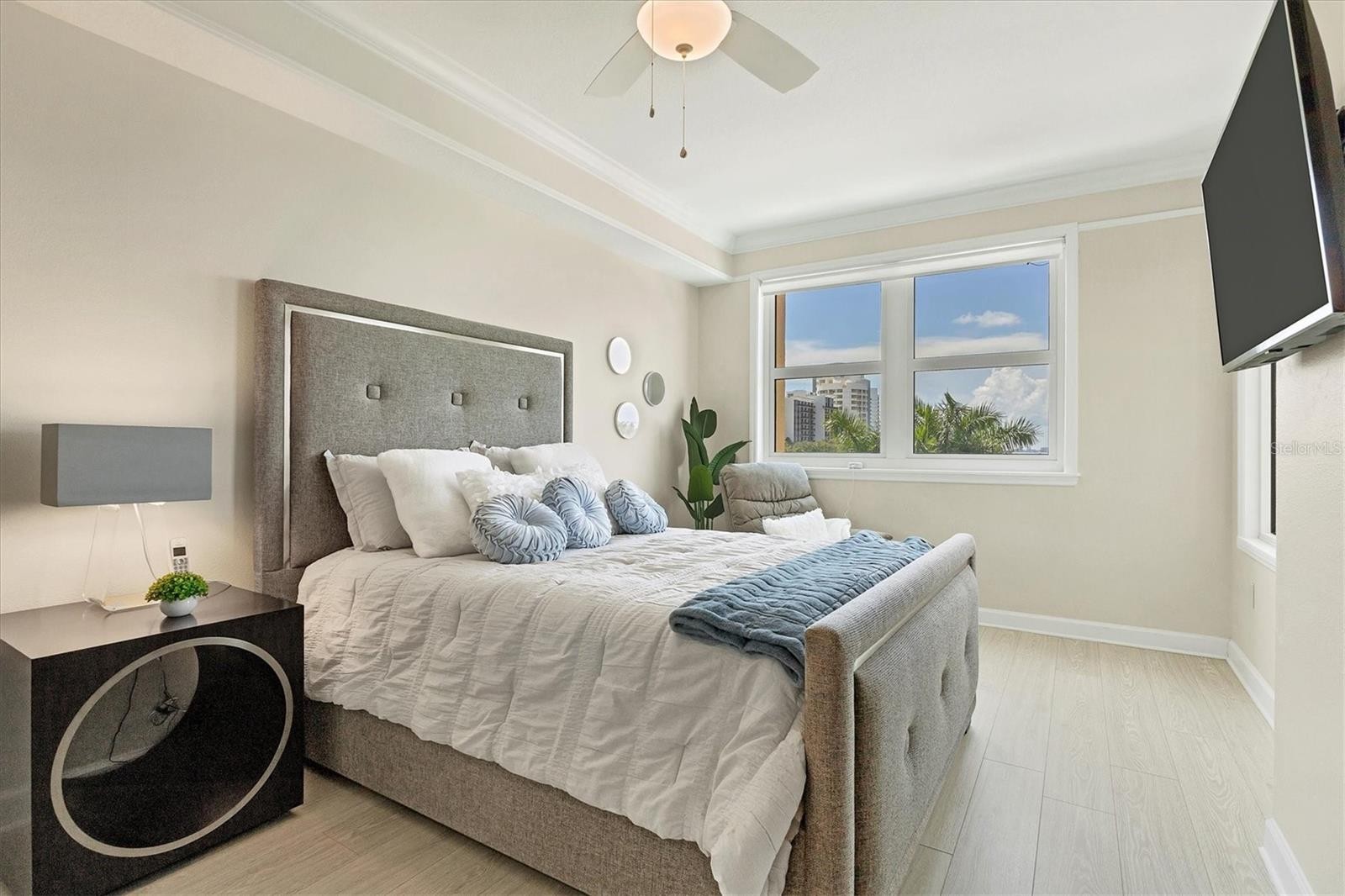 Experience the best of downtown Sarasota living from this beautifully positioned fourth-floor residence at Renaissance, where sweeping views of the turquoise Sarasota Bay and the newly developed Bay Sarasota Park, a resilient green space creating a daily backdrop of coastal beauty and vibrant city energy. Offering 1,020 square feet of heated living space and 1,072 total square feet, this thoughtfully designed one-bedroom, one-bath residence delivers an exceptional blend of comfort, functionality and timeless appeal, ideal for full-time living and seasonal enjoyment. Natural light fills the interior through expansive windows, enhancing the open and inviting layout. The primary living area flows seamlessly into a versatile den, providing valuable additional space for a home office, reading lounge or guest accommodations. The kitchen is well-appointed with new appliances and ample cabinetry, while the updated bath features clean, modern finishes. A large walk-in closet adds generous storage, and the residence has been tastefully maintained to support an effortless lock-and-leave lifestyle. Indoor and outdoor living converge beautifully as tranquil bay views become part of everyday living. There is a spacious balcony off the living area with westerly views. Beyond the residence, Renaissance offers a comprehensive suite of resort-style amenities within a secure, 16-story high-rise known for its enduring construction and thoughtful design. Residents enjoy landscaped plazas, fountains, a grand Italian villa-inspired entrance and a striking lobby with concierge services. The building features key-card access, a staffed front desk, overnight security, on-site management, a clubroom, business center, fitness center and a private resident theater. Renaissance was engineered with exceptional attention to structural integrity. Constructed with reinforced concrete beams, fireproofed materials and pilings drilled deep into the ground, the building was designed to perform like a fortress. The property is in Flood Zone X and outside the floodplain. The lobby and guest parking are elevated more than 15 feet above base sea level, providing additional peace of mind. This residence includes one assigned, secured parking space on the first floor of the garage, also elevated over 15 feet above sea level. Ideally in the heart of Sarasota’s cultural district, Renaissance places residents moments from world-class dining, performing arts, galleries, waterfront promenades and year-round social events. This is a rare opportunity to enjoy downtown Sarasota living with Sarasota Bay views, exceptional security and outstanding value. Schedule your private tour today before this updated residence is gone.