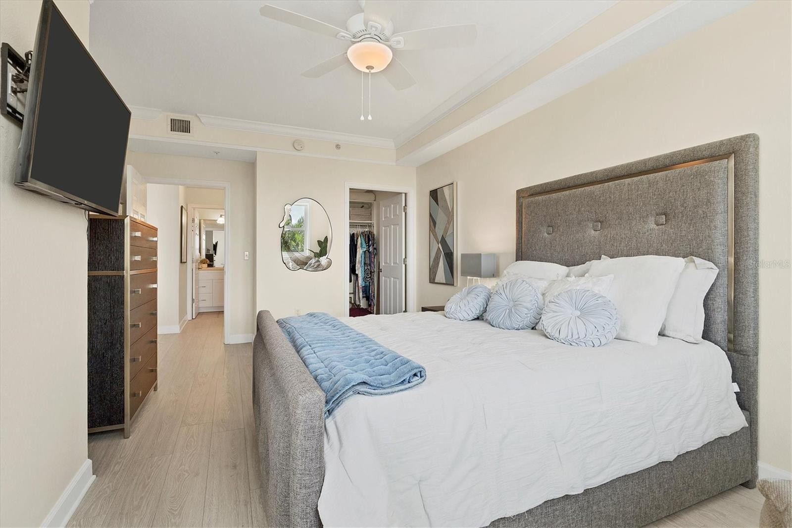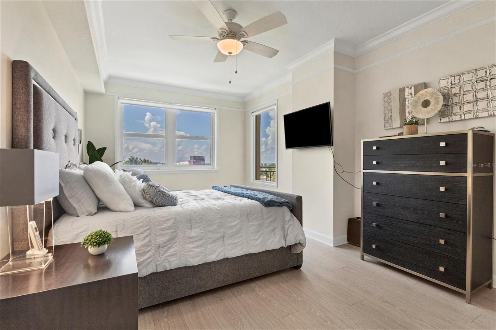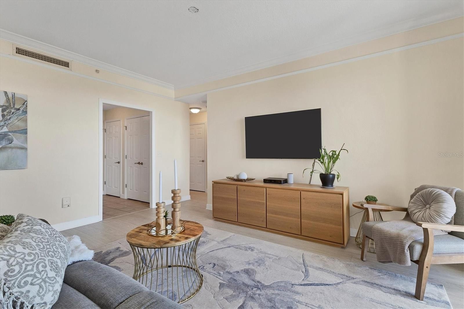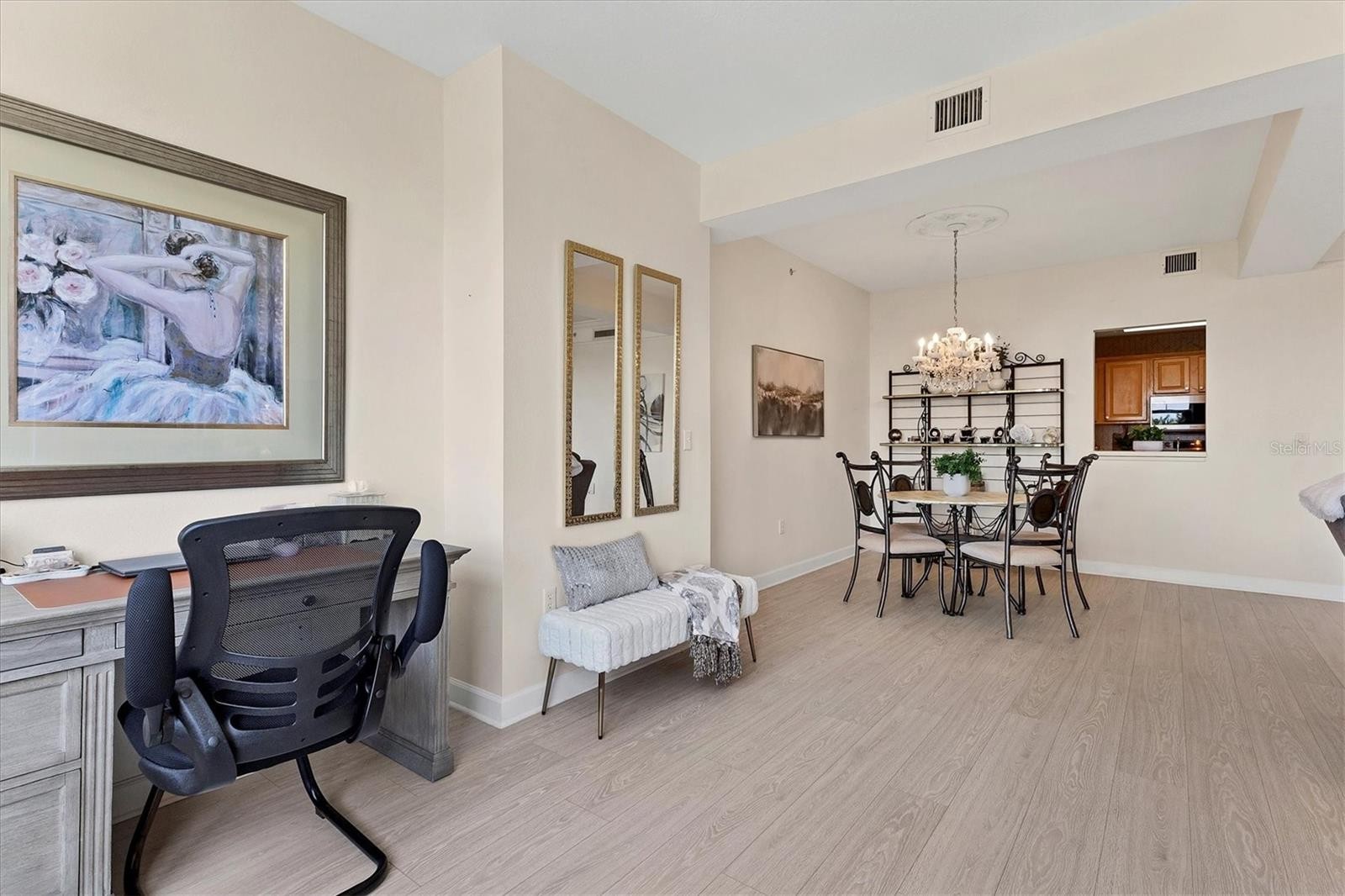 Experience the best of downtown Sarasota living from this beautifully positioned fourth-floor residence at Renaissance, where sweeping views of the turquoise Sarasota Bay and the newly developed Bay Sarasota Park, a resilient green space creating a daily backdrop of coastal beauty and vibrant city energy. Offering 1,020 square feet of heated living space and 1,072 total square feet, this thoughtfully designed one-bedroom, one-bath residence delivers an exceptional blend of comfort, functionality and timeless appeal, ideal for full-time living and seasonal enjoyment. Natural light fills the interior through expansive windows, enhancing the open and inviting layout. The primary living area flows seamlessly into a versatile den, providing valuable additional space for a home office, reading lounge or guest accommodations. The kitchen is well-appointed with new appliances and ample cabinetry, while the updated bath features clean, modern finishes. A large walk-in closet adds generous storage, and the residence has been tastefully maintained to support an effortless lock-and-leave lifestyle. Indoor and outdoor living converge beautifully as tranquil bay views become part of everyday living. There is a spacious balcony off the living area with westerly views. Beyond the residence, Renaissance offers a comprehensive suite of resort-style amenities within a secure, 16-story high-rise known for its enduring construction and thoughtful design. Residents enjoy landscaped plazas, fountains, a grand Italian villa-inspired entrance and a striking lobby with concierge services. The building features key-card access, a staffed front desk, overnight security, on-site management, a clubroom, business center, fitness center and a private resident theater. Renaissance was engineered with exceptional attention to structural integrity. Constructed with reinforced concrete beams, fireproofed materials and pilings drilled deep into the ground, the building was designed to perform like a fortress. The property is in Flood Zone X and outside the floodplain. The lobby and guest parking are elevated more than 15 feet above base sea level, providing additional peace of mind. This residence includes one assigned, secured parking space on the first floor of the garage, also elevated over 15 feet above sea level. Ideally in the heart of Sarasota’s cultural district, Renaissance places residents moments from world-class dining, performing arts, galleries, waterfront promenades and year-round social events. This is a rare opportunity to enjoy downtown Sarasota living with Sarasota Bay views, exceptional security and outstanding value. Schedule your private tour today before this updated residence is gone.
