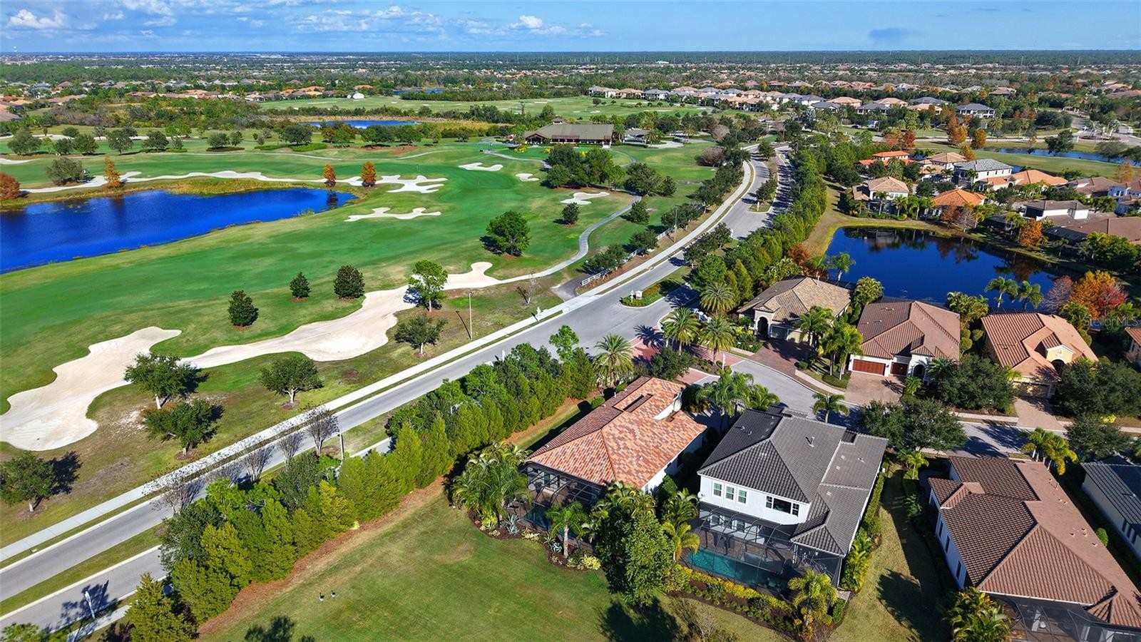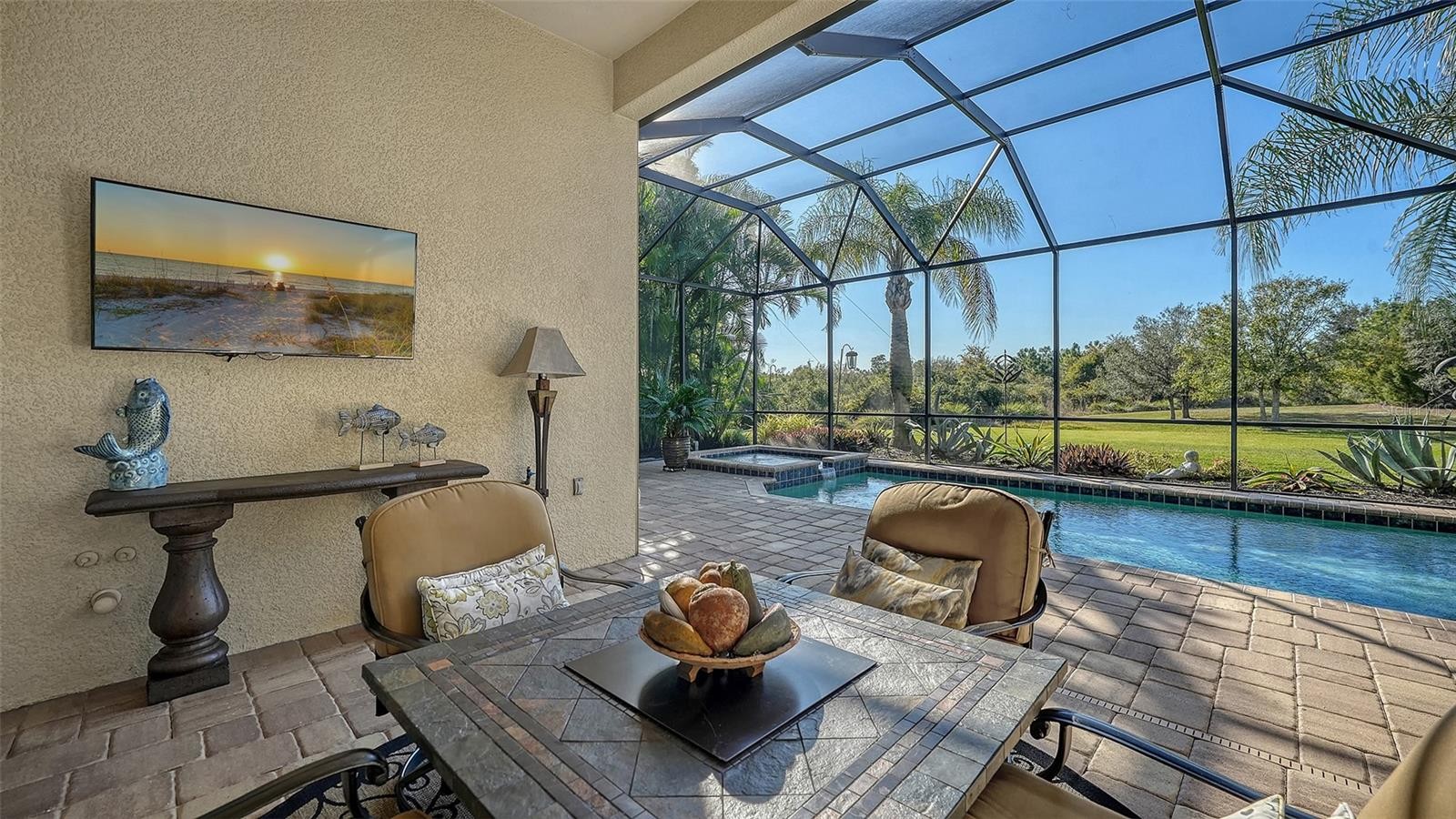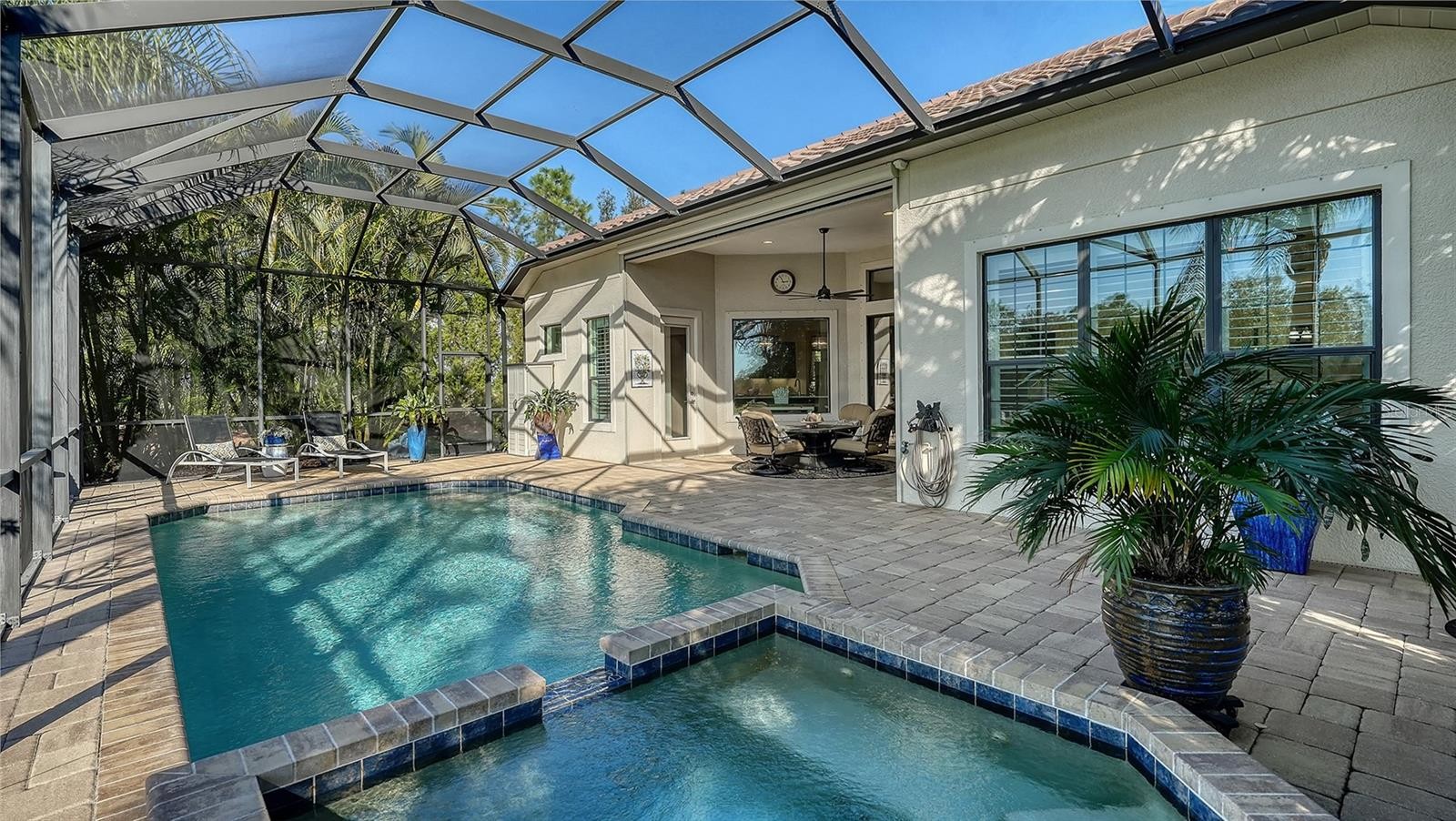 Privately positioned on an oversized homesite within the gated enclave of Country Club East, this beautifully appointed three-bedroom, 3.5-bath residence with a private office enjoys tranquil preserve views that create a serene, park-like backdrop for everyday living. The setting offers a rare sense of space and privacy while embracing the best of Florida’s indoor-outdoor lifestyle. A welcoming entry through double front doors introduces a light-filled interior where a private office with double doors sits just off the foyer. The open great room is designed for both comfort and entertaining, highlighted by soaring ceilings, tray accents, and a sleek wet bar with stone countertop. Large sliding glass doors frame peaceful preserve views and lead seamlessly to the lanai beyond. The chef’s kitchen is thoughtfully designed with rich wood cabinetry, stone countertops, stainless steel appliances, upgraded lighting, and a generous island with breakfast bar. A built-in desk tucked beside a picture window provides a charming workspace with views of the surrounding greenery, while the formal dining area with crown molding and designer lighting sets the stage for memorable gatherings. The primary suite is a true retreat, featuring luxury vinyl plank flooring, plantation shutters, a tray ceiling, and two walk-in closets. The spa-inspired bath offers split vanities, a beautifully tiled walk-in shower, and a private water closet. Two additional guest suites, each with its own bath, are positioned at the front of the home to ensure privacy for family and guests. Outdoor living takes center stage on the expansive lanai with a heated pool and spa, dedicated pool bath, and breathtaking sunset views over the preserve—ideal for relaxing or entertaining. Notable upgrades include a side-entry three -car garage, enhanced landscaping, a Culligan whole-house water system, sealed attic for energy efficiency, and more. Residents of Country Club East enjoy gated security, scenic walking trails, a fitness center, and multiple community pools, along with exclusive access to The Retreat and The Residents Club offering resort-style amenities, dining, and social spaces. Optional membership to Lakewood Ranch Golf & Country Club provides access to championship golf, tennis, pickleball, state-of-the-art fitness facilities, and multiple clubhouses.