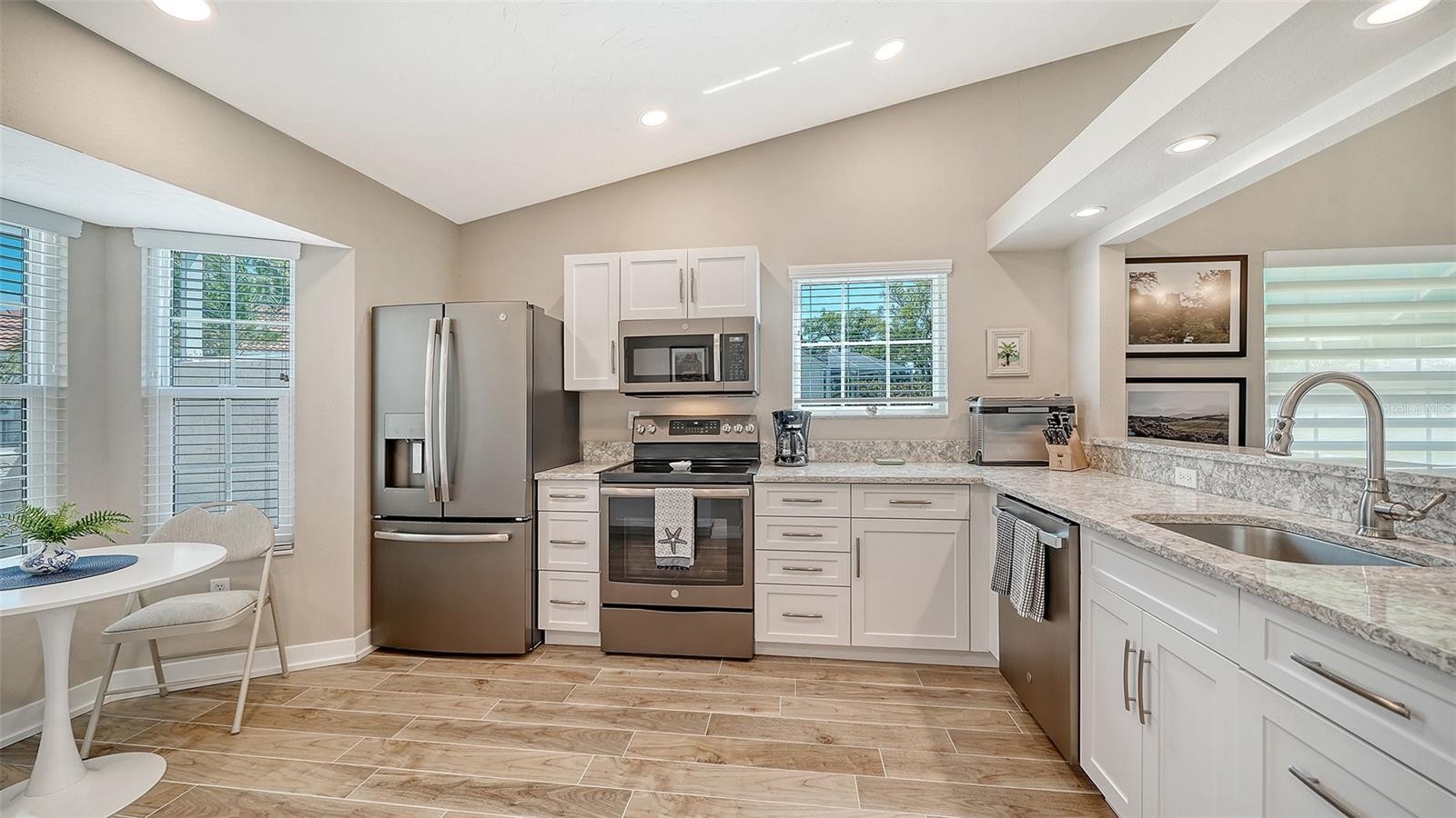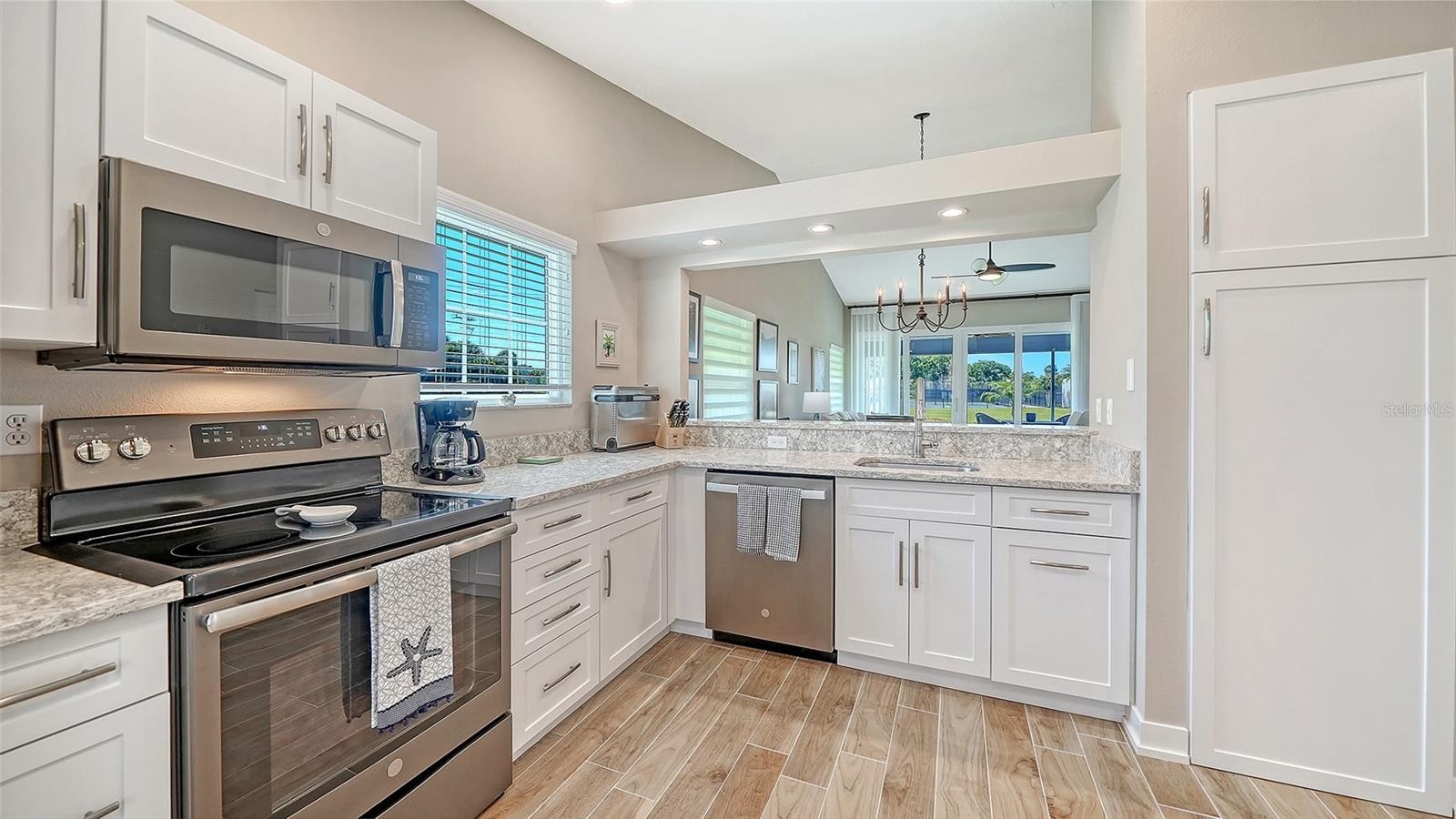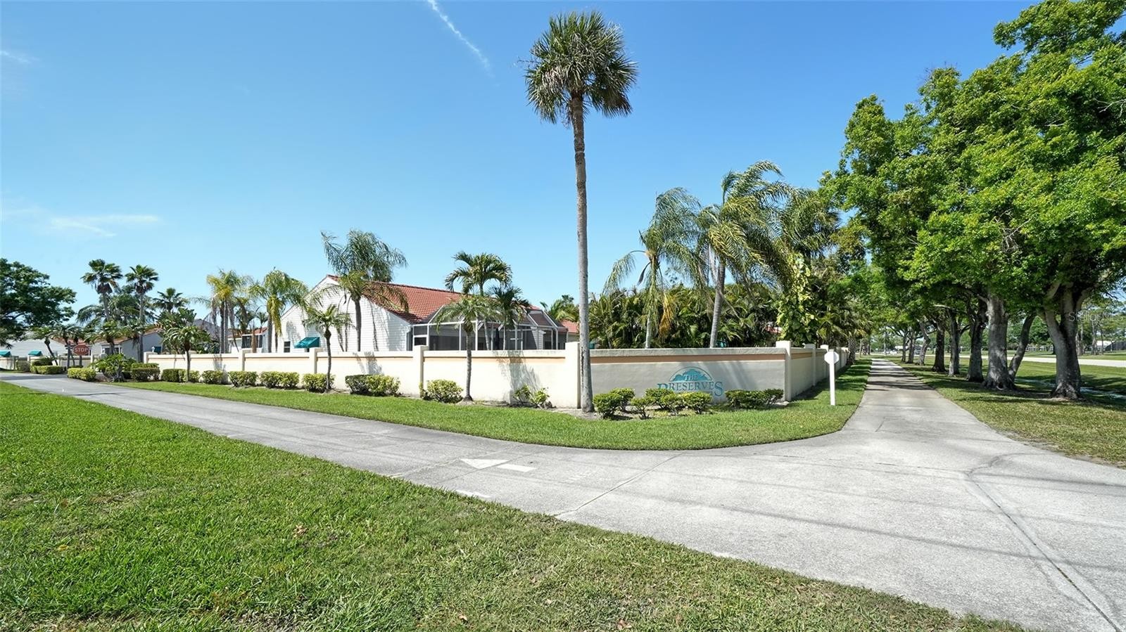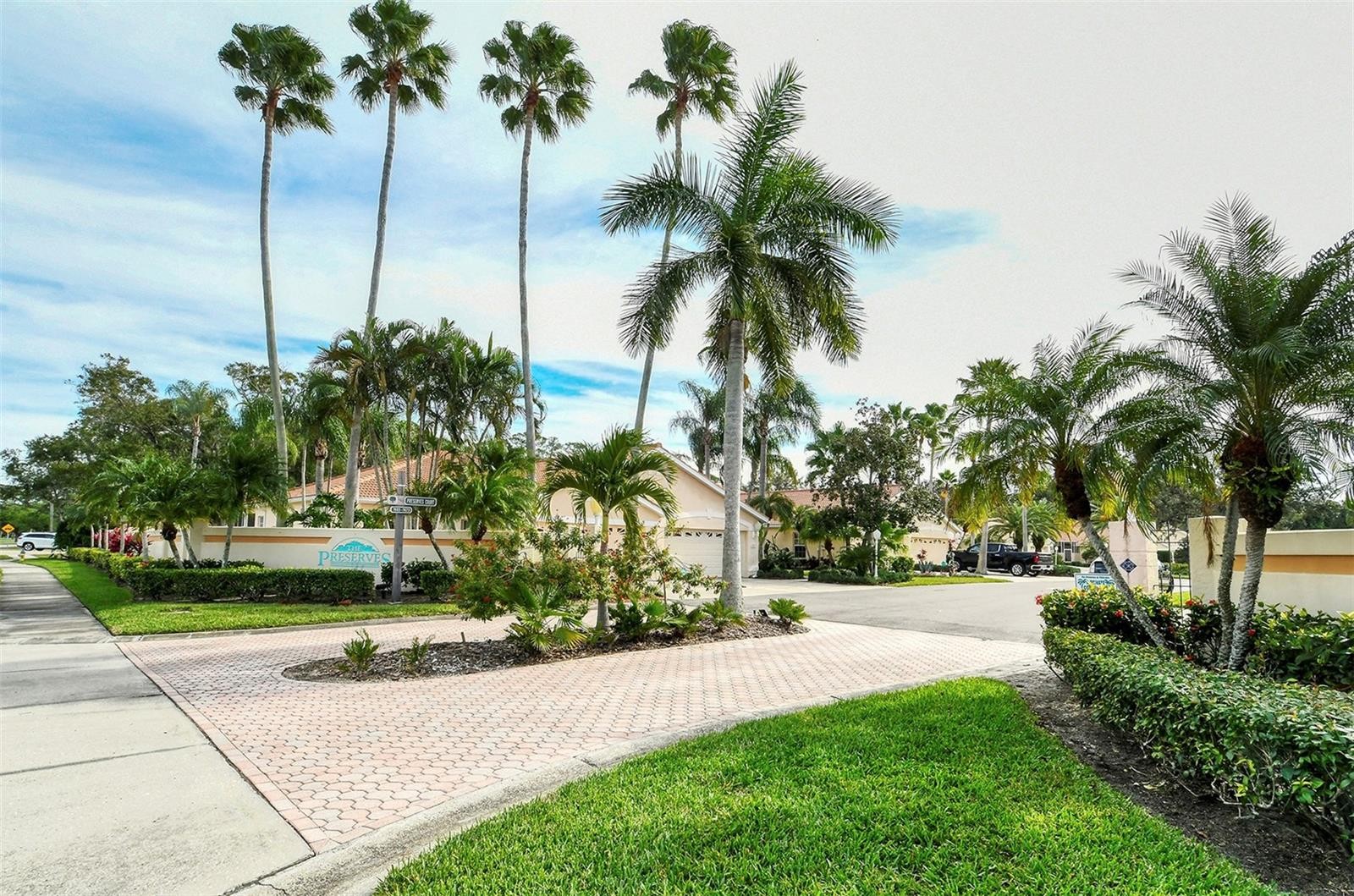 Sleek. Modern. Immaculate. Just listed in the fabulous and intimate community of "The Preserves at Palm Aire" this split plan villa features an open concept and is light, bright and beautifully updated with thick stone counters, crisp white cabinets, very nice fans and fixtures and gorgeous wood plank style tile. Smart floorplan. Expansive and private front courtyard makes for a wonderful entertaining space.. back lanai overlooks deep green space with tennis courts in the distance. Large 2 car garage with recently finished epoxy floor. Lovely and vibrant community with a pool for your use, maintenance free lawn care, lush landscaping and a location that can't be beat. Just moments to the fabulous UTC mall, the new Whole Foods, Fresh Market, fantastic dining options and just 15 minutes to downtown Sarasota and the world famous sugar sand beach of Siesta Key. The optional Palm Aire Country Club is within walking distance. There are two 18 hole golf courses, fitness center, 10 tennis and pickle ball courts, Jr.. Olympic size heated pool and a fun clubhouse with a scrumptious Sunday brunch and other activities throughout the year. Come and live the Florida dream in one of the best cities you could ever find.