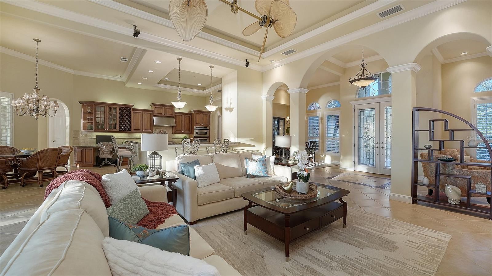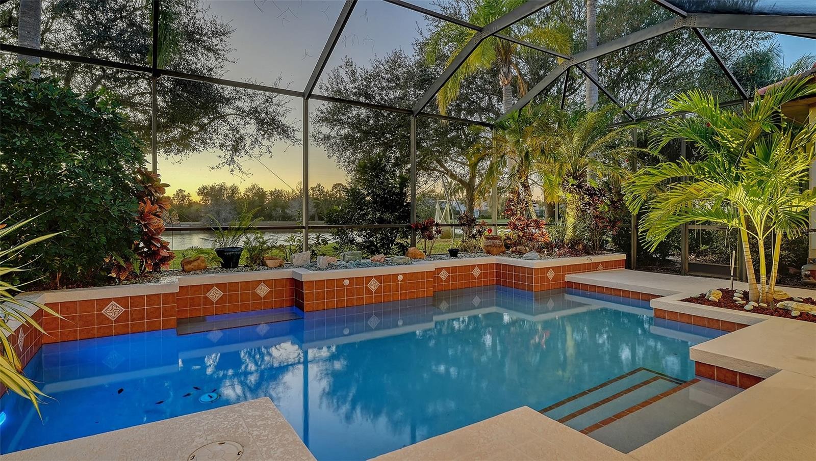 Set against a stunning backdrop of tranquil water and preserved natural beauty, this custom John Cannon residence delivers refined elegance within the gated Lakewood Ranch Country Club. Designed with an open, entertainer-friendly floor plan, the home offers three bedrooms, three baths, office, oversized two-car side-load garage with a separate golf cart garage entry, all showcasing exceptional craftsmanship throughout. Architectural details shine with tray ceilings, crown moldings, custom built-ins, and timeless tile flooring in the main living spaces. The gourmet kitchen is both stylish and functional, featuring rich wood cabinetry, granite countertops, stainless steel appliances, tile backsplash, breakfast bar, and a built-in desk. A casual dining area framed by an expansive aquarium window provides serene pool and preserve views. The private owner’s retreat offers a spacious custom walk-in closet and direct access to the lanai, while the spa-inspired bath features dual vanities, a soaking tub, and a large walk-in shower. Sliding glass doors from the family room open to an oversized covered lanai, where a heated pool is surrounded by lush landscaping and breathtaking water and preserve vistas—perfect for relaxing or entertaining year-round. Residents of Lakewood Ranch Country Club enjoy access to an unmatched Florida lifestyle, including four championship golf courses, lighted tennis courts, a private athletic facility, polo club, scenic parks, and close proximity to University Town Center, Main Street, and premier dining and shopping. This is luxury living at its finest in one of the area’s most coveted communities.