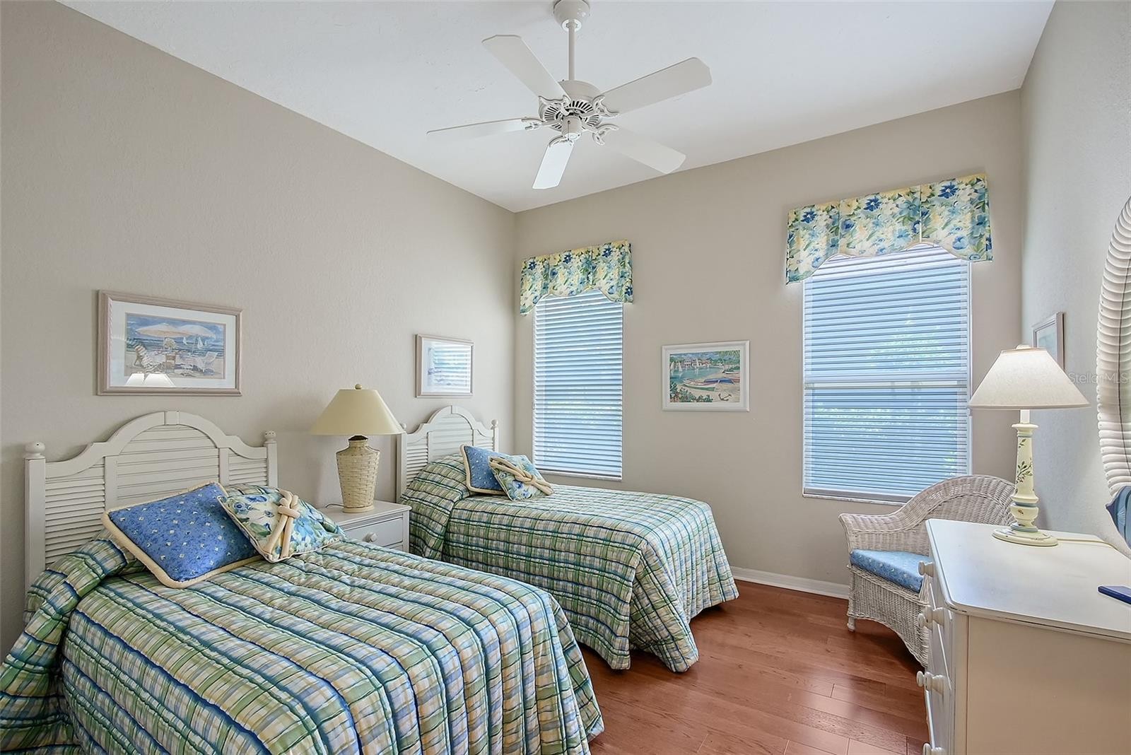 Welcome to this beautifully maintained 2-bedroom, 2-bath home with a spacious den, located in the desirable, landscape-maintained neighborhood of Ascot in the award-winning University Park Country Club. With a NEW ROOF installed in MAY 2025, this home blends comfort, style, and peace of mind. Throughout the home, you'll find a combination of neutral tile and engineered hardwood flooring, offering both durability and low-maintenance living. As you approach, a brick-pavered driveway and walkway lead you to an inviting glass double front door with a transom window, framed by lush, mature landscaping that enhances the home’s curb appeal. Step inside to a bright and inviting foyer with high tray ceilings. Just off the foyer, French doors open to a versatile den/office featuring Bermuda shutters, accent windows, and a ceiling fan—perfect for working from home or relaxing with a good book. To the right, the guest wing offers a generously sized bedroom, as well as a full bathroom with a tub/shower combination and quartz countertops. Nearby, a well-appointed laundry room includes washer and dryer, a utility sink, built-in ironing board, large utility closet, and access to the 2-car garage with painted floors. The open-concept living area is perfect for entertaining, with a spacious dining room featuring tray ceilings flows seamlessly into the light and airy kitchen. The kitchen is a chef’s dream, offering BRAND NEW STAINLESS-STEEL APPLIANCES, quartz countertops, a breakfast bar, pantry closet, recessed lighting, and a sunny eat-in area with access to the lanai. The family room, open to the kitchen, has triple sliding doors with a transom window that lead to your private outdoor oasis. The primary suite is a tranquil retreat with a cozy seating area, accent window, and private access to the lanai. The ensuite bath includes dual vanities with quartz countertops, a zero-entry walk-in shower, and a spacious walk-in closet complete with a custom closet system. Step outside to enjoy the Florida lifestyle on your screened lanai with brick pavers surrounding the sparkling pool and take in serene views of the pond beyond. This home is also available furnished, making it truly move-in ready. Don't miss your opportunity to live in one of the area's most sought-after communities, known for its championship golf, tennis, and vibrant social lifestyle. University Park Country Club is consistently ranked one of the top courses in Florida featuring 27 holes of championship golf; tennis and pickleball; fitness center, croquet – as well as an array of social and group activities. Just a 15-minute drive outside this peaceful enclave is downtown Sarasota, with shopping, arts & theatres, museums, dining and entertainment, top-ranked healthcare, beaches and SRQ International Airport. Two miles east of UPCC is the convenience of I-75, University Town Center with 300 nationally known and homegrown shops, restaurants, fitness studios, services and attractions, the new Mote Marine aquarium and the Nate Benderson Park, home of world-class rowing events. Enjoy the club amenities with the required minimum of a Social membership at UPCC, which is owned by the residents through a Recreation District.