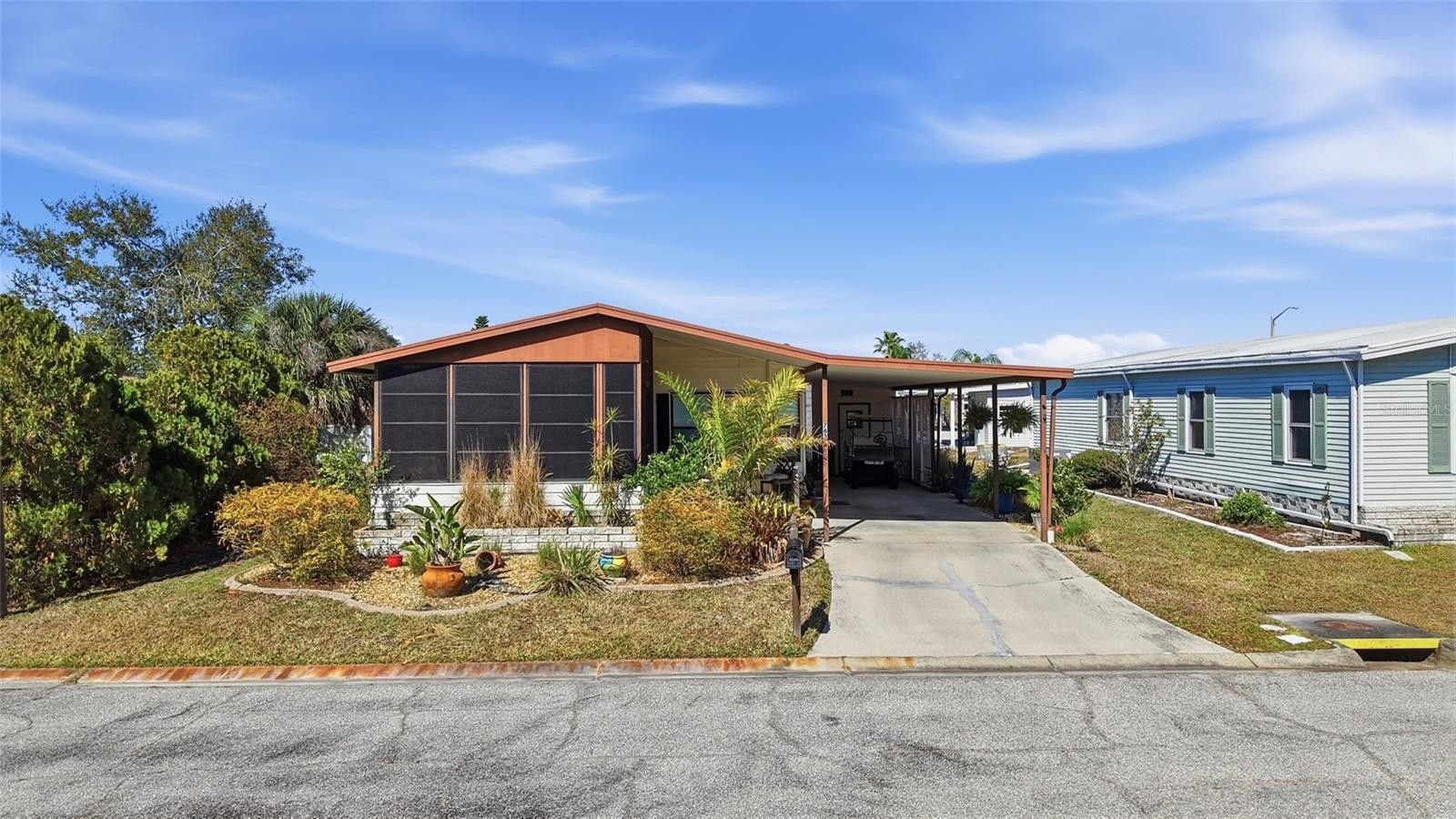 Welcome to this TURNKEY 2 bedroom, 2 bathroom manufactured home with a carport with an included Golf Cart, located in the active 55+ Harbor Cove community in North Port. CLICK ON THE VIRTUAL TOUR LINK 1 FOR THE VIDEO AND VIRTUAL LINK 2 FOR THE 3D TOUR. This bright and airy home features luxury vinyl flooring throughout, and large windows that fill the space with natural light. The open living and dining area is ideal for entertaining friends and family. The kitchen offers all appliances, ample counter space, and plenty of cabinetry for storage. The primary suite includes a walk-in closet and a private bathroom with a single-sink vanity and walk-in shower. The guest bedroom has a built-in closet with a conveniently located nearby bathroom. A Florida room expands your living and entertaining space, while a small back patio provides the perfect spot for grilling or enjoying the outdoors. A storage shed located under the carport houses the laundry area and offers additional storage for all your needs. Harbor Cove is an active resident-owned WATERFRONT community with a clubhouse, two community pools, an exercise gym, shuffleboard & bocce ball courts, a wood workshop, a private marina, and TONS of resident social events to keep you active year-round! Conveniently located near US 41 for easy access to local shopping, dining, LIVE entertainment, and award-winning beaches. Schedule your private showing TODAY!