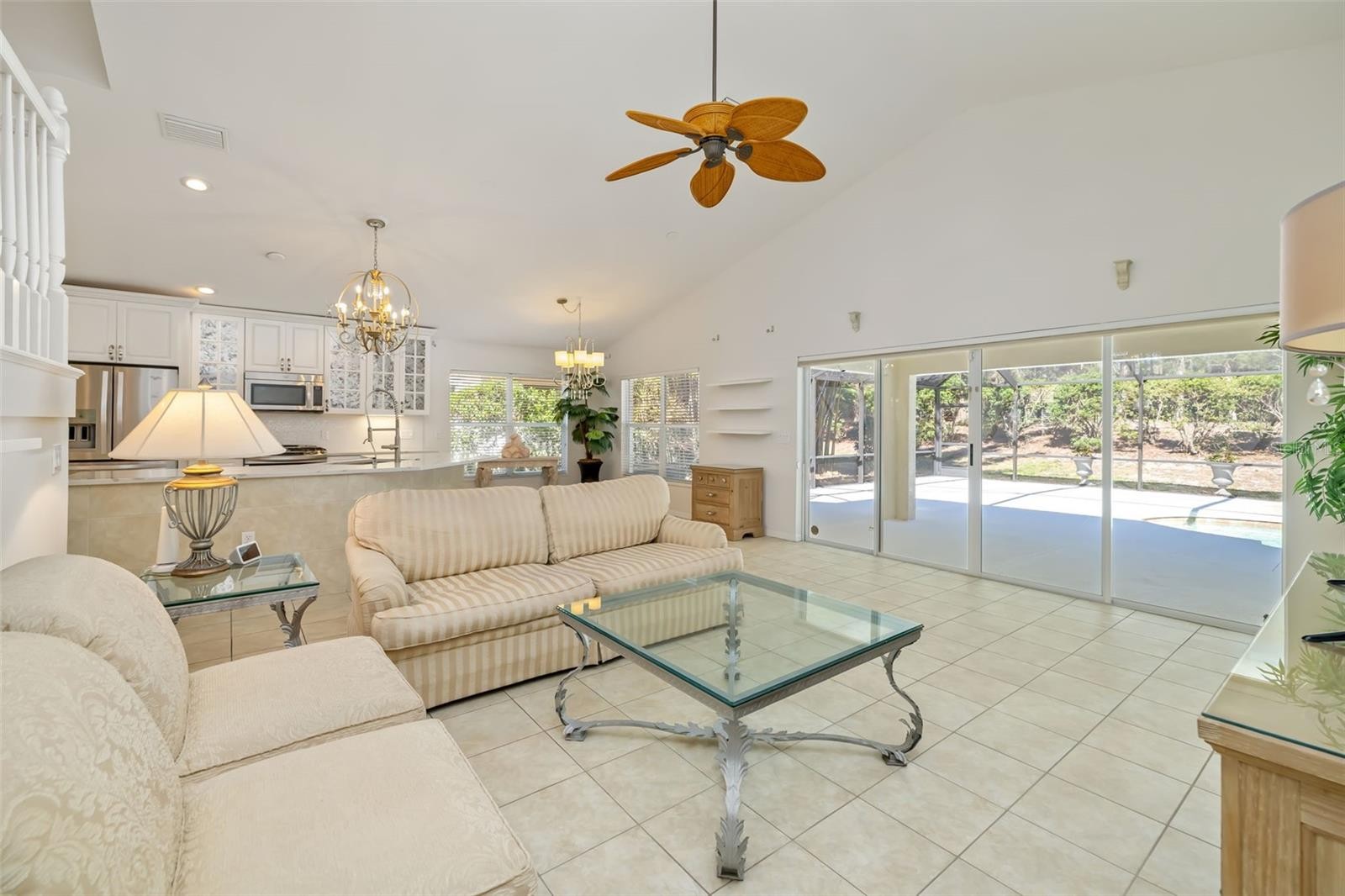 Set within the prestigious gates of Lakewood Ranch Country Club, this exceptional Neal-built residence offers 2,865 square feet of refined Florida living. Thoughtfully designed with four bedrooms 2.5 bathrooms inside, plus a private office or study. The home makes an immediate impression with soaring 18-foot ceilings in both the living and family rooms, filling the space with natural light and architectural drama. Rich wood flooring and tile span the entire first level, enhancing both elegance and functionality. Seamless indoor-outdoor living defines the home’s appeal. The expansive 47x37 screened lanai showcases a heated pool and an impressive 32x10 covered entertaining area, ideal for hosting gatherings or enjoying tranquil evenings. An additional private pool bath adds convenience and sophistication to the outdoor retreat. Recent upgrades and premium features include a new barrel tile roof, freshly painted interior, whole-house generator, newer air conditioning system, newer hurricane-impact windows on the second level, gas stove, gas water heater, and a spacious laundry room with utility sink. The two-car garage provides ample storage, while lawn and yard maintenance are included for effortless living. Residents enjoy access to a beautifully appointed community gathering area featuring a covered pavilion, pool, and spa. This is a rare opportunity to own a meticulously maintained home in one of Lakewood Ranch’s most sought-after country club communities.