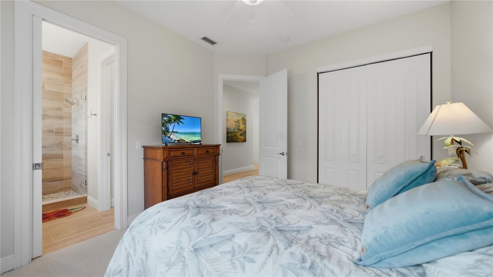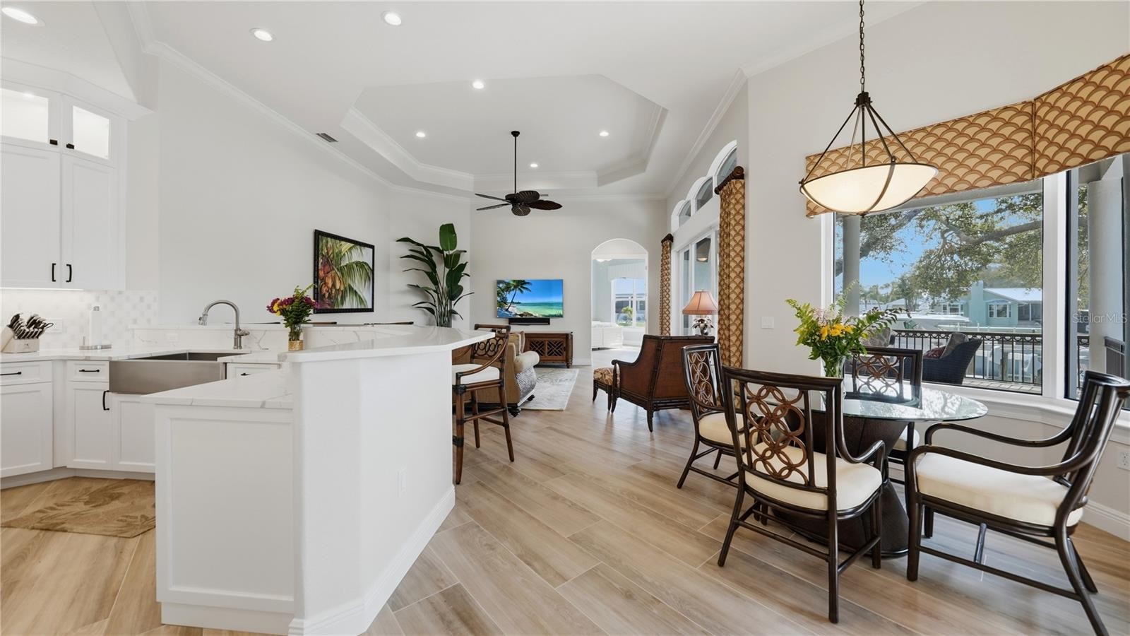 Welcome to 7637 Cove Terrace, an elegant 4-bedroom, 3 full bath and 2 half bath custom residence located in the coveted waterfront community of Southpointe Shores. Beautifully renovated in 2023, offering 3,799 square ft of heated living space, this meticulously maintained home combines Florida architectural style with modern comfort and exceptional boating amenities. Set on a 0.34-acre lot with over 100 feet of direct saltwater canal frontage, the property provides sailboat depth-water access plus a large private dock equipped with electric and water, and has been upgraded with TWO Boat lifts: a 40,000lb lift and an additional 10,000K lift, making it an outstanding choice for boating enthusiasts. Enjoy serene views of the wide canal with deep water access to the Intracoastal Waterway from your own backyard. Inside, the home welcomes you with an open, light-filled layout enhanced by tray ceilings, crown molding, stone counters, walk-in closets, and a spacious primary suite on the main floor. The gourmet kitchen, remodeled in 2024, features Thermador™ appliances, a walk-in pantry, a gas cooktop, range hood, dishwasher, refrigerator, and built-in island seating, flowing seamlessly into the living and dining areas — ideal for everyday living or entertaining. All three guest bedrooms are located on the main level, each offering generous dimensions and built-in closets, with Bedroom 2 featuring an en-suite bath. An oversized second-floor bonus space provides flexibility for a game room, media room, office, or guest retreat and includes a terrace, a powder room, a wet bar and a beverage refrigerator for ease of entertaining. The outdoor living space is exceptional: the private screened area hosts the heated pool and in-ground spa, both resurfaced in 2023, expansive covered lanai with new travertine, outdoor kitchen, balcony, fenced yard, and thoughtful exterior details such as French doors, lighting, rain gutters, and sliding glass doors. Whether relaxing or hosting, this home’s outdoor spaces offer year-round enjoyment. To ease your mind, the home is elevated to almost 12 feet, well above plane requirements. Additional features offering peace of mind and enhance your life include new hurricane grade front entry doors in 2024, the100.7 foot seawall was redone in 2015, the home’s interior and exterior was repainted in 2024. Two 5 ton Daikon Central air units, (2024 & 2016), electric heating, public utilities and gas, an additional 45 Gallon water heater dedicated for the primary suite, and a tile roof & block/stucco construction for durability. There is an attached 2 car garage with an additional oversized 1 car garage, great for extra storage and a third car. Nestled within the desirable Southpointe Shores community, this home benefits from top-rated school zones and a serene, upscale waterfront atmosphere. The neighborhood’s private boat ramp, available for a minimal annual fee, enhances its appeal for boating enthusiasts. Perfectly situated close to Sarasota’s premier shopping, dining, beaches, and marinas, the property still offers the tranquility, water access, and elevated coastal living that define a true retreat.