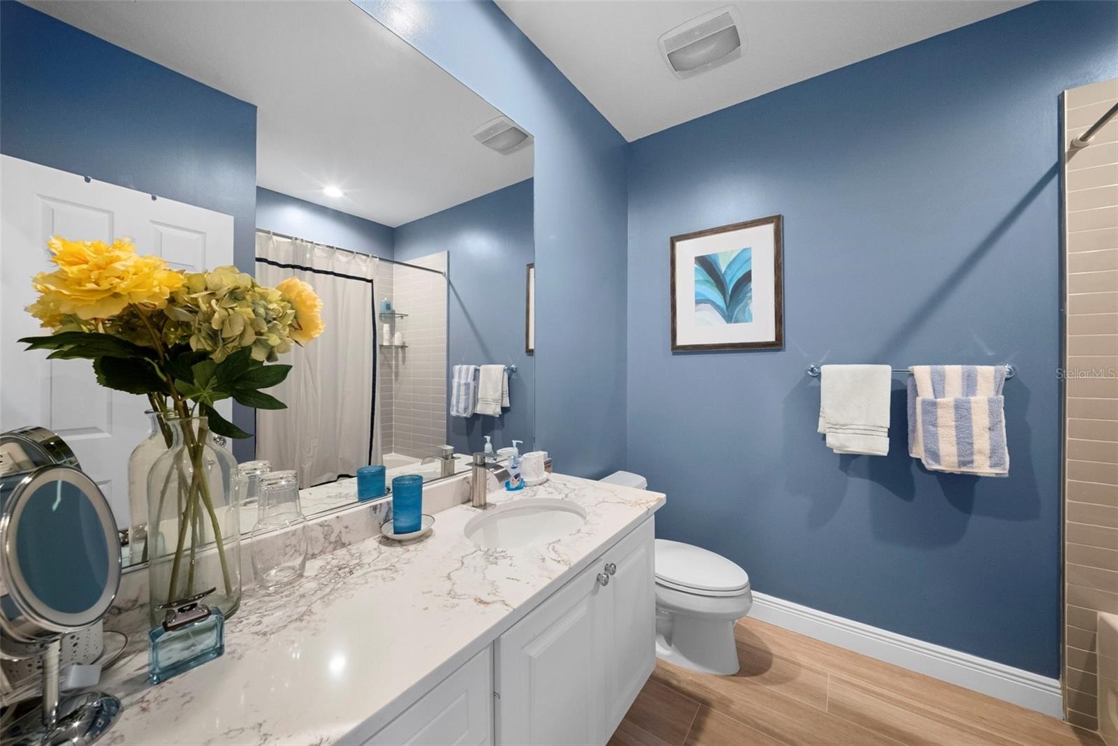 Beautifully updated 3-bedroom, 2.5-bath Catalina townhome in the highly desirable Villagewalk on Palmer Ranch, offering a dynamic, amenity-rich setting ideal for full-time living. The interior features a stylish kitchen with quartz countertops, stainless steel appliances, and a tile backsplash, along with updated bathrooms and two well-appointed guest bedrooms. Additional upgrades include IMPACT windows, accordion shutters on the great room sliders, a/c 2018, plantation shutters in bedrooms and remote-controlled blinds in the great room. Enjoy the serene views from the spacious screened lanai, surrounded by refreshed landscaping that enhances privacy and outdoor living. Residents enjoy an exceptional lineup of amenities including a restaurant and tiki bar, resort and lap pools (both geothermal heated), pickleball courts, and six lighted Har-Tru tennis courts. The community also features a fitness center, clubhouse, event space, boutique, hair salon, and on-site gas station. An HOA manager and activities coordinator provide a full calendar of events, creating an engaging and social atmosphere year-round. Miles of walking trails, scenic bridges, and lakes weave throughout the lushly landscaped grounds. A 24-hour manned gate adds security, while HOA fees include irrigation and landscaping for low-maintenance living. Conveniently located near Siesta Key Beach, the Legacy Trail, shopping, dining, medical facilities, and the arts. A perfect opportunity to enjoy an active, connected lifestyle in one of Sarasota’s most sought-after communities.