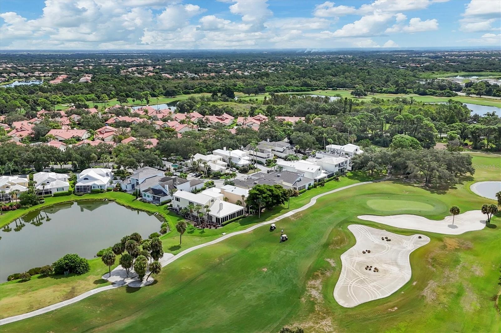 Experience the pinnacle of golf course living in this exquisitely updated residence, the largest home in Prestancia’s maintenance-free Enclave, and the only one positioned directly on both the TPC golf course and lake. Panoramic fairway and water views unfold from nearly every room, enhanced by expansive picture windows, sliding glass doors and a bright open floor plan. The main level showcases new seven-inch European oak plank floors and architecturally striking details including crown moldings, a dramatic staircase and a wood-burning fireplace. A spacious great room, dining room and Florida room flow seamlessly to an oversized deck ideal for entertaining or simply savoring the tranquil scenery. The chef’s kitchen features granite counters, a breakfast bar, Monogram appliances and a casual dining area overlooking the lake. The serene primary suite offers a sitting area, private patio access, custom-built closets and a recently renovated spa bath with porcelain tile, custom cabinetry, designer lighting, a walk-in shower and a soaking tub. A first-floor study/den—complete with a closet—can serve as a comfortable fourth bedroom. A private elevator conveniently connects the main level to the upper floor, where you’ll find a second primary suite perfect for guests or in-laws, along with a generous loft and an additional en-suite bedroom. Additional highlights include an epoxy-finished garage with custom cabinetry, additional outside parking space, underneath stairwell storage with glass blocks and lighting and plantation shutters throughout. Residents enjoy a private lap pool shared by just 18 homes, with optional TPC membership providing access to two Audubon-certified championship courses. Conveniently located within Palmer Ranch and just moments from Siesta Key and Nokomis beaches, Legacy Trail, and the shops and dining of Gulf Gate and downtown Sarasota.