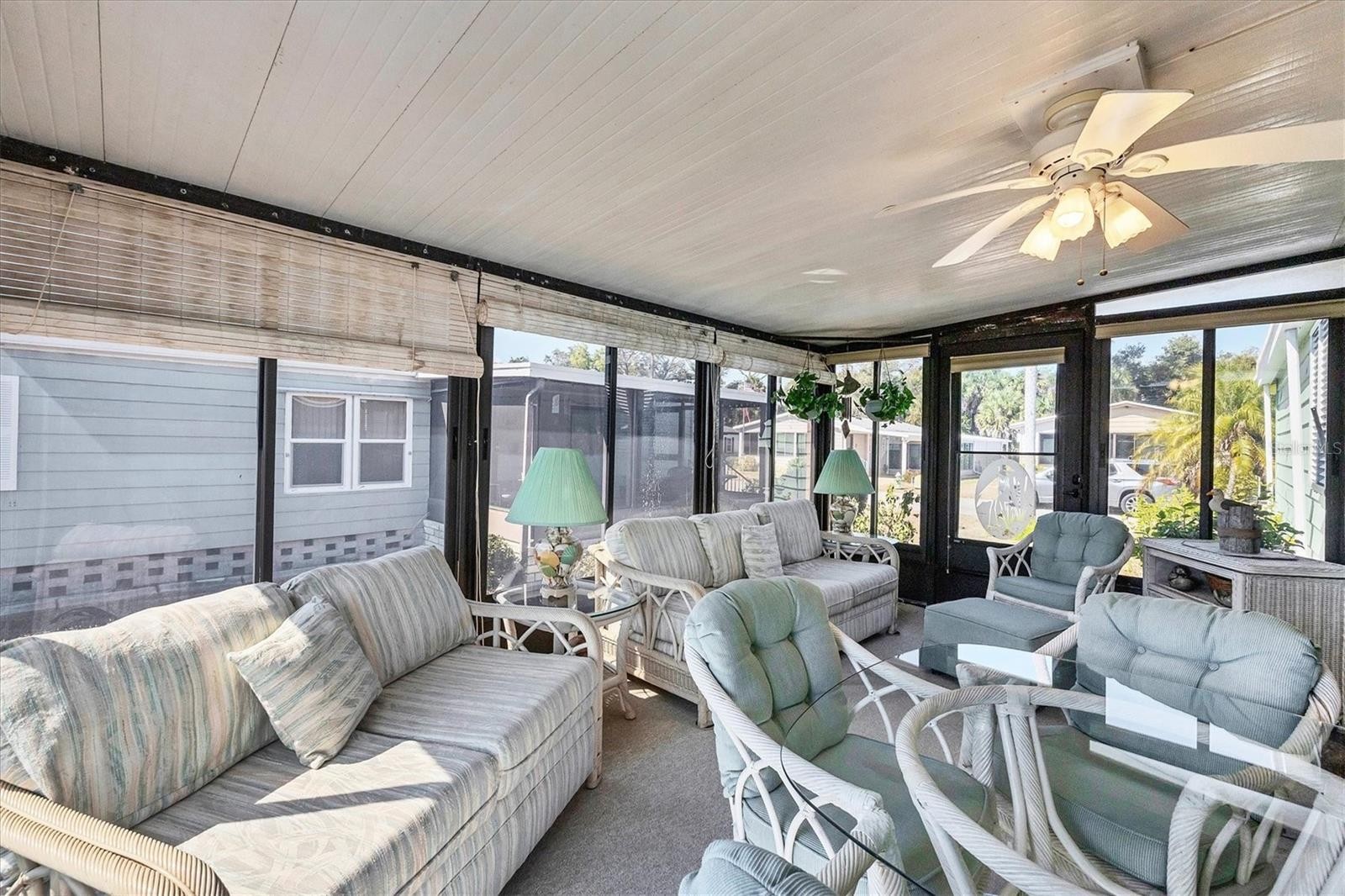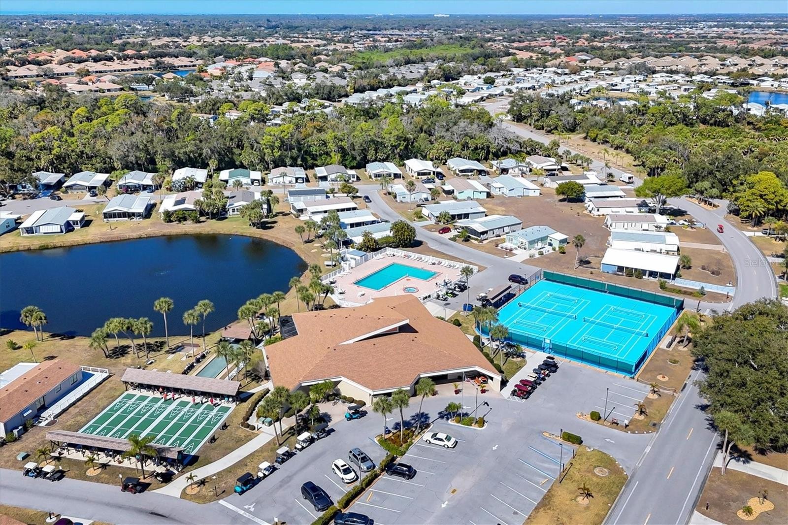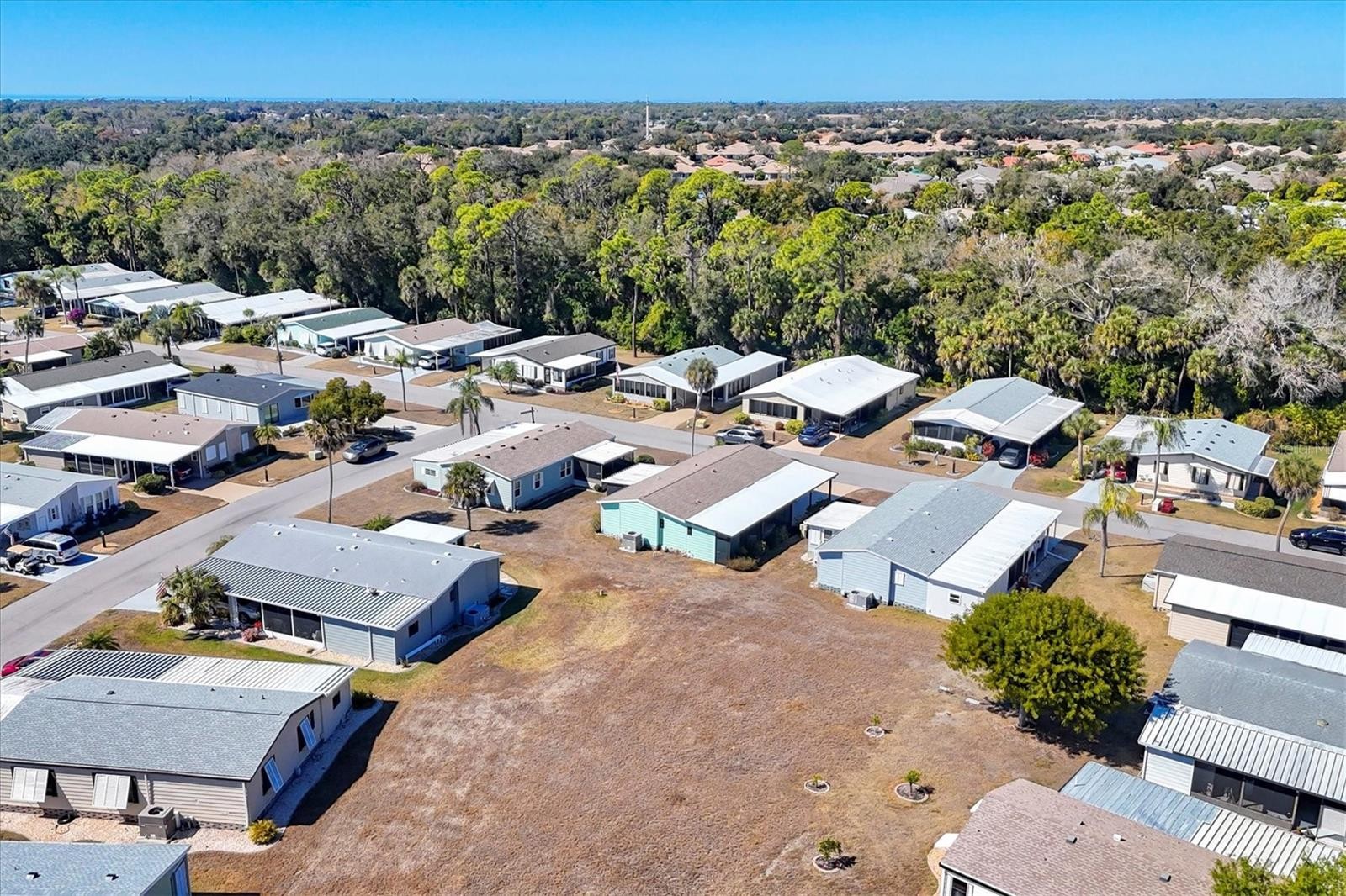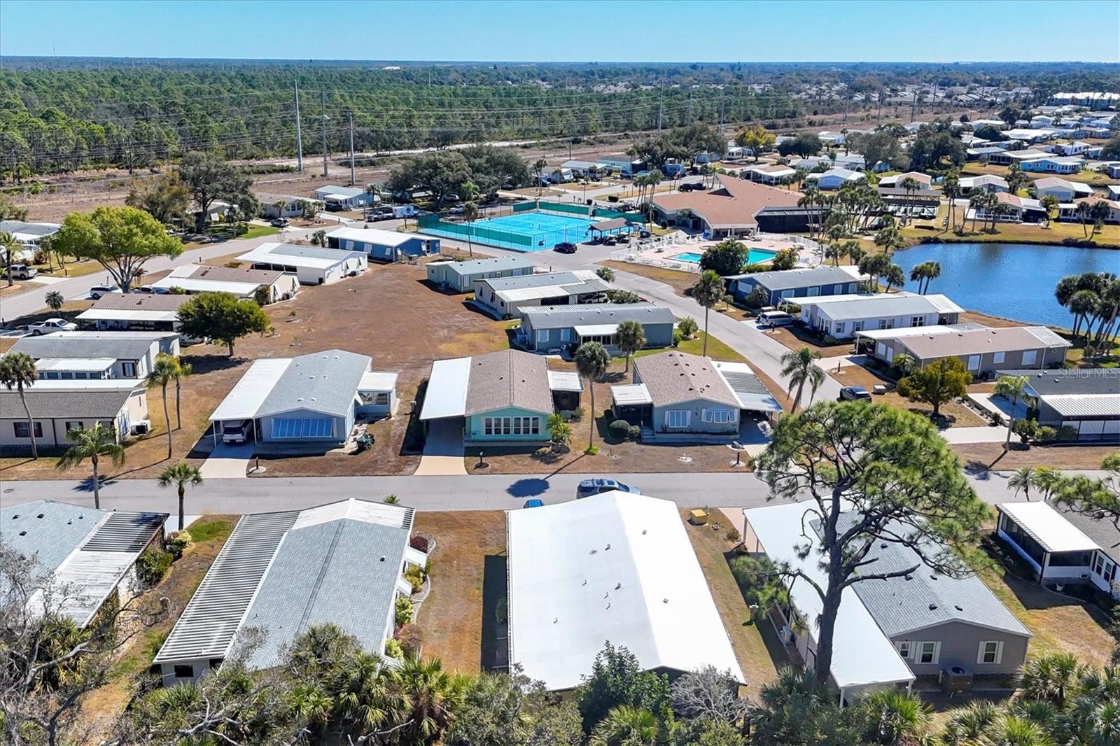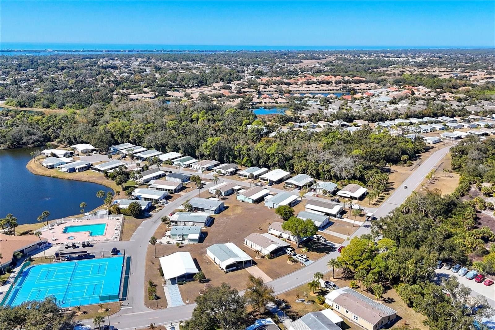 Located in an X Flood Zone, this highly sought-after gated community of Tangerine Woods, is an active and friendly, 55 and over community, where you own the land your home is located on. For your leisurely pleasure, this community provides you with a large heated pool and clubhouse, an exercise room and library, tennis and pickleball courts, walking trails, shuffleboard, and so much more! This light and bright, turnkey furnished home, boasts a kitchen that offers plenty of cupboards, a large pantry closet and a breakfast bar. The living room is also light and bright with a built-in wall unit. The dining room includes a built-in cabinet, which is off the kitchen and living room, and is just perfect for additional entertaining space. A spacious master bedroom, complete with a walk-in closet, is sure to provide all the comforts a master bedroom should, including an en suite bathroom, 2 sinks, a vanity, and a double door step in shower. The guest bedroom has a walk-in closet, 2 twin beds and access to the second full bathroom. The hallway off the kitchen, which provides additional storage space, is complete with counter/desk space, cupboards, and an exit to the outdoor lanai. The screened lanai off the carport is just perfect for enjoying our wonderful Florida weather. The shed is complete with its washer and dryer, and tankless water heater. The low monthly HOA payment of $226 includes cable TV, internet and grass cutting, and Tangerine Woods is pet friendly! This community is close to Historic Dearborn St., which provides casual dining, evening entertainment, locally owned shops and a Farmers Market on Thursdays. The local beaches are just 4 miles away, as well as many local golf courses, and world class fishing! Make your appointment today to see this nicely cared for home, as it won't last long!