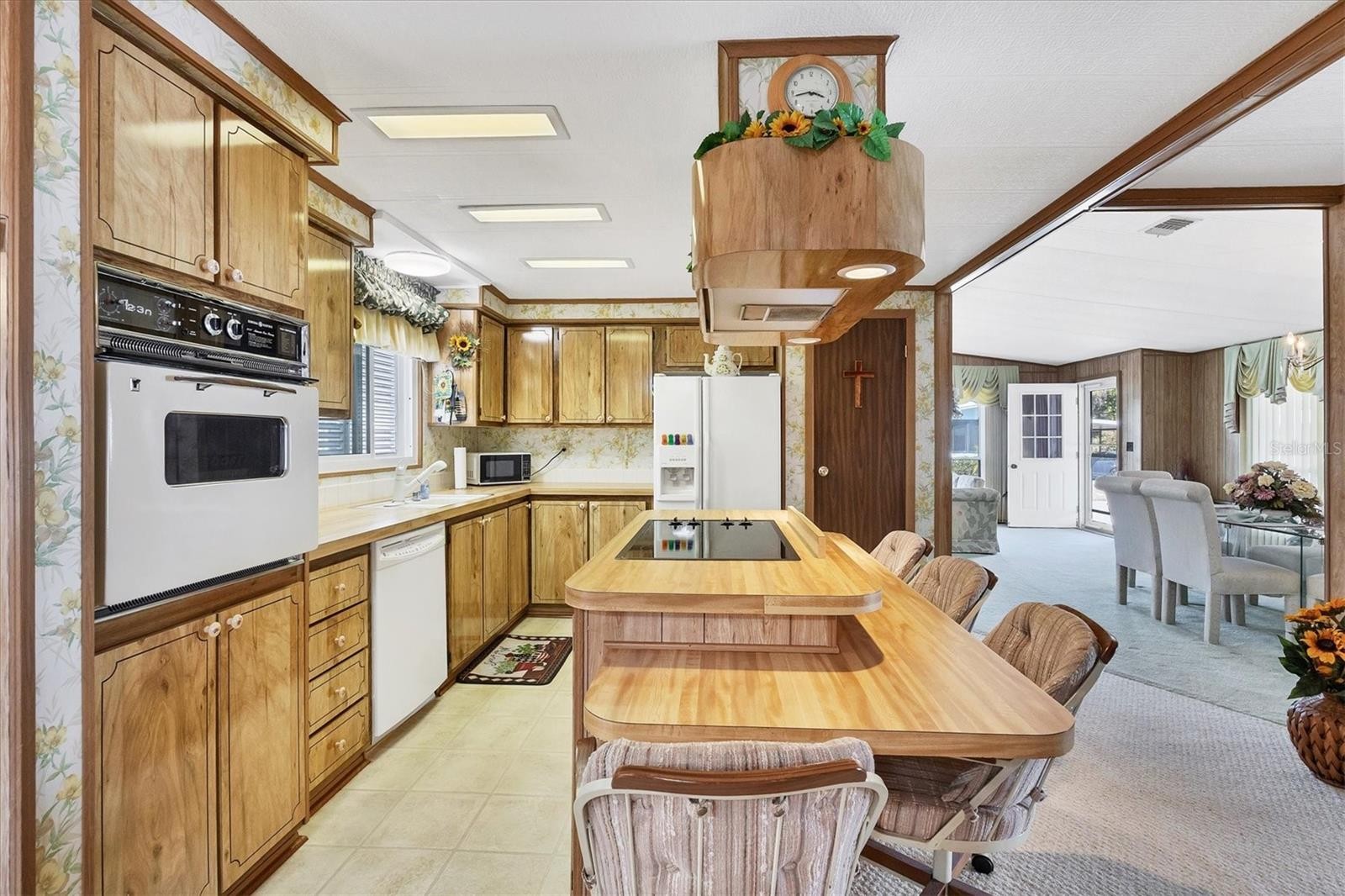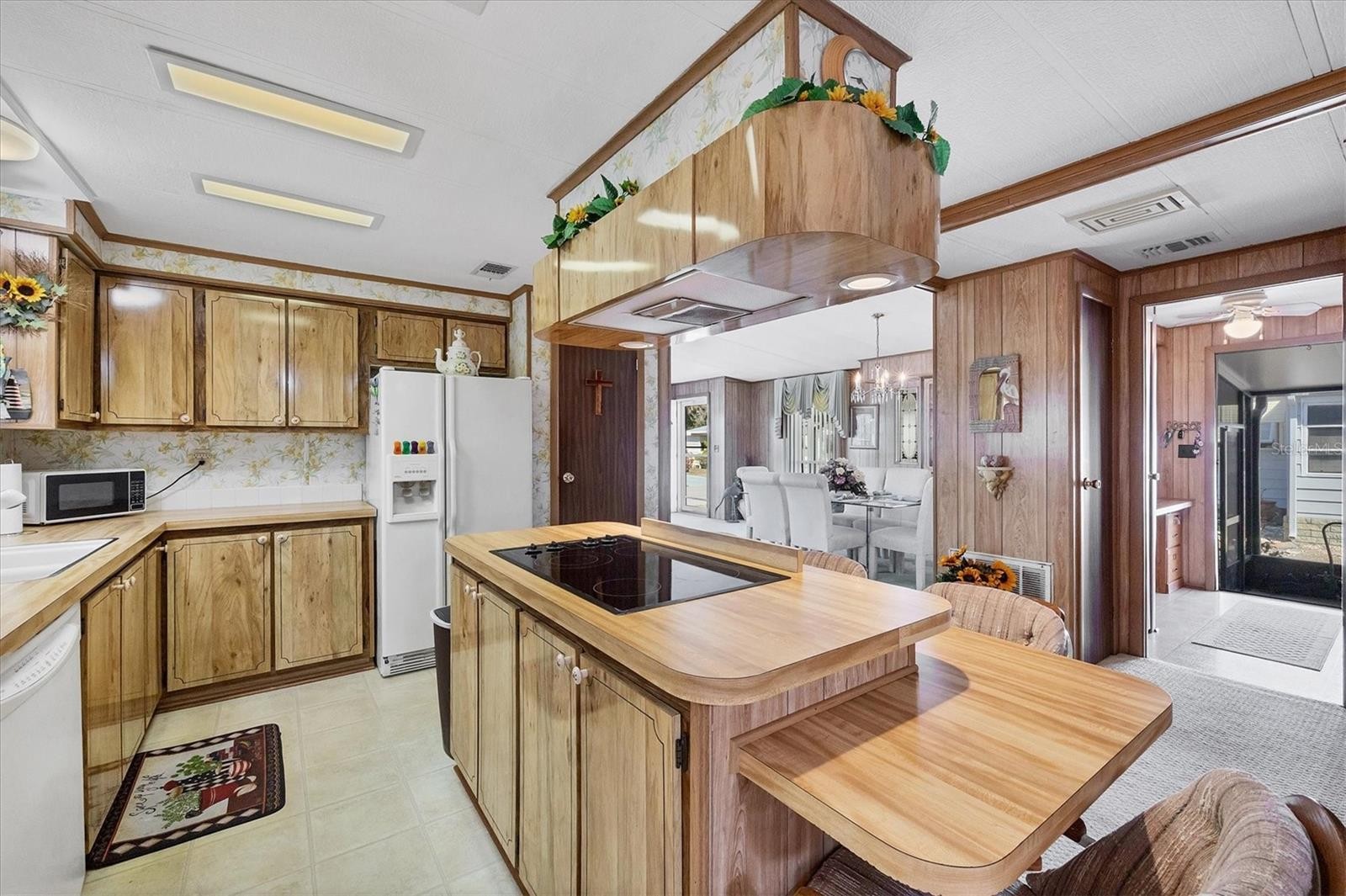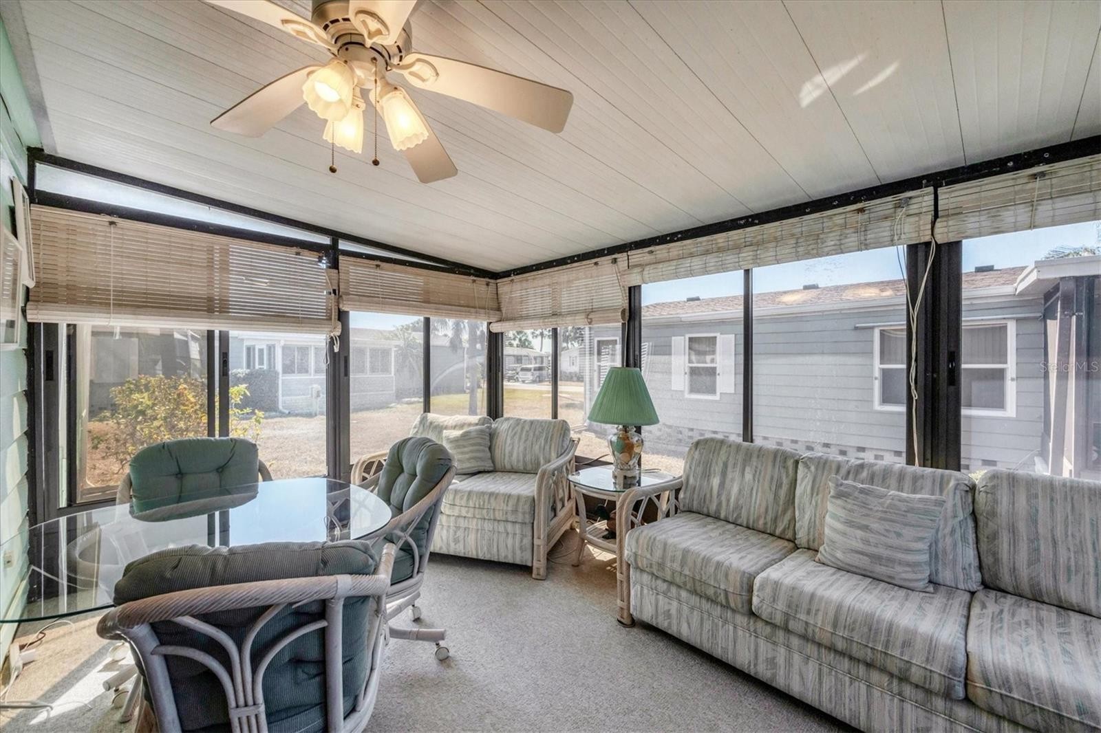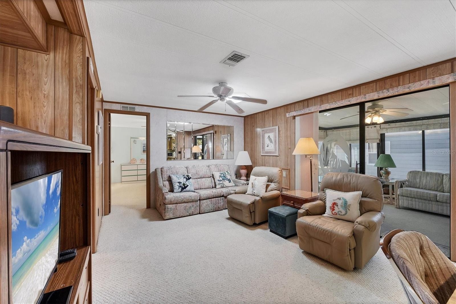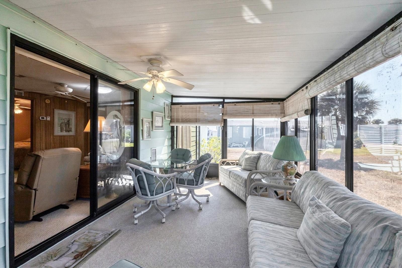 Located in an X Flood Zone, this highly sought-after gated community of Tangerine Woods, is an active and friendly, 55 and over community, where you own the land your home is located on. For your leisurely pleasure, this community provides you with a large heated pool and clubhouse, an exercise room and library, tennis and pickleball courts, walking trails, shuffleboard, and so much more! This light and bright, turnkey furnished home, boasts a kitchen that offers plenty of cupboards, a large pantry closet and a breakfast bar. The living room is also light and bright with a built-in wall unit. The dining room includes a built-in cabinet, which is off the kitchen and living room, and is just perfect for additional entertaining space. A spacious master bedroom, complete with a walk-in closet, is sure to provide all the comforts a master bedroom should, including an en suite bathroom, 2 sinks, a vanity, and a double door step in shower. The guest bedroom has a walk-in closet, 2 twin beds and access to the second full bathroom. The hallway off the kitchen, which provides additional storage space, is complete with counter/desk space, cupboards, and an exit to the outdoor lanai. The screened lanai off the carport is just perfect for enjoying our wonderful Florida weather. The shed is complete with its washer and dryer, and tankless water heater. The low monthly HOA payment of $226 includes cable TV, internet and grass cutting, and Tangerine Woods is pet friendly! This community is close to Historic Dearborn St., which provides casual dining, evening entertainment, locally owned shops and a Farmers Market on Thursdays. The local beaches are just 4 miles away, as well as many local golf courses, and world class fishing! Make your appointment today to see this nicely cared for home, as it won't last long!