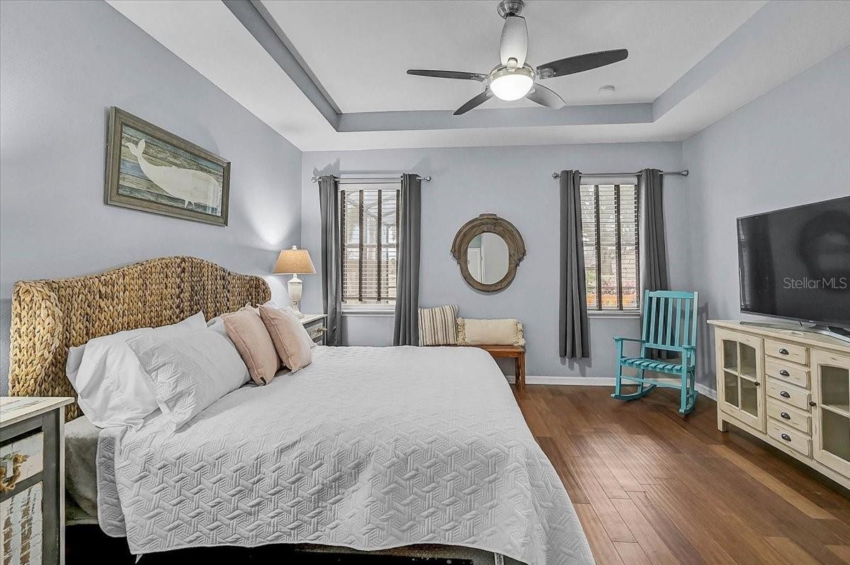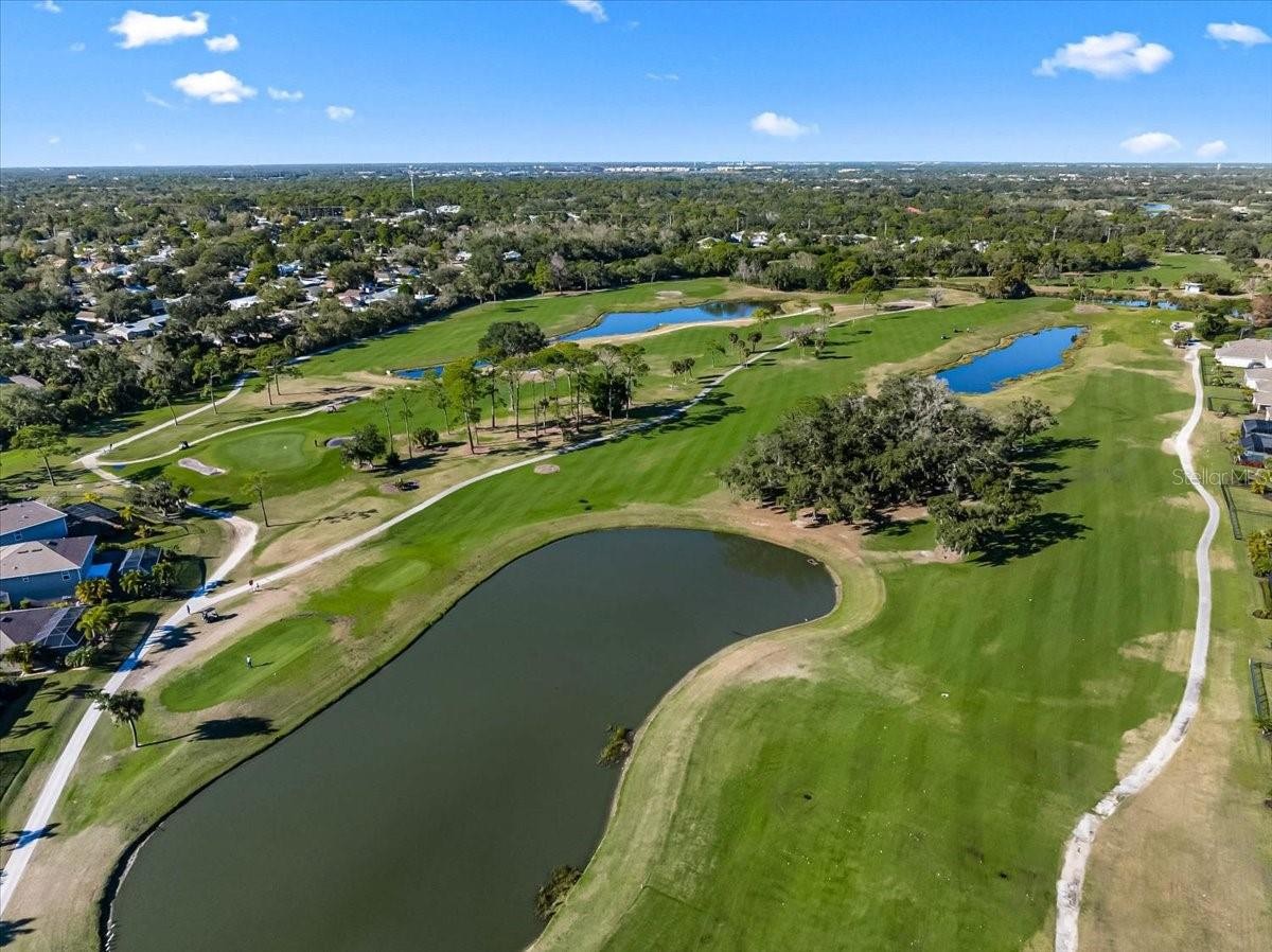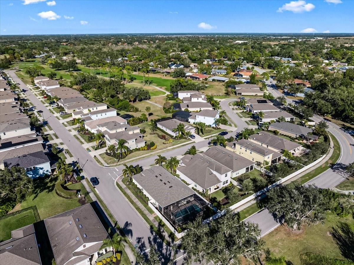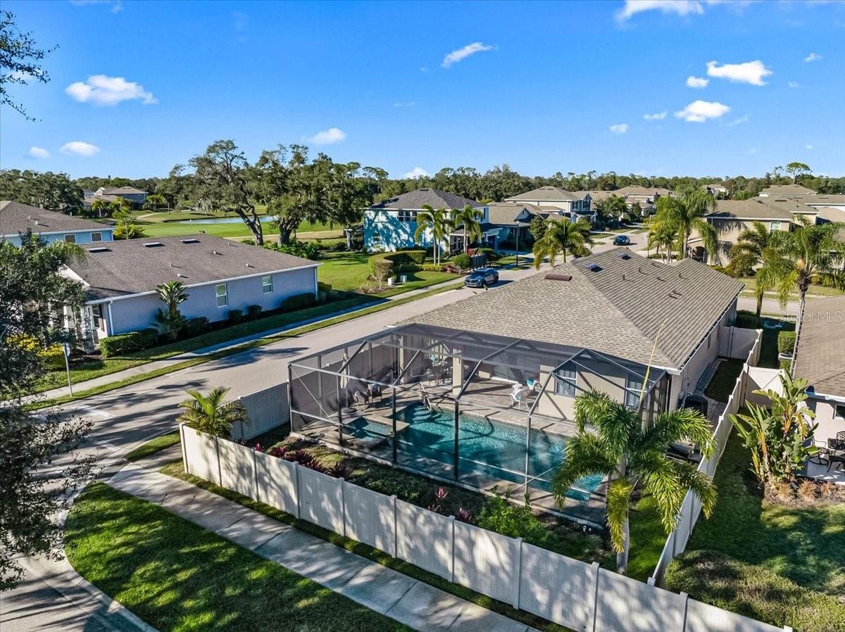 Located on a corner lot in The Fairways at Bent Tree, this home offers golf course and lake views in an optional golf community with maintenance-free lawn care. The fenced yard, screened lanai, and heated saltwater pool create the perfect setting for outdoor living. The open floor plan features 3 bedrooms plus a large den, 2.5 baths, and 9’4” ceilings with quality upgrades throughout. The kitchen includes 42” shaker cabinets, granite countertops, slate no-smudge appliances, and a large entertaining island. Tile flooring highlights the living areas, with bamboo flooring in the bedrooms and tray ceilings adding style. FPL Energy Certified with a 15-SEER HVAC, radiant barrier roof sheathing, and double-pane thermal windows. Ideally located less than 2 miles to I-75, 10 minutes to UTC, and approximately 20 minutes to Sarasota’s top beaches. Move-in ready and perfectly positioned for easy, low-maintenance living.