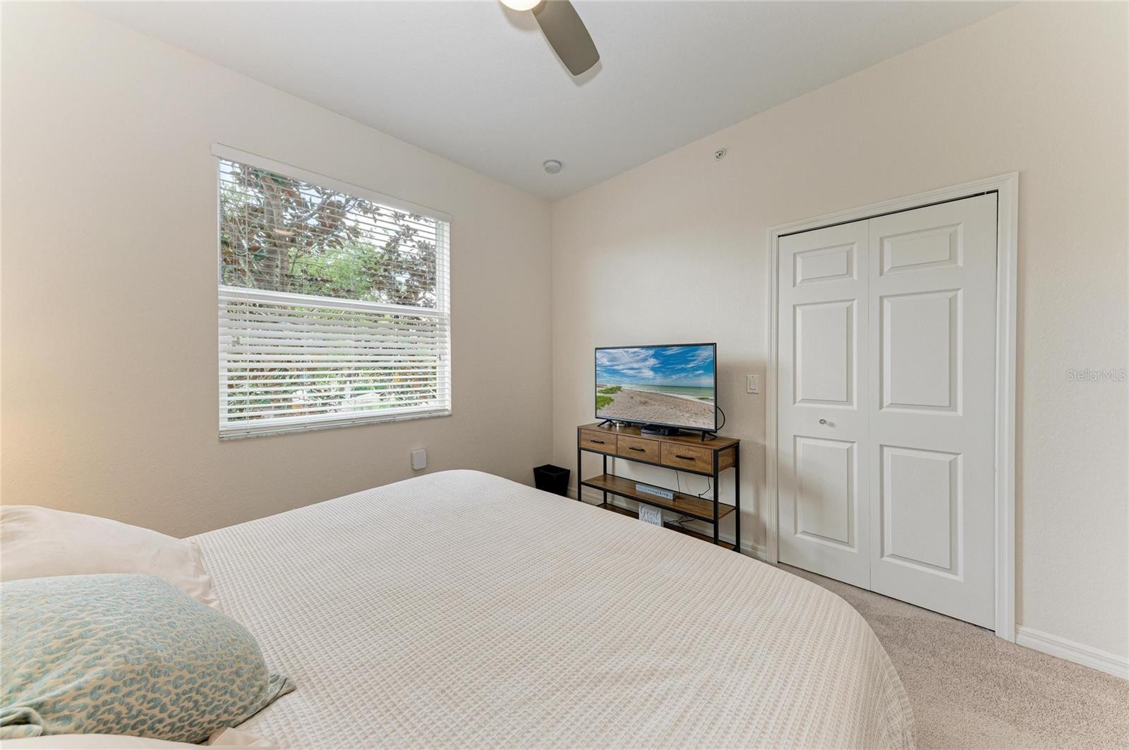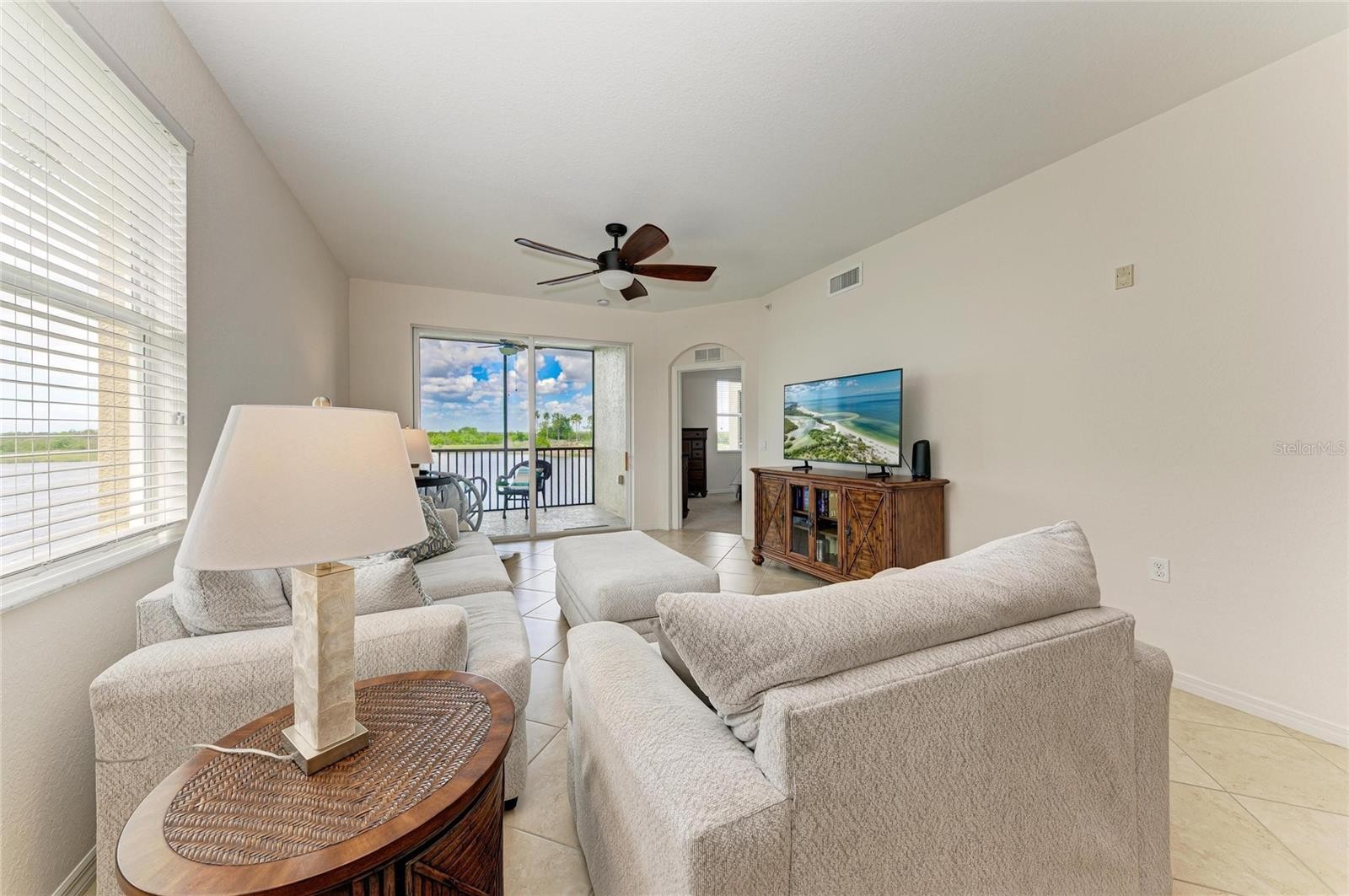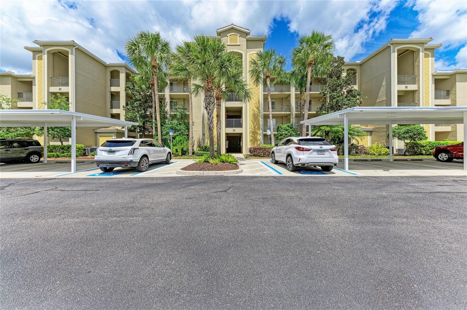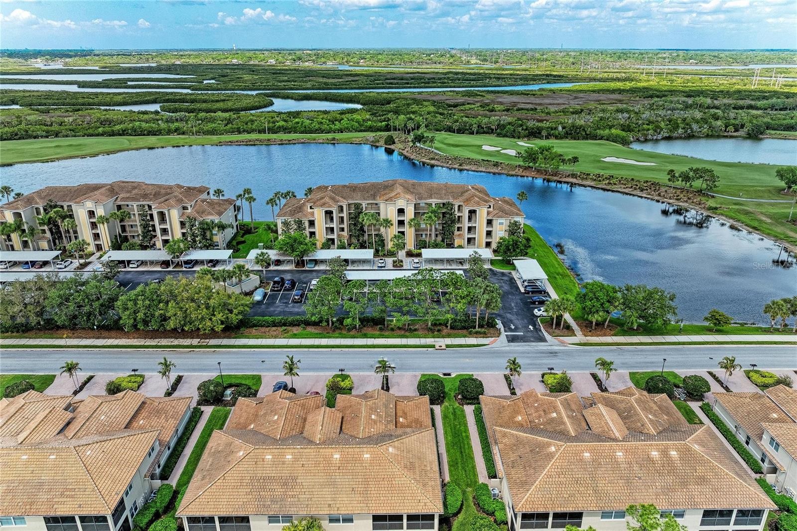 Move right into this beautifully maintained second-floor END UNIT in the gated, resort-style community of River Strand Golf & Country Club! This spacious GOLF DEEDED Colonnade floor plan offers extra privacy and an abundance of natural light, along with the breathtaking golf course and water views the community is known for. The open-concept living and dining area is perfect for entertaining, seamlessly connected to an eat-in kitchen featuring a breakfast bar and plenty of space for casual dining. The generously sized primary suite includes dual walk-in closets and a well-appointed en-suite bath. A comfortable guest bedroom with an adjacent full bath ensures both convenience and privacy for visitors. Step through sliding glass doors to your private screened lanai, where you can relax and take in sweeping panoramic views—an ideal spot to enjoy Florida’s beautiful sunsets! This FRESHLY PAINTED unit feels light, bright, and move-in ready. As an end unit, it also offers a versatile bonus flex space, perfect for a home office, den, or additional guest area. Additional features include a full laundry room, extra storage closet just across the hall, and a designated covered carport. Residents of River Strand enjoy access to a recently renovated clubhouse featuring a RESTAURANT, GRILLE ROOM with expanded outdoor dining, newly redesigned terrace bar overlooking the resort-style pool and spa—offering the ultimate in an elevated lifestyle. The community’s crown jewel is its 27 holes of pristine championship golf. Residents also enjoy an impressive array of amenities, including tennis and pickleball courts, two main resort-style pools and spas, six additional satellite pools, and two fully equipped fitness centers. A vibrant calendar of social events and fitness activities offers something for everyone. Ideally located just minutes from I-75, you’ll have easy access to the new Marketplace featuring Costco and Target, while the stunning Gulf Coast beaches are only a short drive away—making this the perfect place to enjoy the best of Florida living....Once you experience this home and River Strand at it's best you may never want to leave!