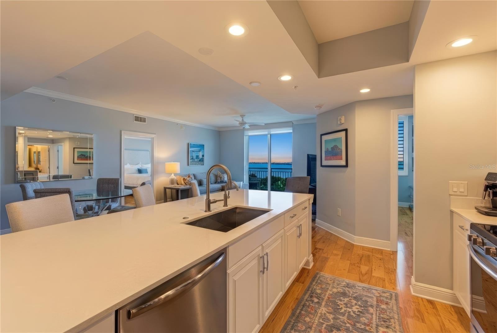 Prepare to be wowed. This expansive water-view and renovated residence on the 12th floor delivers breathtaking Sarasota sunsets and tranquil bayfront vistas the moment you step inside. Thoughtfully designed and impeccably maintained, the home is ideally situated within Sarasota’s cultural epicenter—just steps from world-class performing arts, tranquil garden spaces, the waterfront promenade, and The Bay Park’s scenic walking and cycling paths and multitude of activities. The building itself presents a truly elevated lifestyle, featuring an exceptional array of amenities including a resort-style pool and spa, fitness center with sauna, private theater, billiard room, library, club and tea rooms, business center, wine storage, bicycle storage, private storage, and three guest suites. Residents also enjoy the convenience and security of a 24-hour doorman and two deeded parking spaces. Inside the residence, refined updates enhance both form and function. Features include fresh paint, newer interior doors with glass knobs, custom closets, and plantation shutters. The kitchen has been tastefully updated with a reconfigured island showcasing a single-level quartz countertop, new sink, and new appliances installed in December 2024. The spa-inspired primary bath and renovated second bath offer a calming, contemporary aesthetic. Major system updates include a 2019 HVAC and a 2017 water heater, ensuring peace of mind. This is elevated Sarasota living—where sweeping water views, walkable culture, and turnkey luxury come together in one exceptional home.