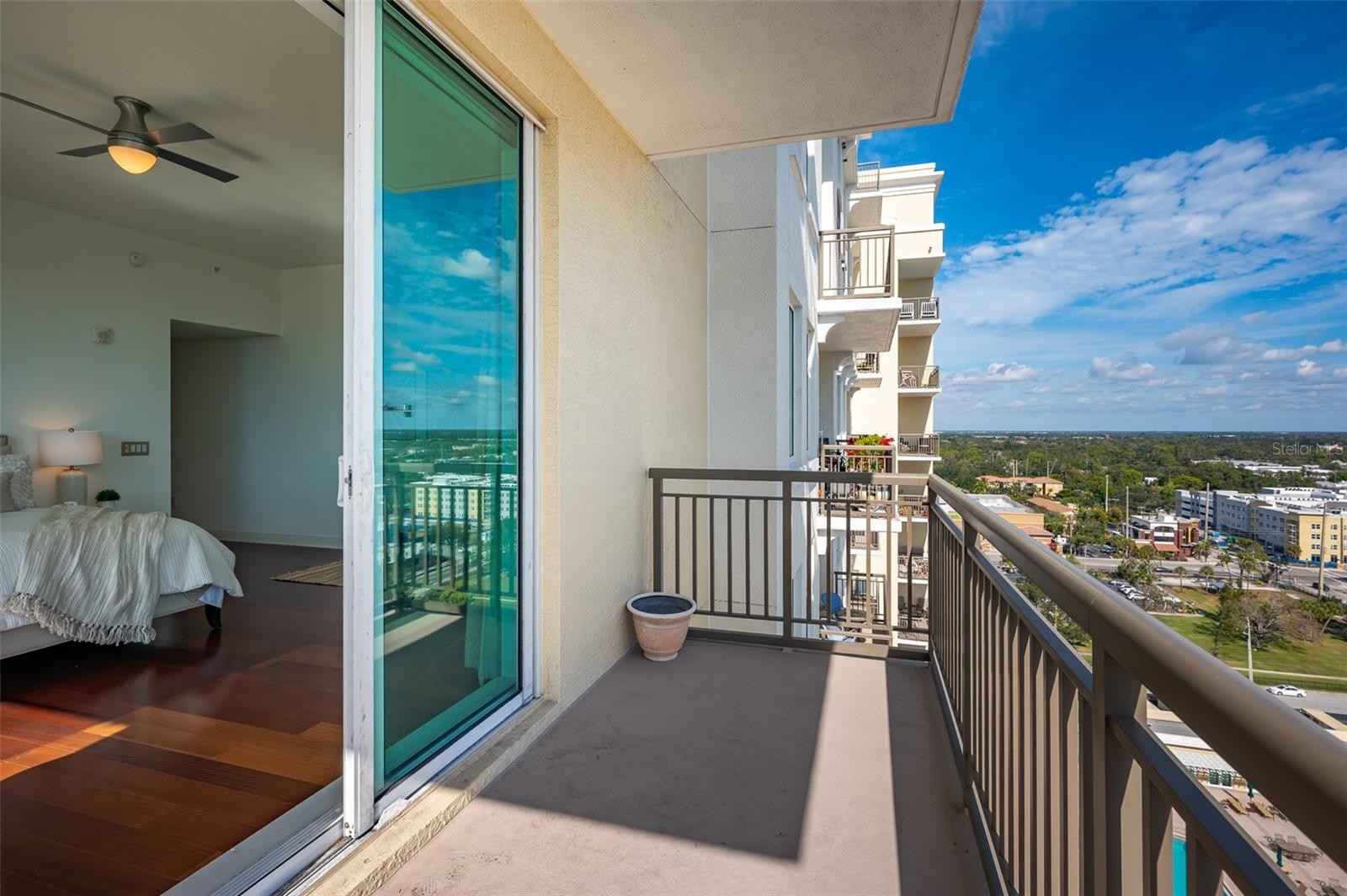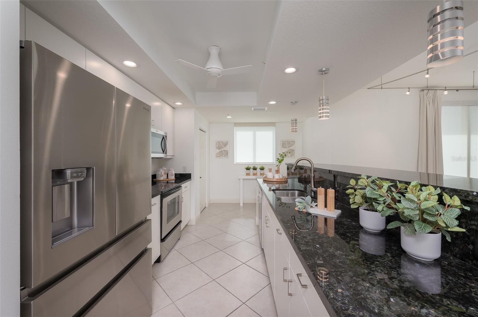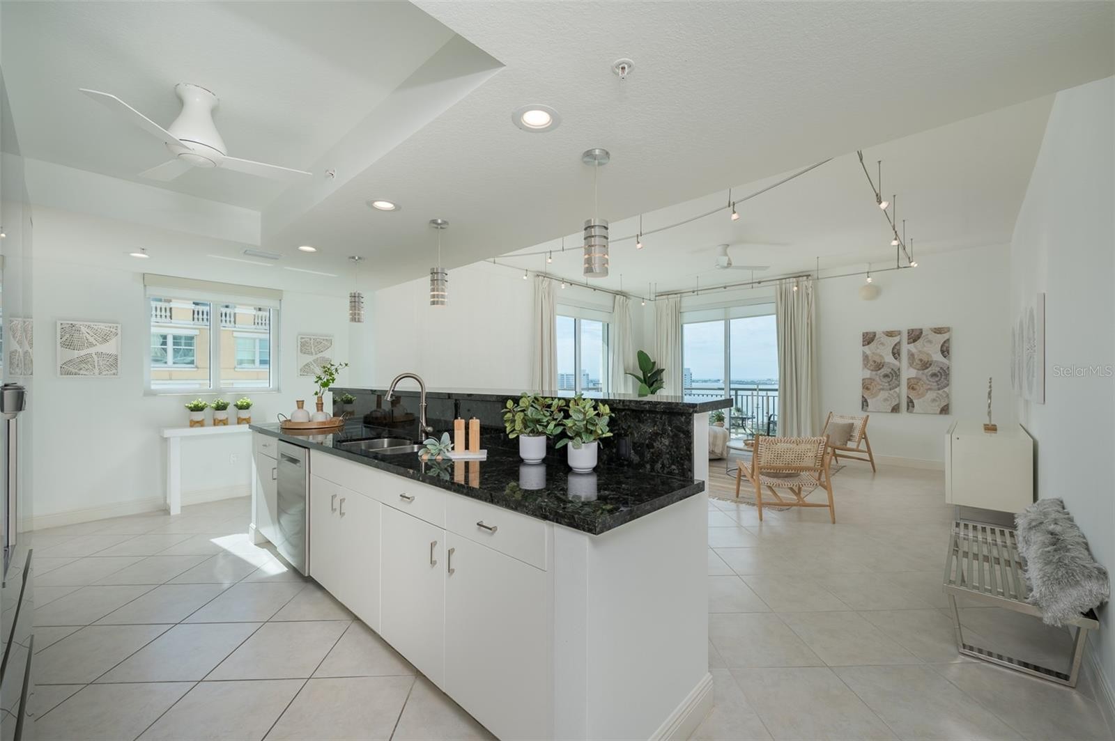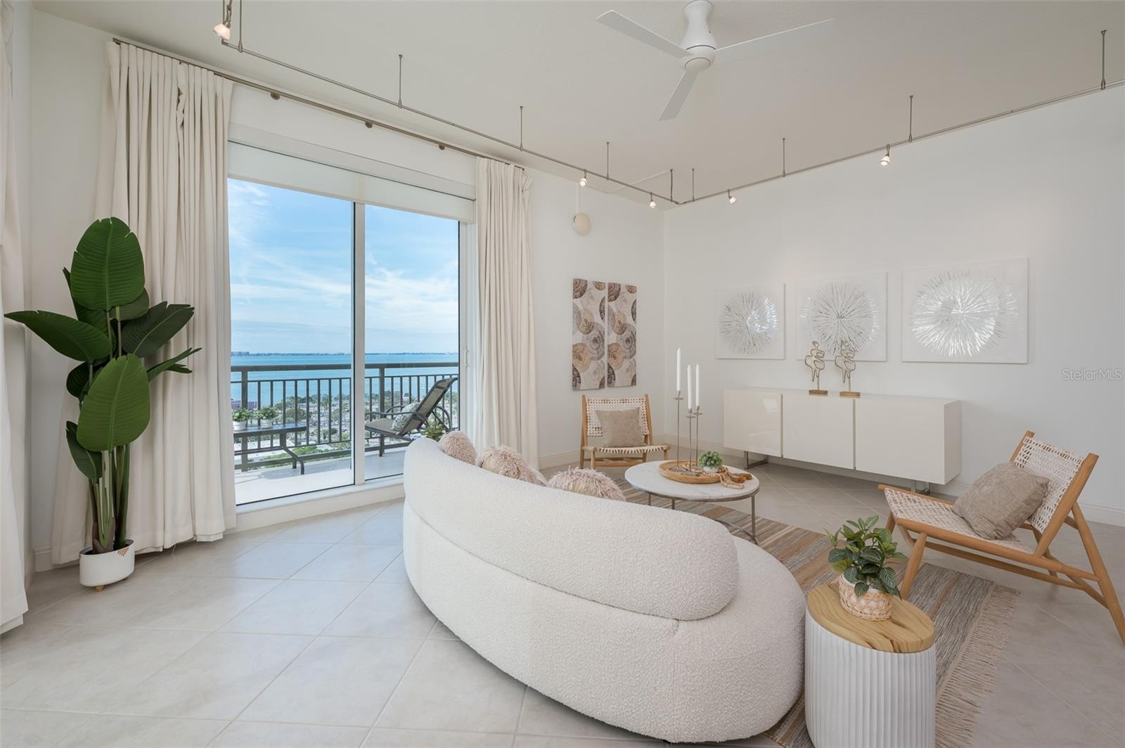 Immerse yourself with coastal luxury in this spectacularly designed two-bedroom, two-full-bath and one-half bath East to West corner unit in downtown Sarasota. Nearly every surface has been artistically modernized to provide supreme elegance, comfort and functionality. As you step inside, you will be immediately greeted by the bright interior, featuring 11 ft ceilings and open floor plan. The sunlight reflects beautifully off the porcelain tile throughout the unit and almost exudes the ambiance that you are walking amongst the clouds, although on the 15th floor. The beautiful flow of the porcelain tile, neutral palate and rich wood flooring in the primary bedroom, elevate the look and makes cleaning effortless. Every detail has been accounted for and no expense has been spared when designing your future home. The kitchen's stately stainless steel appliance package, stone countertop, pantry and newly refinished kitchen cabinetry and hardware complement the overall atmosphere overlooking the vistas of Sarasota Bay turquoise water. Enjoy West and East balconies with breathtaking Sarasota Bay and city views. The primary en-suite bedroom has expansive views of the East sunrise large walk-in closet and secondary closet both with built-ins and spa- like bath retreat. Your second bedroom is spacious with balcony access and closet with built-ins. There is complete laundry closet located between both bedrooms for convenience and complete with washer, dyer and storage shelving. There are beautiful lighting fixtures and fans throughout the residence. Living here means that you will enjoy the most amazing sunsets on the west coast of Florida! When it comes to selecting your next building to call home, understand that Alinari truly has all the amenities and security that you would want in a Florida condominium building. Beyond the unit itself, Alinari offers a wealth of amenities. Residents of this stunning 18-story condominium high-rise enjoy lovely plazas, fountains and modern resort-style perks. The building is completely secure with key-card entry and 24-hour front desk services, including an overnight guard. The building is in flood zone X and outside the floodplain. Alinari is designed like a fortress and was constructed with reinforced concrete beams, has been fireproofed, and was built on pilings that were drilled deep into the ground for extra added stability and security. The lobby and guest parking spaces are elevated 17 feet above from the base sea level. This unit enjoys two assigned parking spaces (one on the third floor garage and one on the first floor garage), which means your vehicles will be secured and elevated over 30 feet from sea level. From a grand entrance and an impressive lobby to concierge services, on-site management, secured parking, a clubroom, business center, fitness center and even a resident theater, every need is catered to. The location could not be better. In a contemporary-inspired building, Alinari is in the heart of Sarasota's cultural district. The opportunity to experience the epitome of downtown Sarasota living awaits.