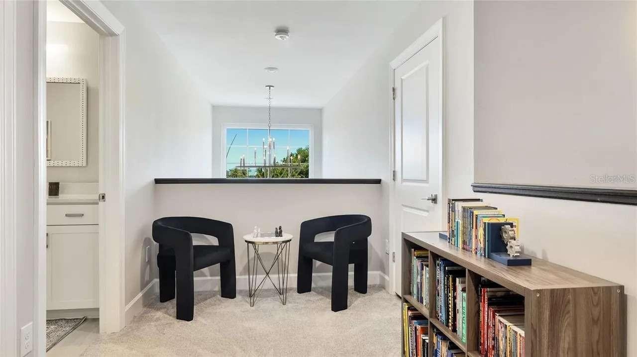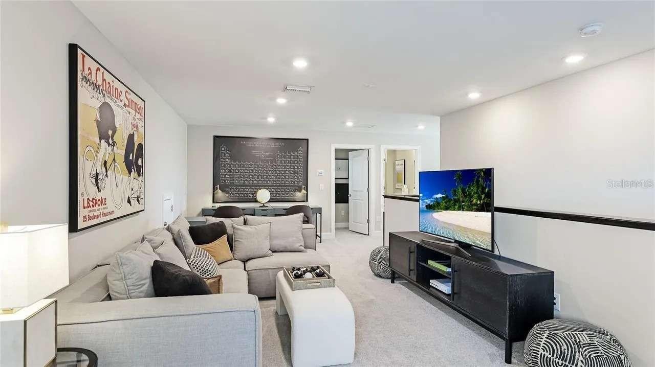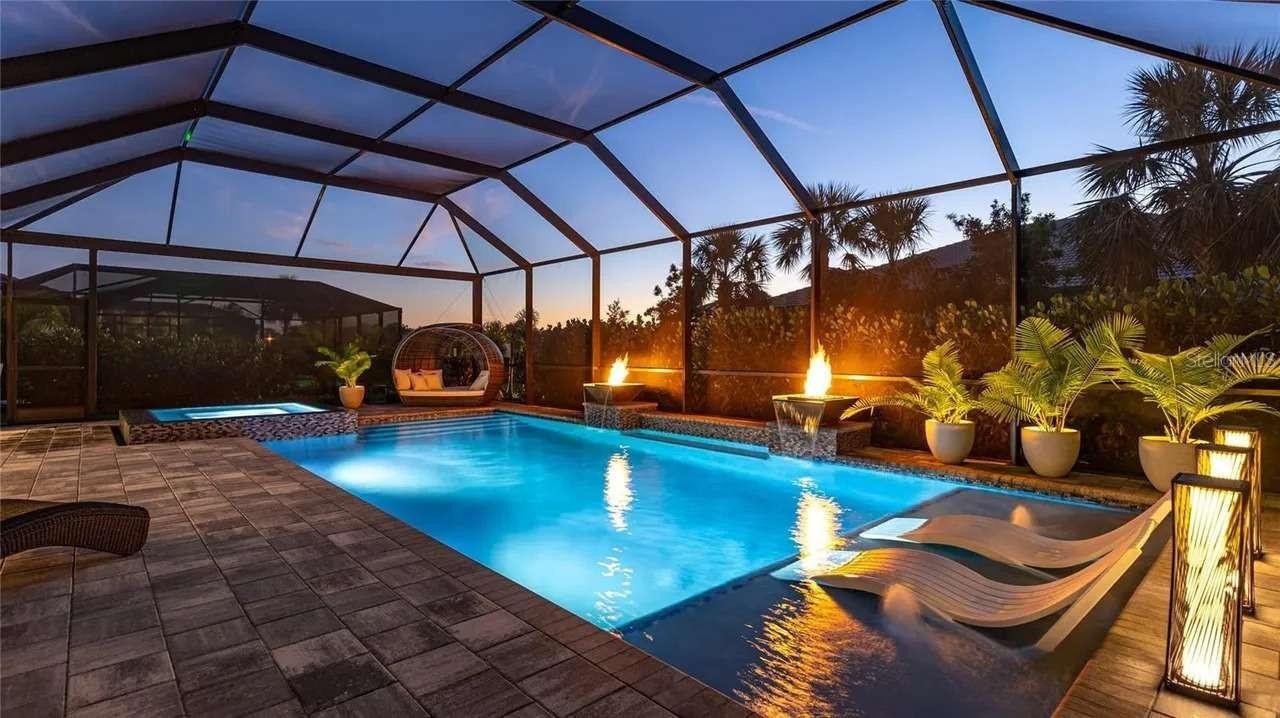 Luxury living awaits in Shoreview at Waterside, one of Lakewood Ranch’s most sought-after communities. This Stonewater model by Pulte offers nearly 4,000 square feet of refined living space w/ 4 bedrooms, 4 baths, a private den/office, & an expansive 35’ x 20’ upstairs bonus room. Perfectly positioned on an oversized corner lot, this home features more than $250,000 in high-end upgrades post-closing, which elevate both style and functionality. Inside, soaring 14-foot ceilings, custom designer lighting, plantation shutters, & an open-concept layout create an elegant yet welcoming atmosphere. Abundant natural light and southwest-facing rear exposure further elevate this exceptional home. The chef’s kitchen features upgraded KitchenAid appliances, a natural gas cooktop, oversized island, granite countertops, a large walk-in pantry w/ custom shelving, & a breakfast nook, flowing seamlessly into the great room and formal dining area- perfect for entertaining. The primary bedroom is a serene retreat with the en-suite featuring spa-like finishes, dual vanities, a walk-in shower, a soaking tub, & a large walk-in closet w/ custom shelving. Two additional bedrooms and baths, plus a private den/office, complete the main level, while the upstairs bedroom, full bath, & bonus room provide an ideal space for media room, home gym, or guest retreat. Head outside to your very own resort-style, private backyard escape. The expansive screened lanai features a heated saltwater pool & spa w/ integrated fire features, a fully equipped outdoor kitchen, & lush, layered privacy landscaping- a rare offering that includes enough space for grilling, dining, lounging, & an outdoor living area with TV- an entertainer’s dream! Additional home highlights include hurricane impact windows upstairs, motorized hurricane screens covering the lanai, whole-home water filtration, custom shelving in pantry and closets, EV charging in the 3-car (epoxy coated floor) garage, custom garage ceiling storage racks and 4 wall mounted bike racks, brand-new LG washer & dryer, and a paver driveway. Designer Arhaus furnishings are negotiable for a truly move-in-ready experience. Ideally situated on a low-traffic street just off the main road, this home offers exceptional privacy with no neighbors on one side or directly across the street. Only four other residences share the block, and no homes line the opposite side. A community green space sits directly across from the property, while a scenic walking trail winds between two neighborhood lakes just steps away. The amenity center is an easy five-minute walk, & a well-maintained dog park is located just four houses down. Shoreview residents enjoy a maintenance free community w/ resort style amenities. The nearby amenity center offers a heated community pool & spa, fire pits, fitness center, lighted tennis & pickleball courts, kayak launch, beach area, & events lawn. Located just minutes from Waterside Place, enjoy walking, biking, or taking the free water taxi service to lakeside dining, live music, community events, a weekly farmer’s market, splash pad, & more. This area is desirable due to proximity to all Sarasota has to offer, including world-class beaches. Shoreview Waterside offers the sought-after combination of being in Lakewood Ranch within Sarasota County.