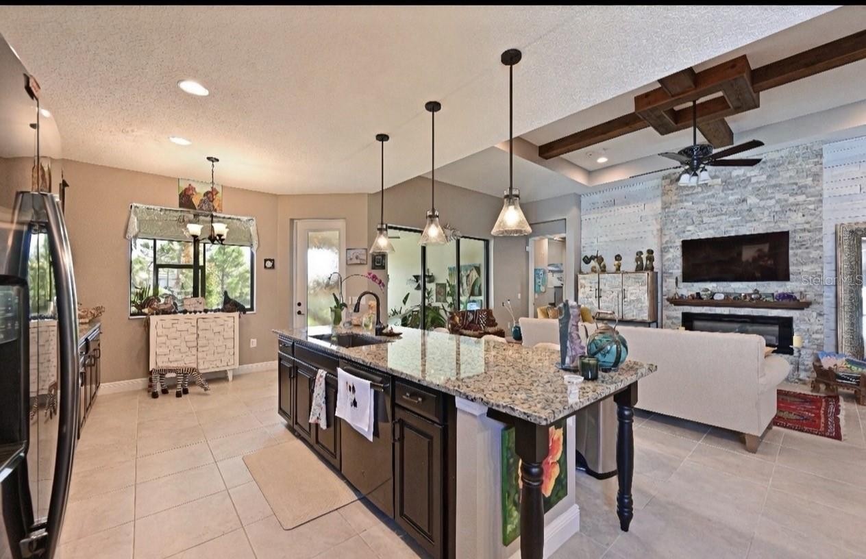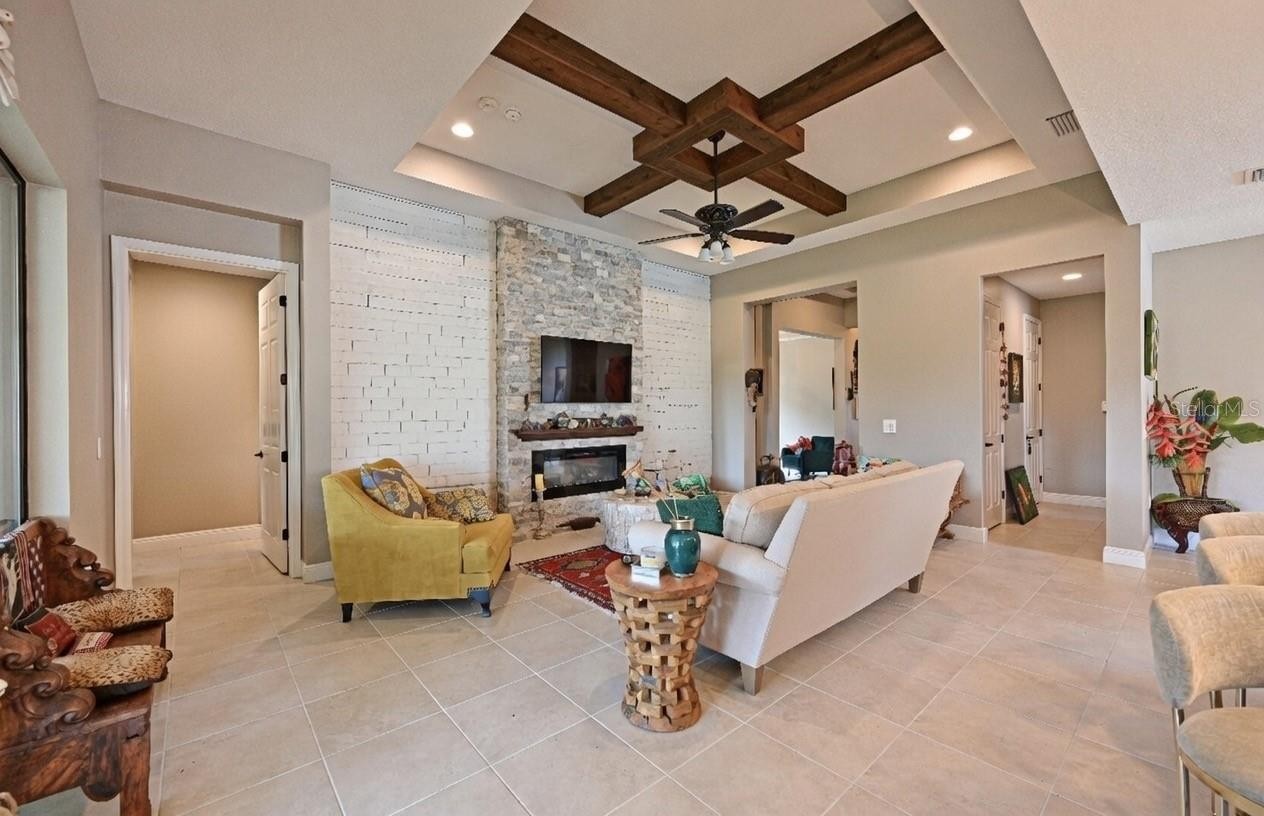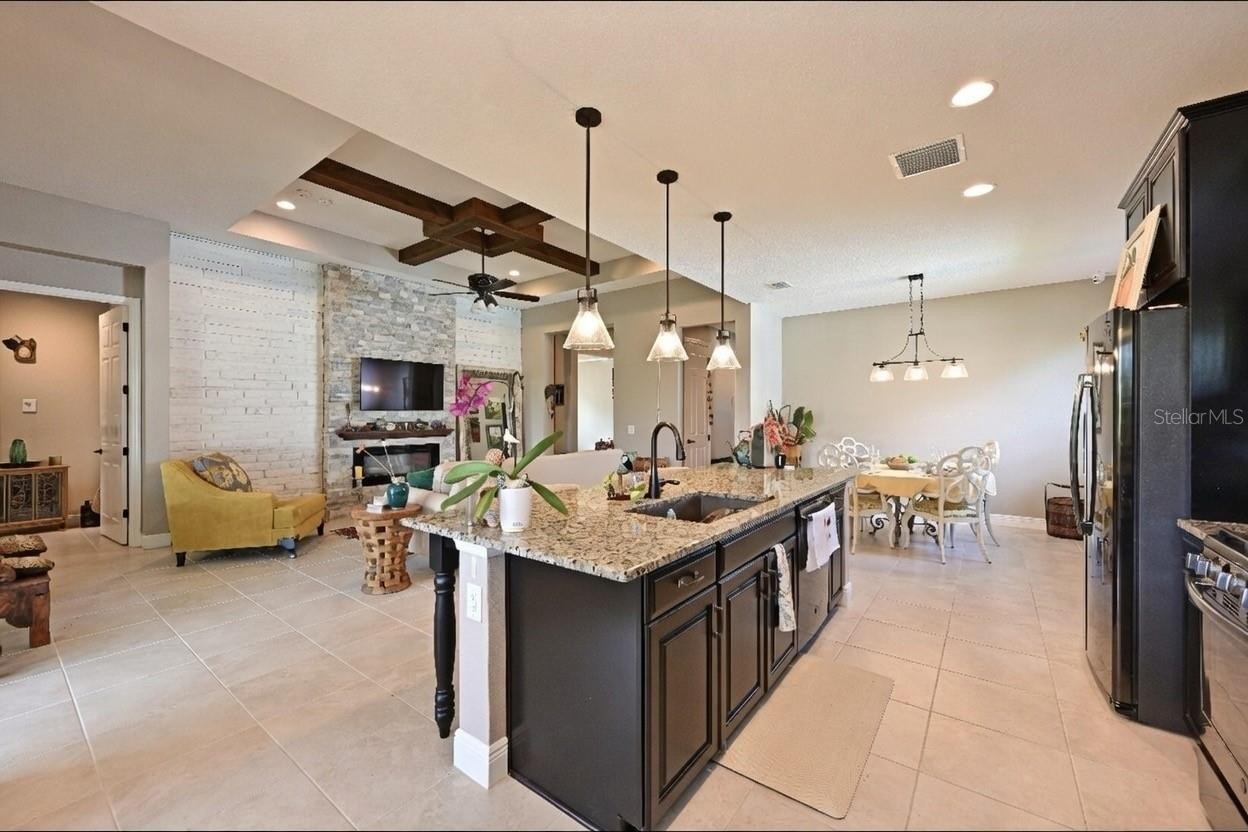 Welcome to this Craftsman style home in Lakehouse Cove where warm tones and layered textures create an inviting atmosphere. This 2-bedroom plus den, 2-bath home features a large great room with stone fireplace, tray ceilings with custom detail, and sliders to outdoor living area. The kitchen is the heart of this home, featuring large island, upgraded cabinets, extensive counterspace and a spacious dining area - perfect for entertaining or for comfortable everyday living. The private owner’s suite includes a spa like bath with dual sinks, a walk-in shower and a large walk-in closet. The charming second bedroom overlooks a welcoming front porch, while the den provides flexible space for an office or flex room. Step out to the spacious lanai overlooking a beautifully landscaped yard and tranquil pond. Both the lanai and owner’s suite enjoy peaceful water views. Thoughtful touches and quality finishes are found throughout the home. Living in Lakehouse Cove means enjoying a lifestyle beyond your home, with six pickleball courts, a resort-style pool and spa overlooking Lake Kingfisher, a state-of-the-art fitness center, boathouse and kayak launch, two dog parks, a community clubhouse, and fire pits where neighbors gather to enjoy stunning sunsets. Just a short stroll to Waterside Place, offering shopping, dining, a Sunday farmers market, and year-round events.