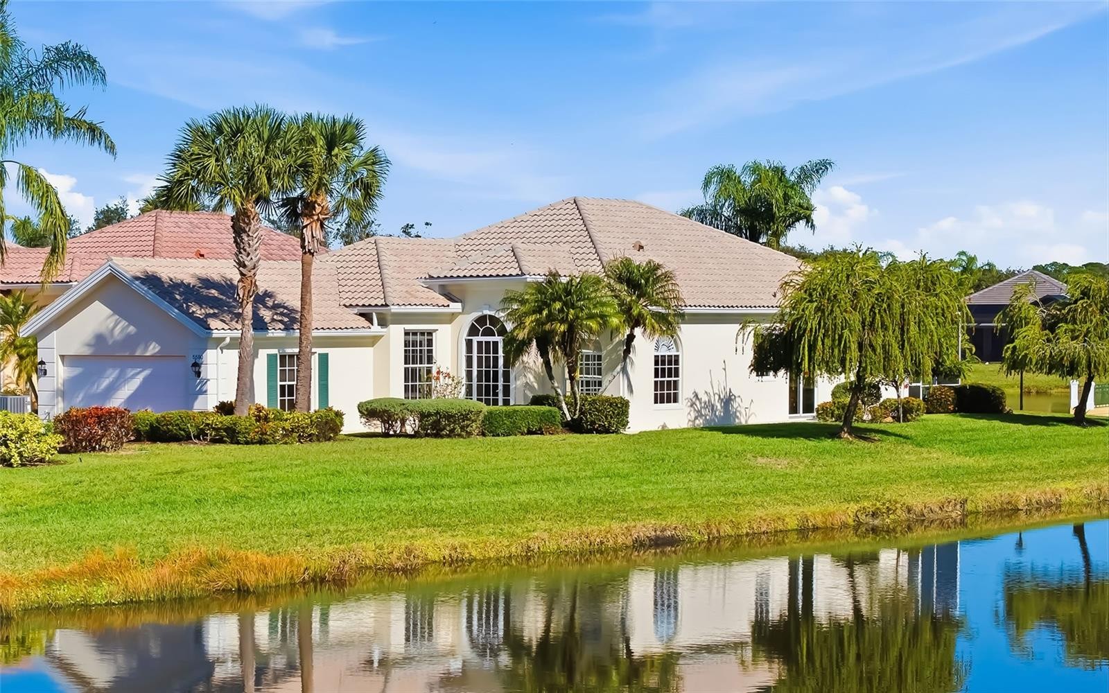 Welcome to Deer Creek, a much sought-after and well maintained community in the Palmer Ranch area. Your professionally landscaped, freshly painted on exterior (2023) home is just a short walk to the large, heated, lakefront community pool and located on a premium lot with attractive water views. This gated community with 24 hour security also features low HOA fees and no CDD to help keep costs down while living in a well desired neighborhood. Renovations have been completed in the kitchen in 2018 to include new cabinetry, quartz countertops and stainless appliances. Your primary bathroom also has has updates as well in 2019 to include cabinetry and quartz counters. Tile has been installed in the main living areas and the carpet is newer in the bedrooms. In addition to the cosmetic updates, this home is structurally and mechanically sound with a new roof (30 yr warranty) installed 12/17, hot water heater and gutters installed 2023 and the AC condenser replaced 2021. Home insurer initiated random inspection and confirmed that the home passed successfully in July, 2023. Appealing water views with colorful skies nightly from the primary bedroom, living room and especially the climatized lanai (2018) as the sun sets over the pond in this very picturesque, private setting. With close proximity to the Legacy Bike/walking Trail, shopping, theaters, Costco, restaurants, the fitness center with indoor pool, and the beautiful Siesta Key Beach this home is perfectly located. Be sure to schedule your showing today.