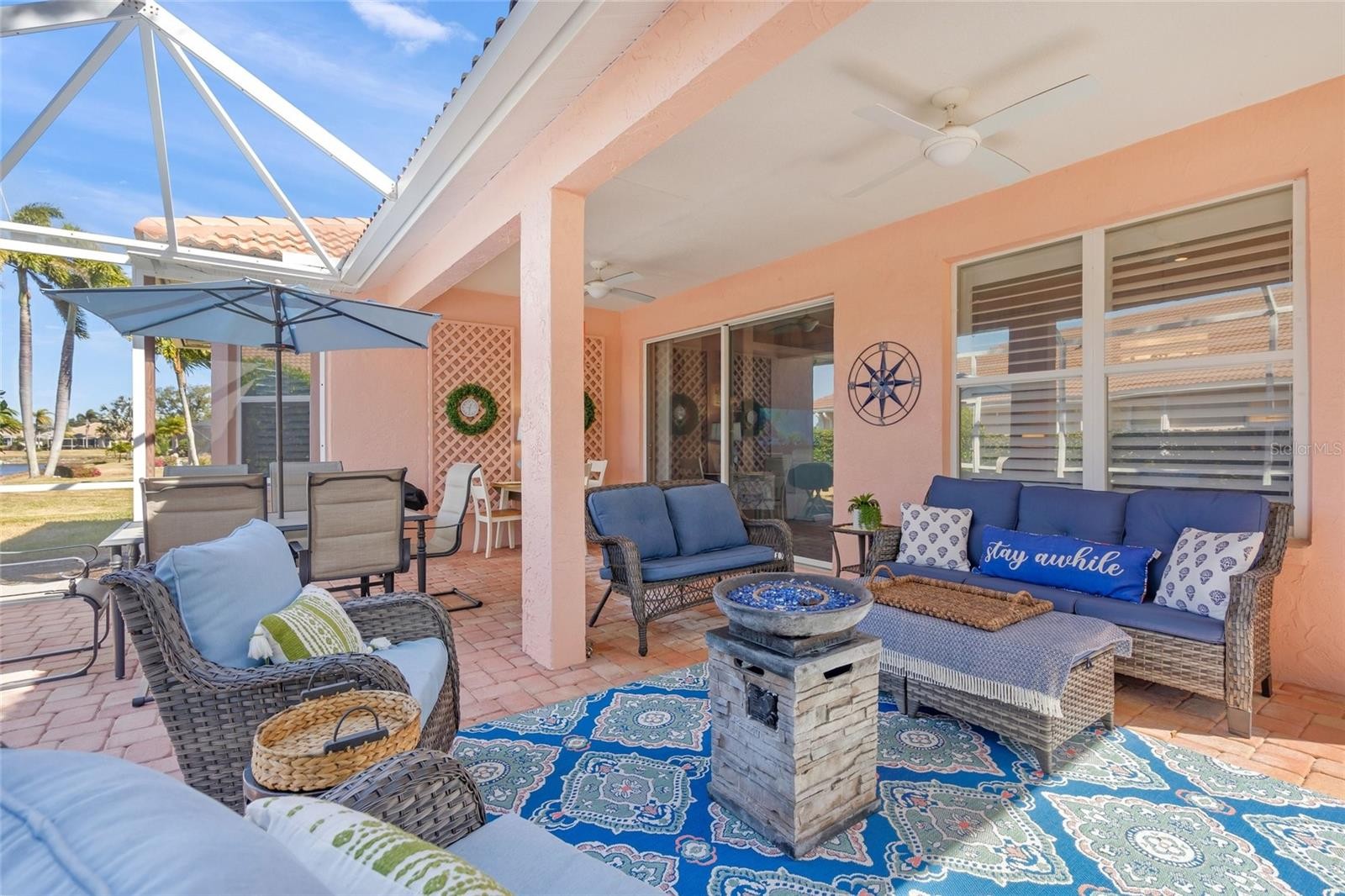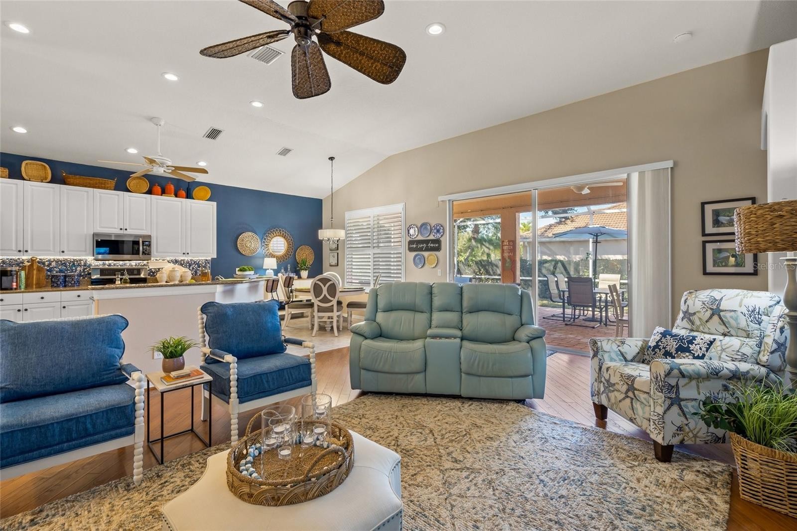 Step into this beautifully updated 3BD/2BA/2 car garage home and experience the perfect blend of comfort, style, and privacy. Situated on a spacious corner lot with lush tropical landscaping, this move in ready residence welcomes you with bright, open living spaces, high ceilings, updated lighting, and plantation shutters on every window. Located in Pelican Pointe—Venice’s premier gated community—you’ll enjoy resort-style amenities including a clubhouse with restaurant/bar/grill, heated pool, fitness center, tennis, pickleball, 27 holes of golf (membership not mandatory), a library, social room, endless activities, an active Women’s Association, and low HOA fees. All of this is just minutes from Venice Beach, historic downtown, shopping, dining, theatres, airports, and more. Once you're back home from all of those exciting activities, you can relax on your oversized pavered lanai, a private outdoor oasis surrounded by preserve views, mature landscaping, and even a peek a view of the lake—perfect for relaxing or entertaining in true Florida style! The kitchen features granite countertops, stainless steel appliances, a custom backsplash, a charming breakfast nook, bar seating, and a separate dining room for more formal occasions. The large great room layout flows seamlessly to the lanai. The owner’s suite offers two walk in closets, and an updated en suite bath with granite counters, new fixtures, a walk in shower, and a luxurious garden tub. Guest bedrooms are thoughtfully positioned on the opposite side of the home for privacy, with the third bedroom currently used as a den/office and a beautifully updated guest bath nearby. Additional features include hurricane shutters, a screened front porch, and an interior laundry room! Did I mention the furnishings are negotiable?