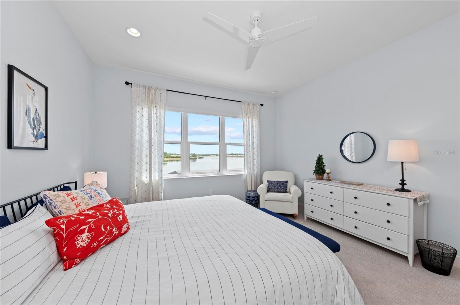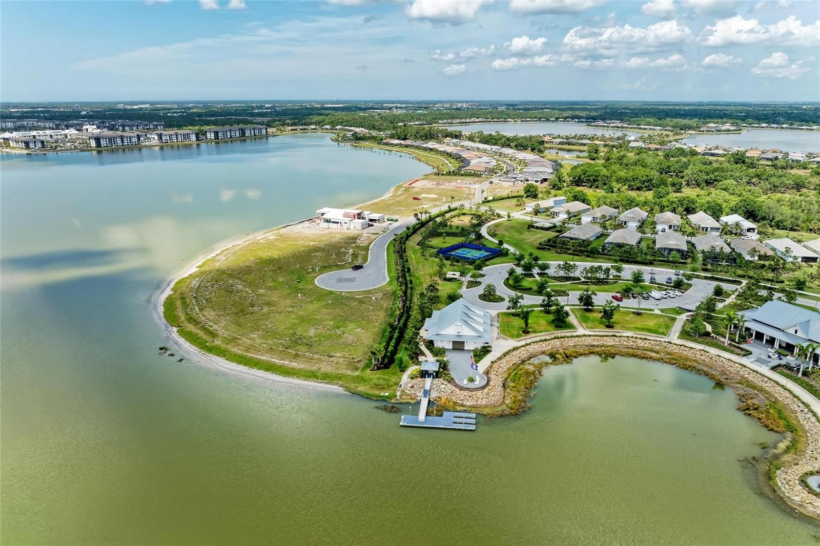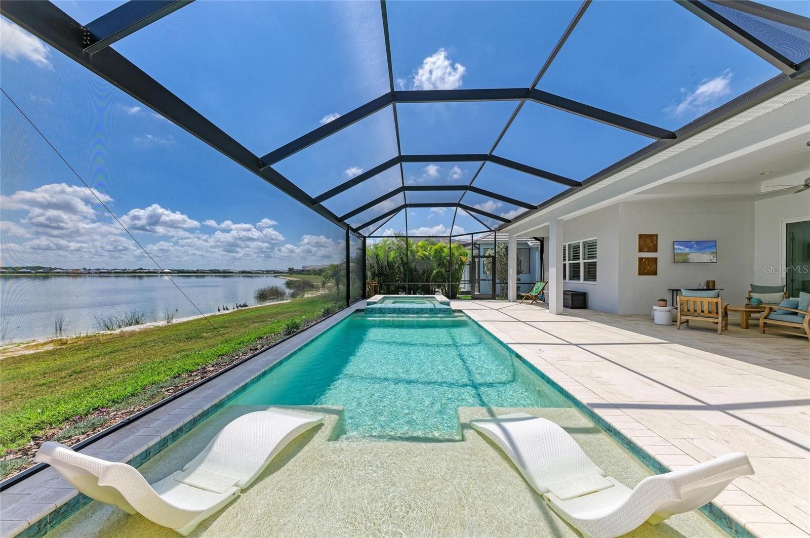 Welcome to your dream home in the highly sought-after Lakehouse Cove at Lakewood Ranch. This exceptional Tideland floor plan by Homes by Towne offers the perfect blend of luxury, comfort, and true waterfront living, highlighted by expansive panoramic lake views. This thoughtfully designed 3-bedroom, 4-bathroom residence features a spacious open-concept layout accented by high-end finishes and quality upgrades throughout. The main level includes a dedicated office, ideal for working from home or creating a private retreat, as well as a generous primary suite with a spa-inspired bathroom and large walk-in closet. Step outside to the oversized screened lanai and take in tranquil mornings and breathtaking sunset views over the lake—an ideal setting for relaxation and entertaining. The upper level offers a versatile bonus living area, perfect for a media room, guest suite, or additional gathering space. Each bedroom is designed for privacy and comfort, with its own en-suite bathroom, making this home well-suited for family and guests alike. Situated within the amenity-rich Lakehouse Cove community, residents enjoy access to a resort-style clubhouse, fitness center, pool, kayak launch, and miles of scenic walking trails. Conveniently located near shopping, dining, and all that Lakewood Ranch has to offer, this lakefront home presents a rare opportunity to enjoy refined Florida living at its best.