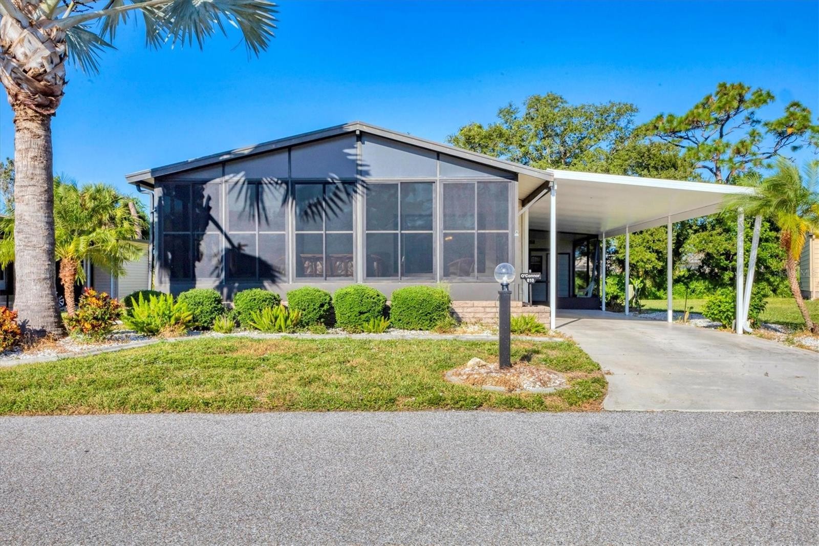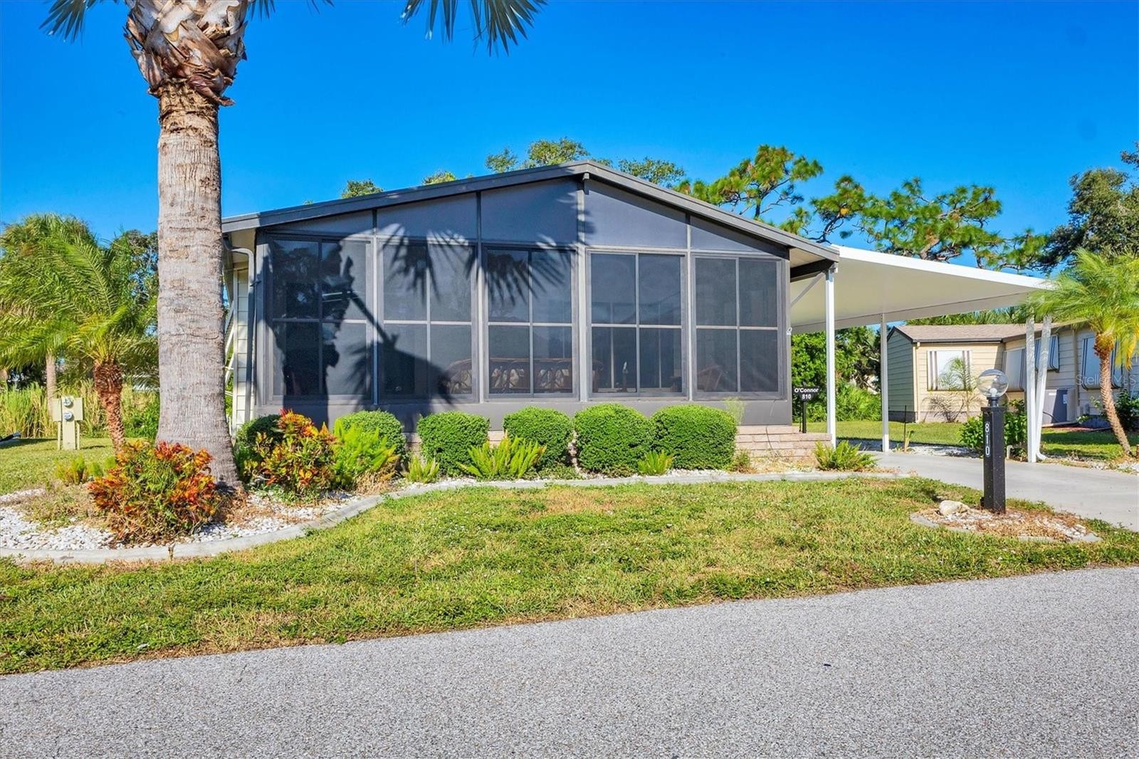 Location, location, this home, the oak model is located toward the back of the park so there is no noise at all on a quiet cul-de-sac that backs up to a beautiful, wooded view. Upgrades in the home, are carpet in the Great Room, installed April of 2025, home was also painted in 2025, new roof 2022, new carport in 2021 and new A/C in 2017. For your convenience, the washer and dryer are inside in the Master bath. Beautiful kitchen with Cherry cabinets, stainless steel appliances, breakfast bar, and large pantry. Soaring ceilings throughout for an open, airy feel. Spacious open floor plan, laminate flooring throughout, easy to clean. Enclosed porch on the front of the home with easy close windows, attractive furnishings and an A/C unit that was purchased 09-13-21. The landscaping was recently updated and there is a gorgeous Silver Palm. Hugh primary bedroom with spacious walk-in closet and en-suite bathroom that has been completely updated, new queen mattress and box spring that was purchased 07-18-25 and a new full mattress and box spring in the guest bedroom that also has a walk-in closet. What's happening in Tangerine Woods : Welcome Home Dance, Saturday, November 15fth from 6:30 until 9:30. Community Movies start in October promptly at 6:30 Friday, November 17th watch the comedy/Drama "The Magic of Belle Isle. Friday November 24th watch a comedy "Nonnara" Santa's Workshop - Holiday shopping on "December 12th, wrapping on the 13th Water Aerobics will begin on the first of October at 11:00am Halloween Dance October 25th 6:30 - 9:30 Vaccinations - October 15th 10:00 - 1:00 with coffee and cake being served. Contact Melissa Cherry at 736 Butterfield Circle. Veterans and families Tuesday November 11th a program and Potluck luncheon at the clubhouse. Saturday morning coffee and donuts, to meet and greet your neighbors, starts October 4th at 8:00am Meeting at 9:00. These are only a few of the activities at Tangerine Woods, there's walking trails, extra storage for trailers, boats, extra cars and motorcycles, shuffleboard, pickleball, tennis, Olympic sized heated pool and spa, billiards and a library in the clubhouse with ceramics, card playing rooms and mahjong. You are close to three beaches, golf, fine dining, downtown Dearborn with a Farmer's Market on Thursday's, shopping and restaurants. You must see this home.