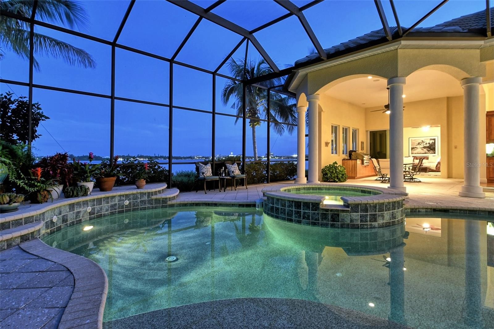 Behind the gates of the prestigious Island at Riviera Dunes, this exceptional John Cannon custom-built home offers a rare sense of peace, beauty, and refined waterfront living. From the moment you arrive, high ceilings, solid cherry wood floors, and graceful architectural details create an atmosphere of understated luxury and timeless elegance. Walls of sliders pocket back to invite the outdoors in, opening the home seamlessly to a generous screened lanai where a shimmering pool and spa overlook the tranquil Manatee River. Gentle breezes flow freely through the living spaces, accompanied by the calming sound of a cascading pool are an everyday reminder that this is a place designed to soothe and restore. River views unfold from nearly every room, connecting the home effortlessly to its natural surroundings. The thoughtfully designed split floor plan offers four bedrooms and three baths, providing both privacy and comfort for family and guests alike. A beautifully appointed kitchen opens to the family room and lanai beyond, creating effortless flow for gathering, entertaining, and relaxed waterfront living. The oversized primary suite is a true sanctuary, while the office—perfectly positioned to capture lanai and river views—makes working from home a genuine pleasure. Southern exposure bathes the home in warm, natural light from dawn to dusk. Built on an oversized lot with a ten-foot elevation, this residence offers exceptional peace of mind with hurricane-rated windows, a whole-house generator, and a history of zero storm damage. Just steps away, across the street at the private neighborhood marina, a deeded slip awaits at the area’s only hurricane-rated marina, capable of accommodating a yacht up to 62 feet. With effortless access to Tampa Bay, the Intracoastal Waterway, and the Gulf of Mexico, this home is a dream realized for boating enthusiasts. Perfectly located just minutes from I-75, the convenience of travel blends seamlessly with the serenity of this remarkable setting—an extraordinary waterfront retreat where elegance, comfort, and lifestyle come together beautifully.