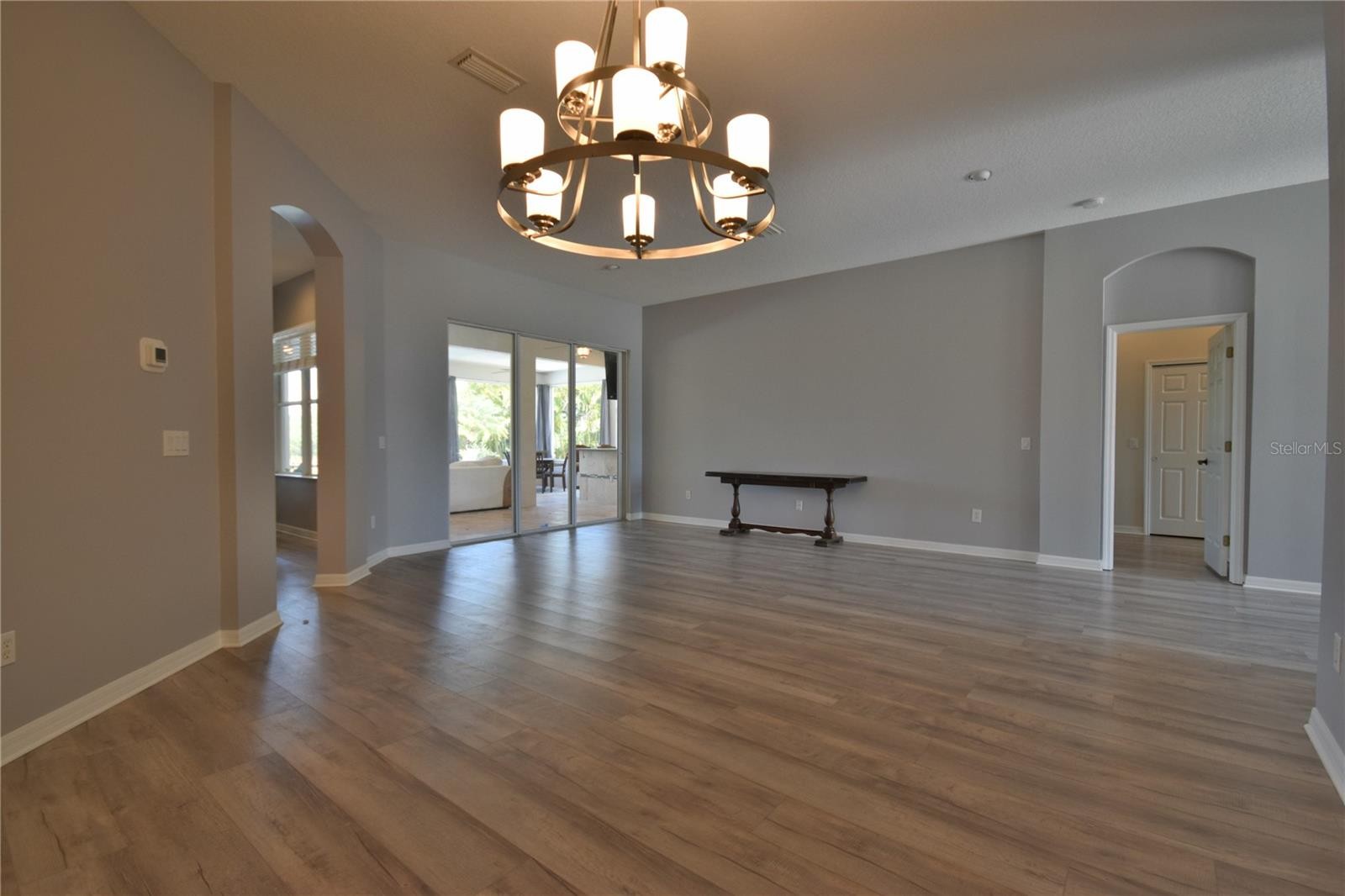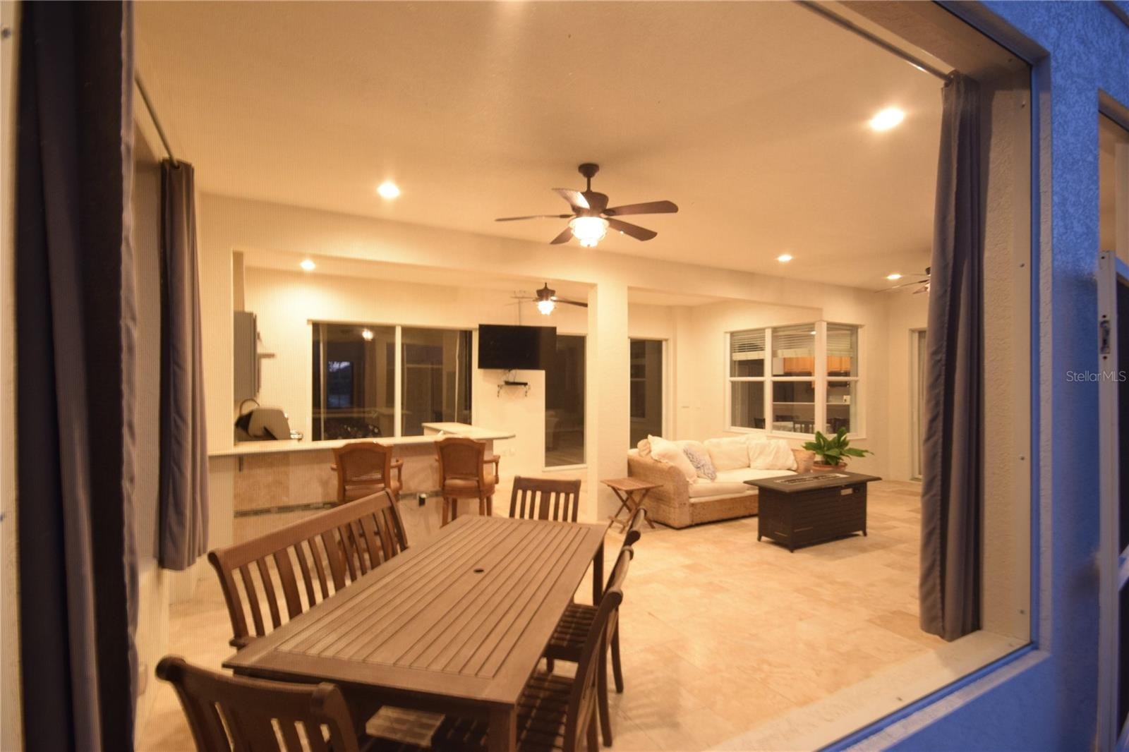 Welcome to 8121 Snowy Egret Place, a luxurious 5-bedroom, 3-bathroom estate set on a private, uniquely shaped 1.18-acre lot in one of Bradenton’s most picturesque and family-oriented communities. Surrounded by lush greenery, open skies, and starry nights, this impeccably maintained property blends spacious indoor living with world-class outdoor amenities—all while embracing Florida’s natural charm. Step inside to find soaring ceilings, freshly painted interiors, and luxury vinyl plank flooring flowing seamlessly throughout. A flexible fifth bedroom with French doors provides the perfect space for a home office, den, or guest suite. At the heart of the home is a generously large kitchen that flows into expansive living and dining spaces before opening to your showstopping 30'x25' covered lanai—an entertainer’s paradise and the perfect way to enjoy Florida’s incredible weather and scenery. This outdoor living area boasts a fully-equipped kitchen including ample bar-top seating with a stainless grill, vented hood, wet bar, refrigerator, and plenty of cabinetry—all laid over travertine stone tile. The lanai also features multiple ceiling fans, recessed lighting, and separate dining and lounging areas, making it ideal for both gatherings and peaceful mornings with coffee or tea. Just beyond, the resort-style pool beckons with a dramatic waterfall feature, a spacious sun deck, and tranquil pond views framed by wide open yard space, tropical landscaping, and mature palms. The extended travertine patio creates a seamless transition from indoor to outdoor living, offering the ultimate backyard Florida experience. The fenced yard space adds privacy and safety—perfect for children, pets, and peace of mind. The spacious master suite is a true retreat, showcasing sweeping views of the pond and backyard oasis through sliding doors. The en-suite bath includes a soaking tub, dual vanities, and a walk-in shower. Additional highlights include an oversized 3-car garage, a new roof (2022), updated AC system (2019), and a UV blue-light pool sanitation system for added efficiency and easier maintenance. The lush 1.18-acre property is lined with elegant areca palms, vibrant viburnum, and stately oak trees, providing natural privacy and enhancing the estate’s serene ambiance. Located in a golf cart-friendly community, residents enjoy access to scenic parks, numerous fishing ponds, tennis and basketball courts, hiking and equestrian trails, and year-round events for families. Perfectly positioned near Waterside Place, Main Street at Lakewood Ranch, and UTC Mall, this home is just a short ride from premier shopping, dining, and entertainment. With an ever-evolving selection of boutiques, restaurants, and cultural experiences in Lakewood Ranch and beyond—as well as convenient access to downtown Sarasota, downtown Bradenton, and the world-renowned beaches of Lido Key, Siesta Key, and Anna Maria Island—you’ll enjoy the ideal balance of quiet luxury and vibrant community living.