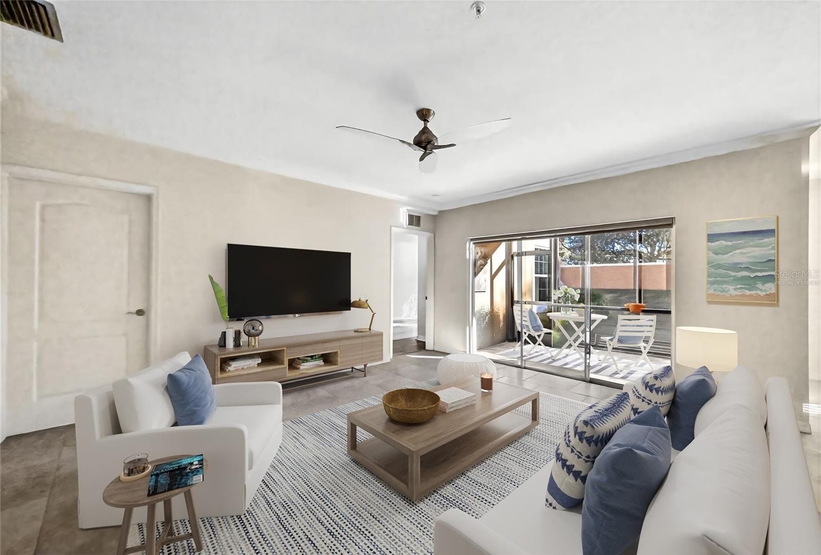 Beautiful GROUND-FLOOR living awaits in this 2-bedroom, 2 bath + DEN condo located in the gated community of Miramar Lagoons, offering one of the most desirable locations in Lakewood Ranch! This light-filled residence features a welcoming open floor plan with a spacious great room that flows effortlessly into a fabulous kitchen showcasing crisp white cabinetry, stainless steel appliances (including a new refrigerator in 2020), rich granite countertops, and ample storage. Just off the kitchen, a generously sized dining area provides the perfect setting for enjoying home-cooked meals with family and friends. The primary suite is a relaxing retreat, complete with a large walk-in closet featuring custom built-ins and an en-suite bath offering dual sinks and a walk-in shower. Guests will appreciate their own private space with a cozy guest bedroom and adjacent full bath. A versatile den/flex room just off the foyer provides endless possibilities and is ideal for a home office, hobby space, or additional accommodations for visitors. Through a wall of sliders off the great room, step onto the serene screened lanai, perfect for dining al fresco or enjoying your morning coffee while taking in the peaceful surroundings. Additional highlights include tray ceilings, crown moldings, plantation shutters, newer luxury vinyl flooring in the bedrooms, updated fixtures, and a freshly painted interior. For added peace of mind, the home features six impact windows and an impact screen on the lanai installed in 2019. Residents of Miramar Lagoons enjoy a lushly landscaped, maintenance-free lifestyle within this beautifully maintained community. Amenities include a community clubhouse with gathering room and full kitchen, fitness center, heated pool and spa, and an outdoor grilling area ideal for socializing. Scenic walking paths lead to a peaceful gazebo, offering the perfect spot to relax and unwind. Ideally situated just minutes from Lakewood Ranch Main Street, San Marco Plaza, Waterside Place, the new Center Point development, and an abundance of upscale shopping, dining, and year-round entertainment. With convenient access to I-75, UTC Mall, top-rated healthcare, A-rated schools, and award-winning Gulf Coast beaches, Miramar Lagoons offers the perfect blend of comfort, convenience, and carefree Florida living!