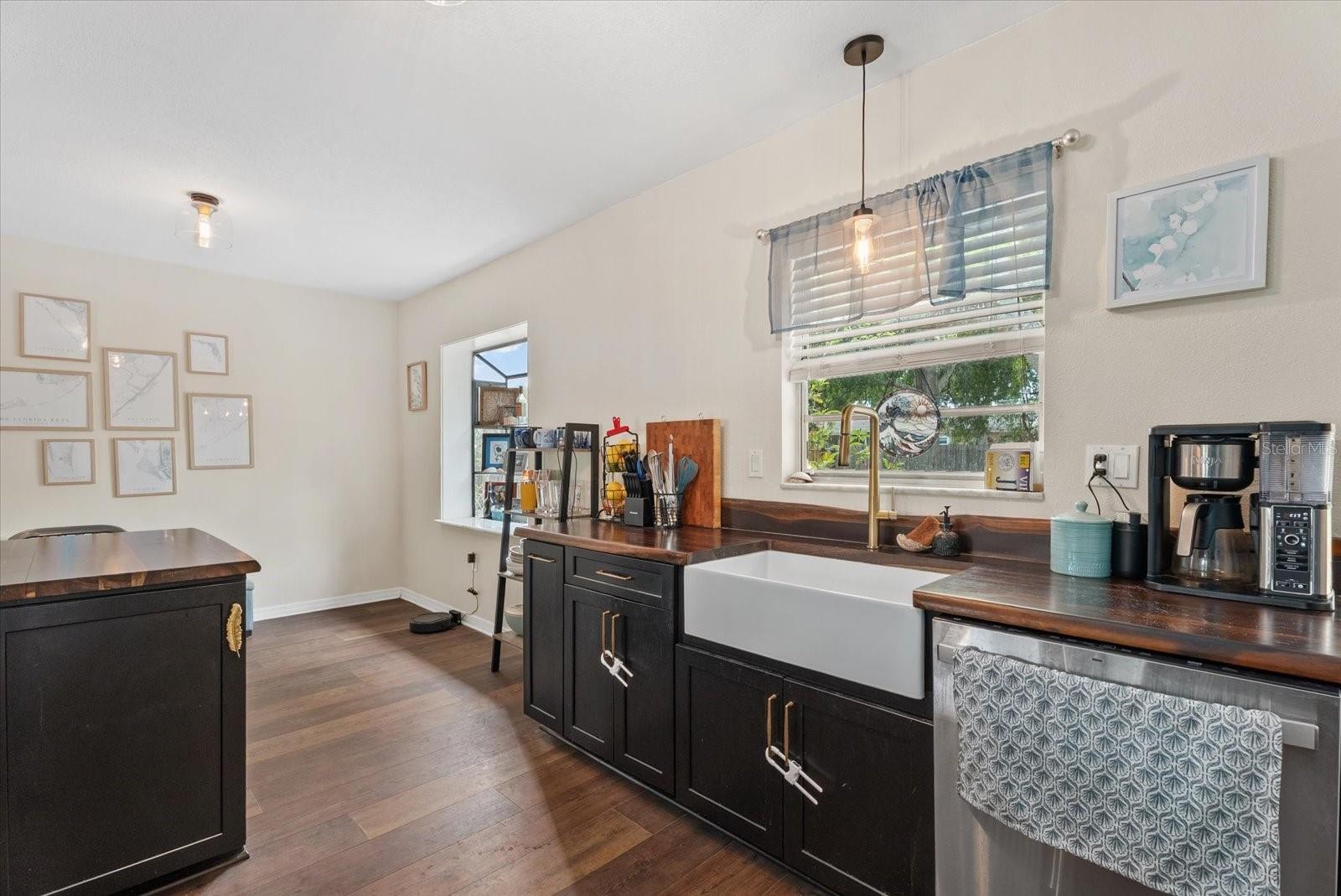 PRICED TO SELL!! Do not miss out on this great Whitfield home. This home has so much to offer, starting with the Whitfield neighborhood, the dead end cul-de-sac street, NO HOA, legal for nightly rental, and proximity to the airport, both downtown Sarasota AND downtown Bradenton, as well as the University Town Center area, all within 20 minutes, or head out to the world famous beaches in less than 30 minutes!!! The home sits on a huge 1/4 acre lot, and the home has been upgraded with a new roof, all new exterior paint, and landscaping. The interior has new large format Luxury vinyl plank flooring throughout the entire home, but the real show stopper is the open concept, custom kitchen, with high quality black cabinets and live edge wood countertops for a most unique and luxurious feel that you will not find in other homes of this price range. Schedule your showing today.