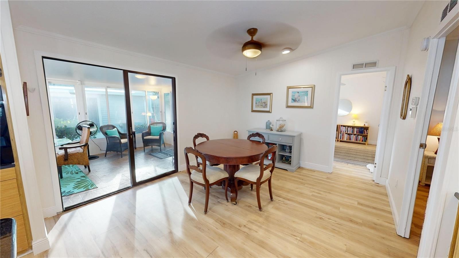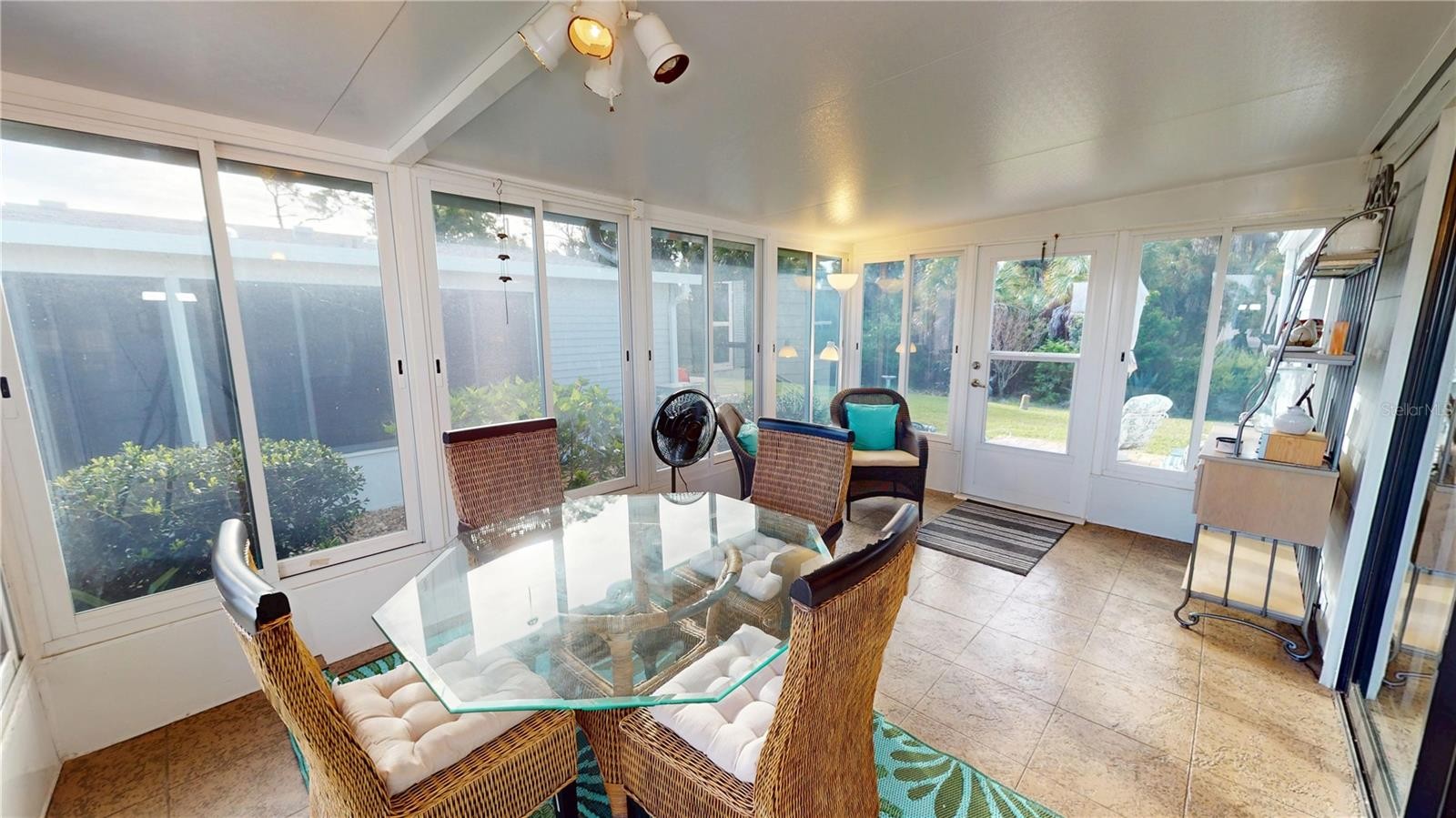 Welcome to the highly desirable Tangerine Woods where you own the lot! Begin with the spacious living room, which is bursting with natural light. From there you flow through the study area into the kitchen and eating area, which overlooks the Florida room. Cooking is a pleasure with granite countertops, a huge island, a large pantry and a window over the sink. The Florida room complete with a split unit for heat and ac overlooks the lush private wooded area in your backyard adding peace, privacy & serenity. Updates include roof (2023), flooring throughout, interior walls, paint and woodwork. This home is being sold turn-key, minus a few personal items and Florida room table and chairs. Additional features include a built in dry bar, a covered screened porch, a full laundry room with a utility sink and extra storage, a paver brick patio, a breezeway with more storage space, a Jack-and-Jill bath, and a carport with space to park bikes, a golf cart, or whatever you like. The golf cart can be included in the sale, but it is currently inoperable. Tangerine Woods is an active welcoming 55+ community filled with as many activities as you'd like to participate in at the affordably low HOA fee of $678 monthly. Enjoy pickleball, tennis, a fitness center, community room, crystal blue pool, spa and a full time activities director and a wonderful social life. Conveniently located to beautiful Manasota & Englewood beaches, shopping, dining and nature trails. 2 pets are welcome. 90 day minimum rentals allowed.Now is the time to get your piece of the good life in sunny beautiful Florida.