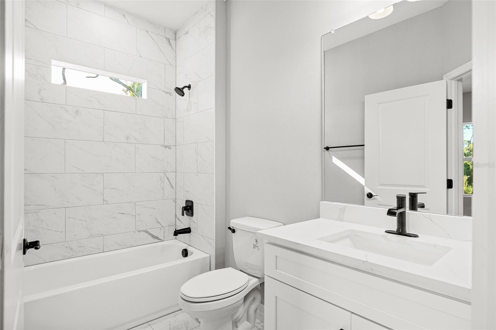 One or more photo(s) has been virtually staged. Welcome to your brand-new North Port home! This thoughtfully designed 4-bedroom, 3-bathroom residence with a 2-car garage offers 1,990 sq. ft. of modern living space, blending comfort, functionality, and style. Inside this light, bright and airy home you will find 9' 4" ceilings, 8' interior doors, and luxury vinyl plank flooring throughout. The open-concept layout showcases a chef-inspired kitchen with quartz countertops, custom tile backsplash, Samsung stainless steel appliances, a walk-in pantry, and a spacious center island with breakfast bar seating. Seamlessly connected to the main living area, sliding glass doors lead to a covered lanai - ideal for indoor-outdoor living. The private primary suite is a serene retreat, highlighted by a tray ceiling, dual walk-in closets, and a spa-like bath with double vanities and a walk-in tiled shower. A smart split-bedroom design includes two well-appointed guest rooms with a shared full bath, one of which can easily serve as a den or home office. The fourth bedroom features its own private en-suite bathroom which is perfect for overnight guests, in-laws, or multigenerational living. Perfectly situated near shopping, dining, schools, parks, and golf courses, this home also offers easy access to Charlotte Harbor, downtown Punta Gorda, and the pristine Gulf Coast beaches. Vacant and easy to show!